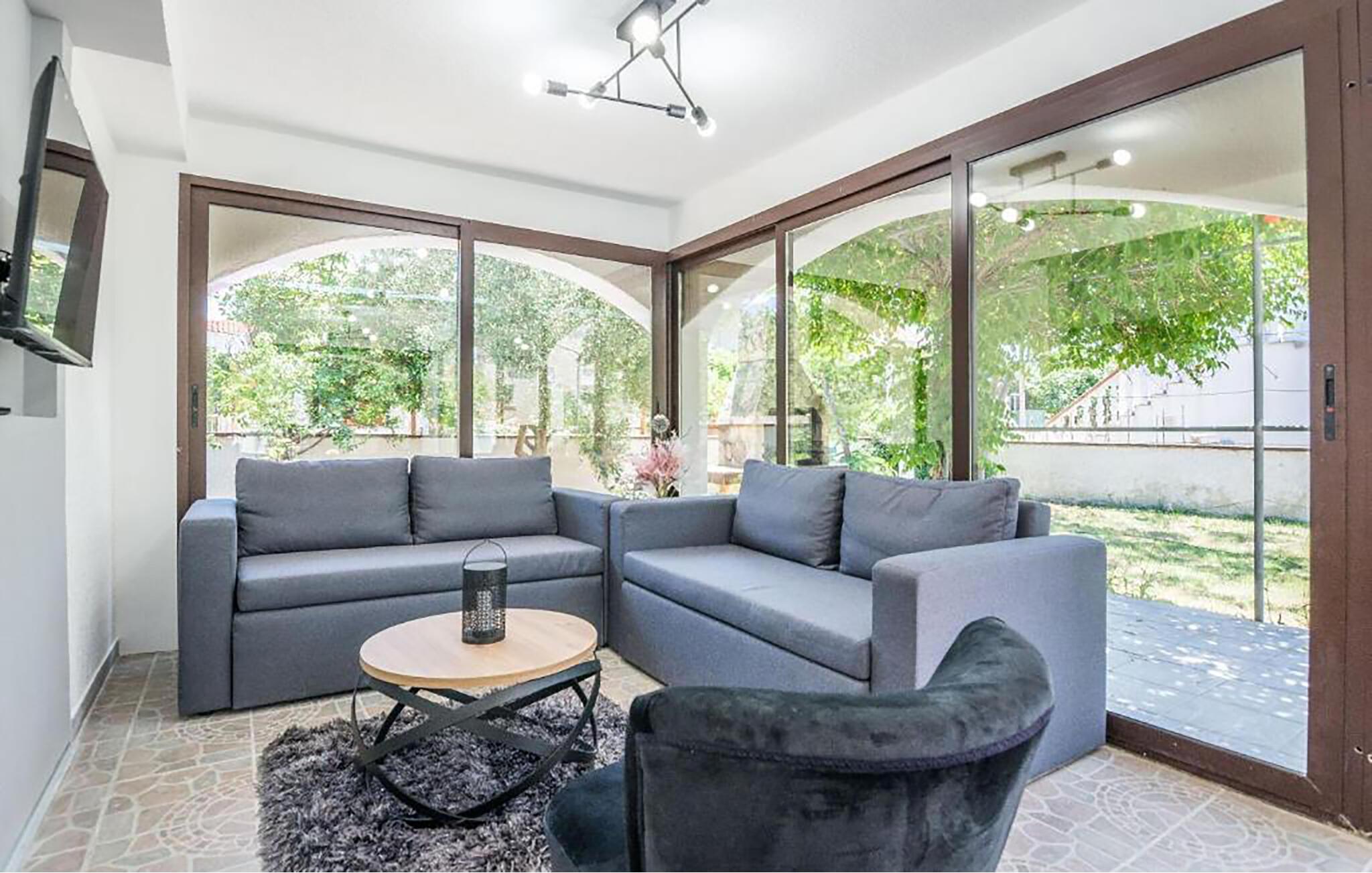 Utenfor er det private bassenget en ren forfriskning og moro på varme sommerdager. Slapp av på de komfortable solsengene og slapp av i skyggen av parasollene. Gled deg til stemningsfulle grillkvelder med kroatisk vin i det rustikke grillområdet.