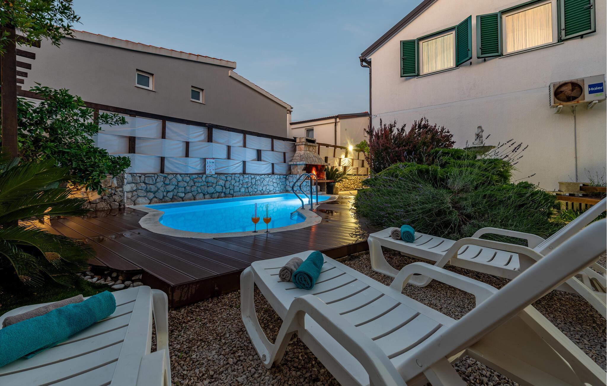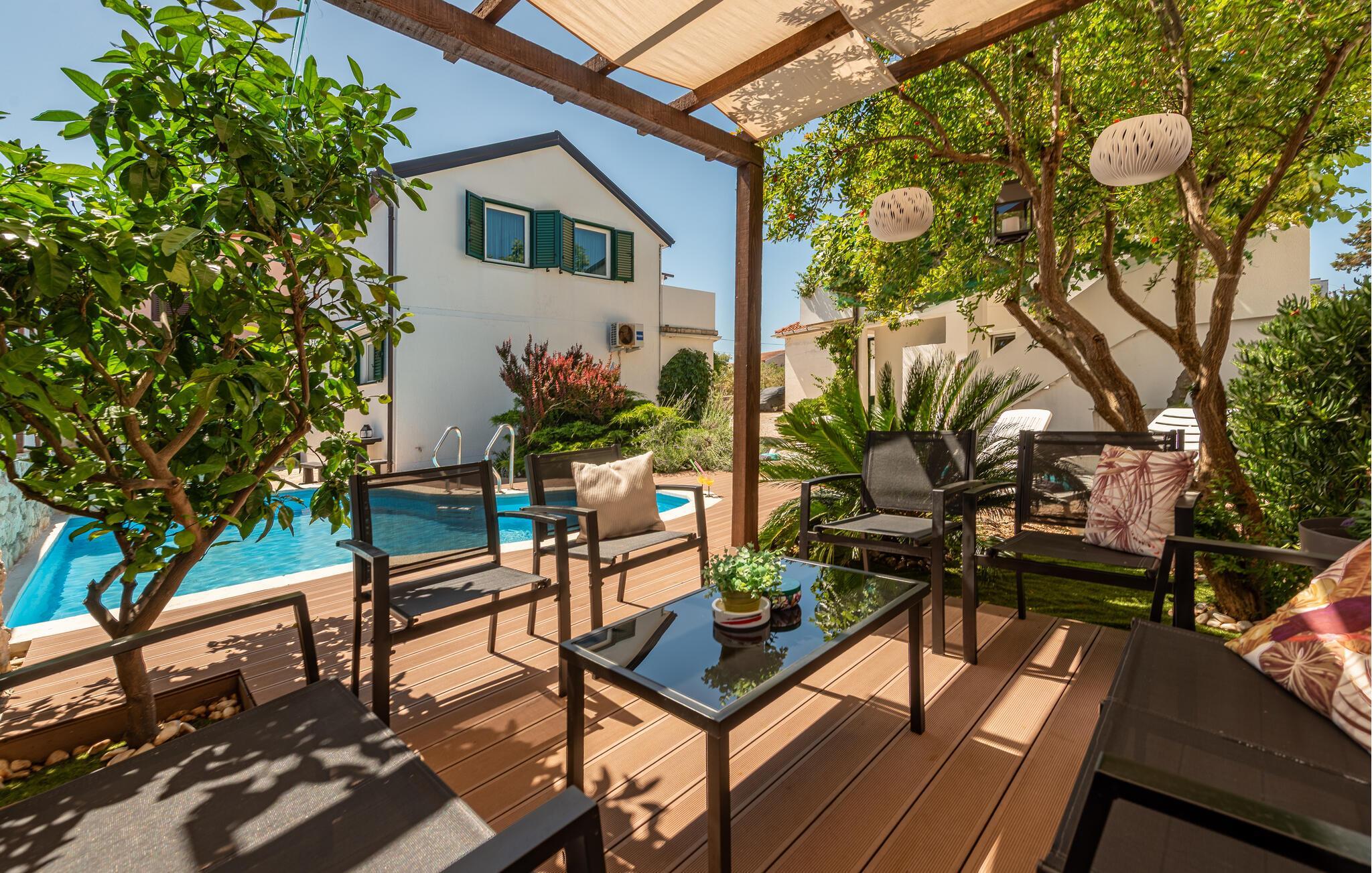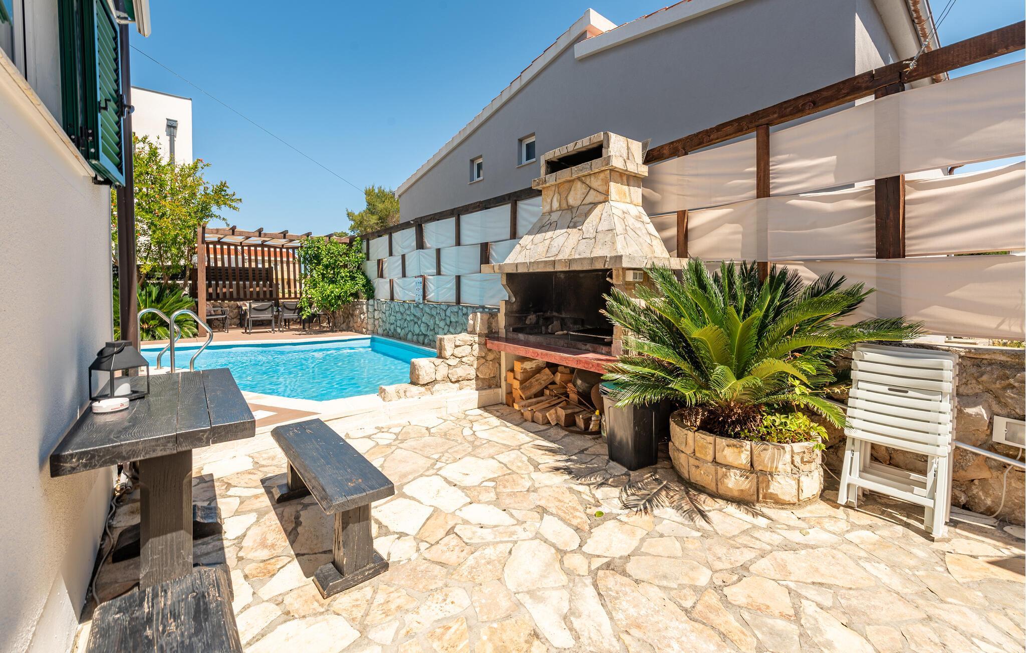 Dette komfortable feriehuset med utendørsbasseng ligger på den solfylte øya Vir. Den består av to separate leiligheter forbundet med utendørs trapper. Bak huset, ved siden av bassenget for en skikkelig forfriskning om sommeren, er det også solsenger for ytterligere avslapning, samt en grill hvor du kan tilberede deilige måltider. På den delte eiendommen bor eieren i et hus ca 5 m unna. Besøk byen Zadar, som tilbyr mange historiske severdigheter langs promenaden, for eksempel Salute to the Sun og Sea Organs. Det er verdt å besøke den romantiske lille byen Nin, kjent for sin gamleby og den helbredende gjørmen på Queen's Beach. Selve øya tilbyr mange konserter og underholdningsarrangementer i sommermånedene, mens duften av deilig middelhavsmat vil lokke deg til mange restauranter.