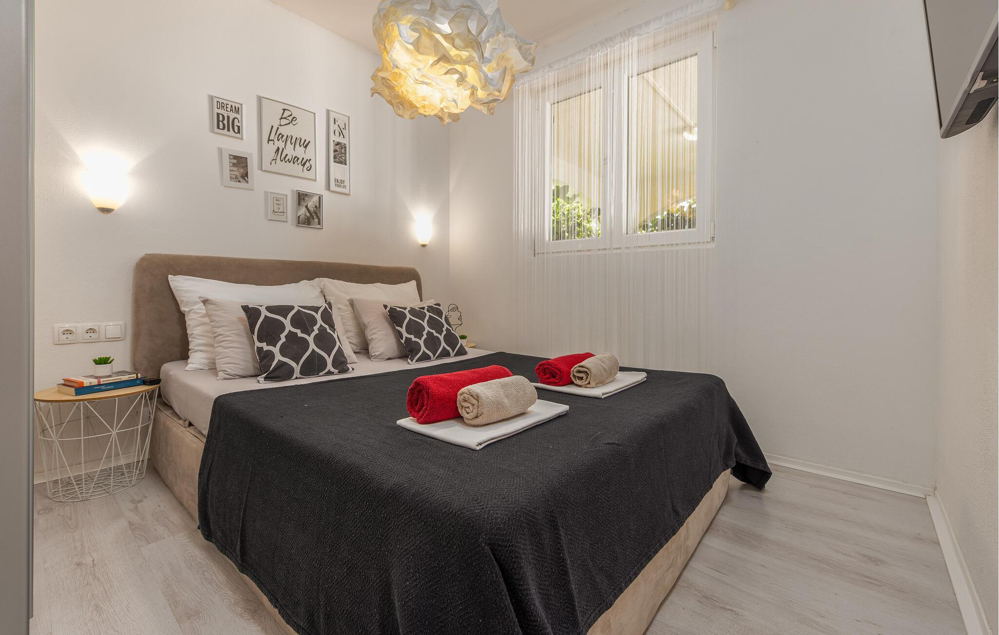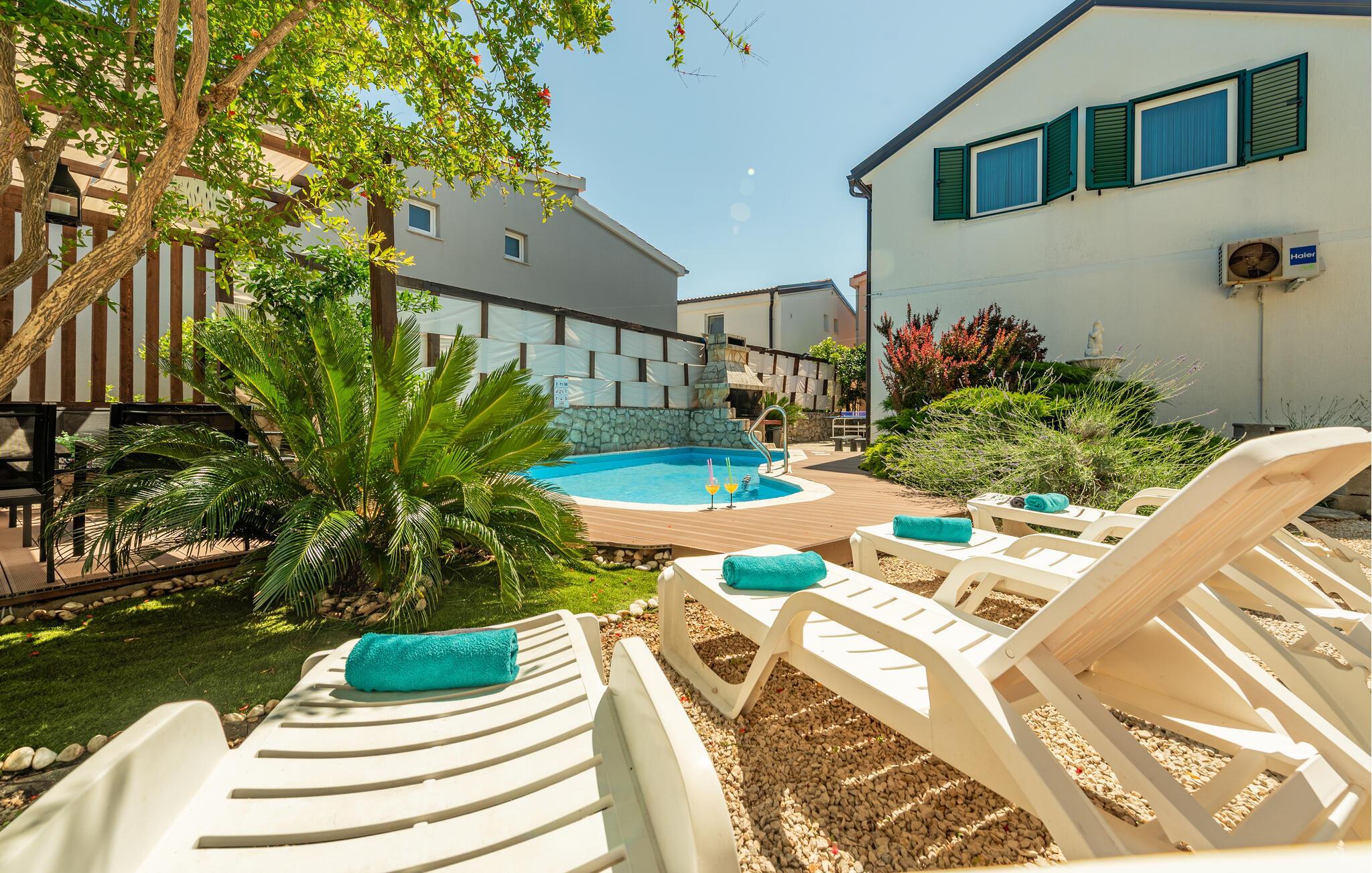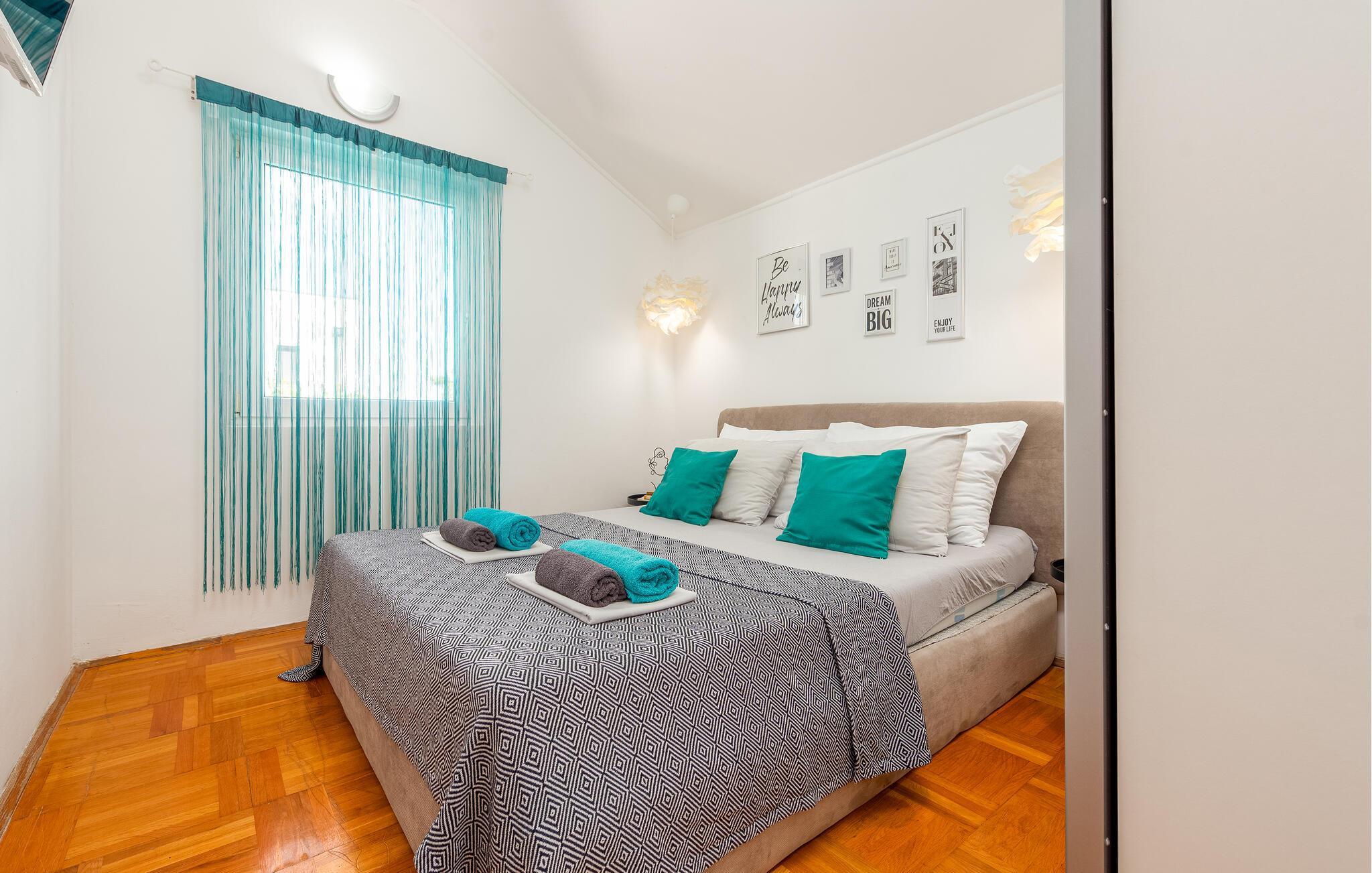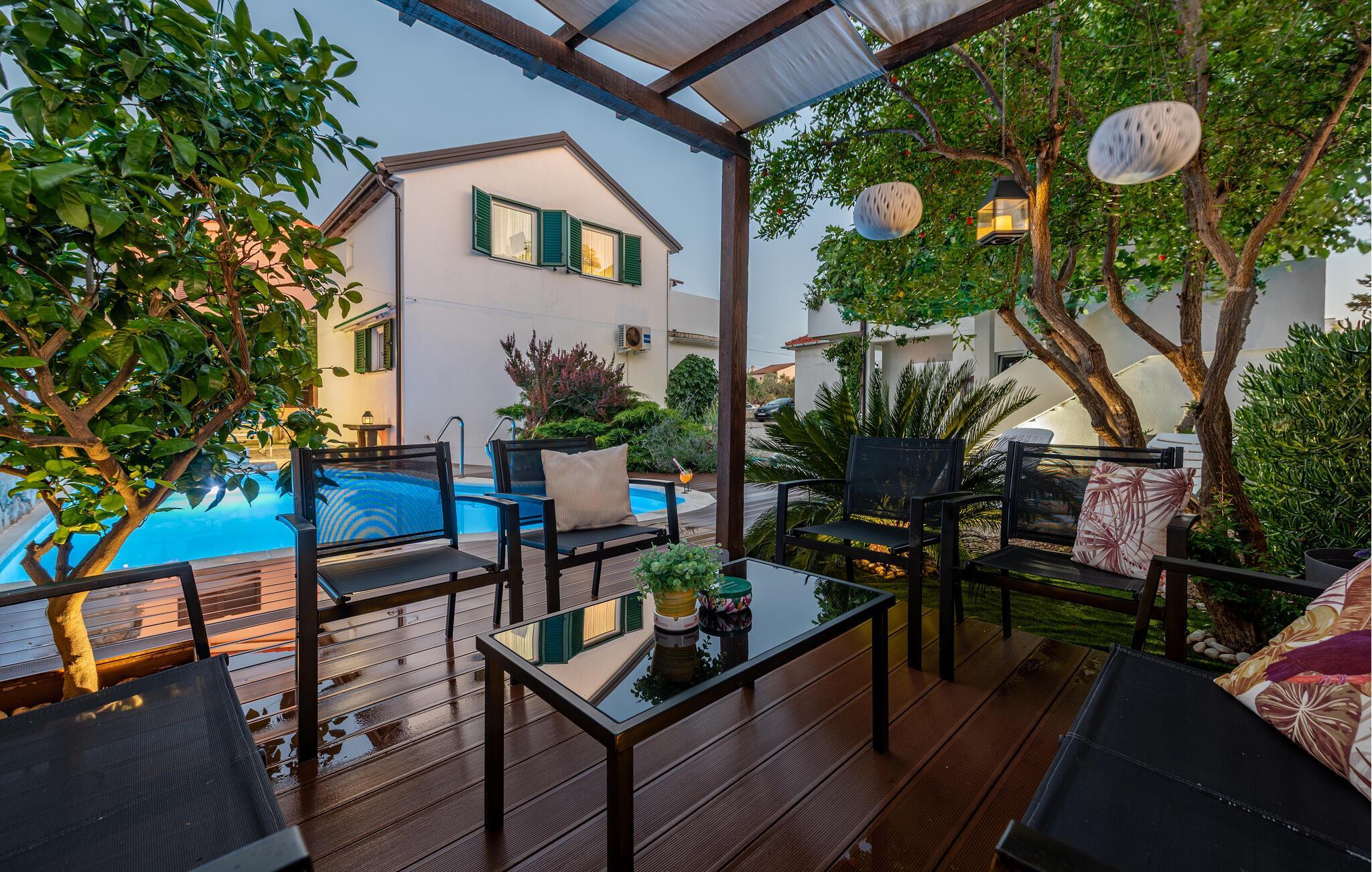 Dette komfortable feriehuset med utendørsbasseng ligger på den solfylte øya Vir. Den består av to separate leiligheter forbundet med utendørs trapper. Bak huset, ved siden av bassenget for en skikkelig forfriskning om sommeren, er det også solsenger for ytterligere avslapning, samt en grill hvor du kan tilberede deilige måltider. På den delte eiendommen bor eieren i et hus ca 5 m unna. Besøk byen Zadar, som tilbyr mange historiske severdigheter langs promenaden, for eksempel Salute to the Sun og Sea Organs. Det er verdt å besøke den romantiske lille byen Nin, kjent for sin gamleby og den helbredende gjørmen på Queen's Beach. Selve øya tilbyr mange konserter og underholdningsarrangementer i sommermånedene, mens duften av deilig middelhavsmat vil lokke deg til mange restauranter.