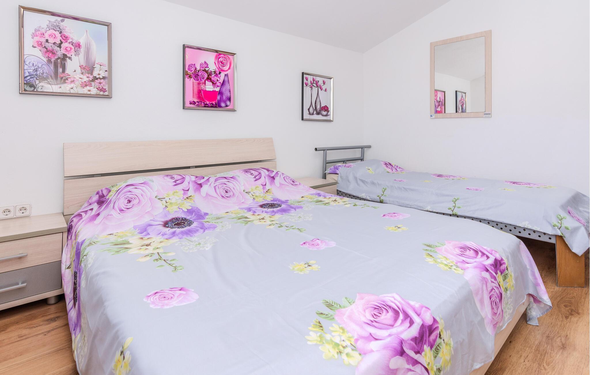 Stranden ligger bare noen få skritt unna, så du kan bade og sole deg i den varme sanden. I den livlige badebyen Vir kan du besøke sognekirken St. Juraj, restene av Kastelina-festningen og fyret på sørvestkysten, mens Zadar og Nin også er flotte utfluktsmål herfra.