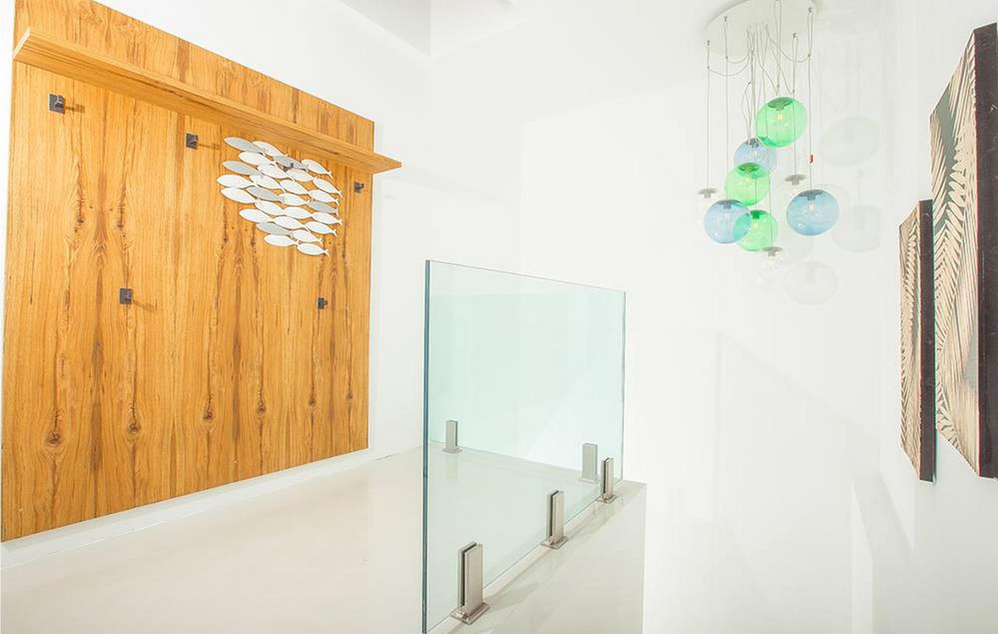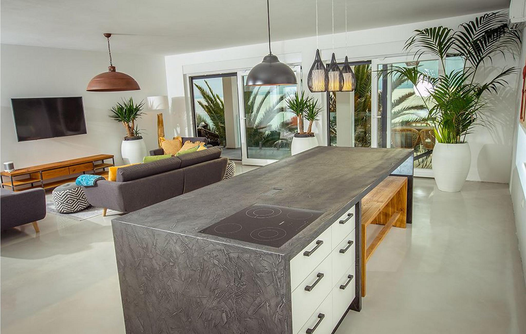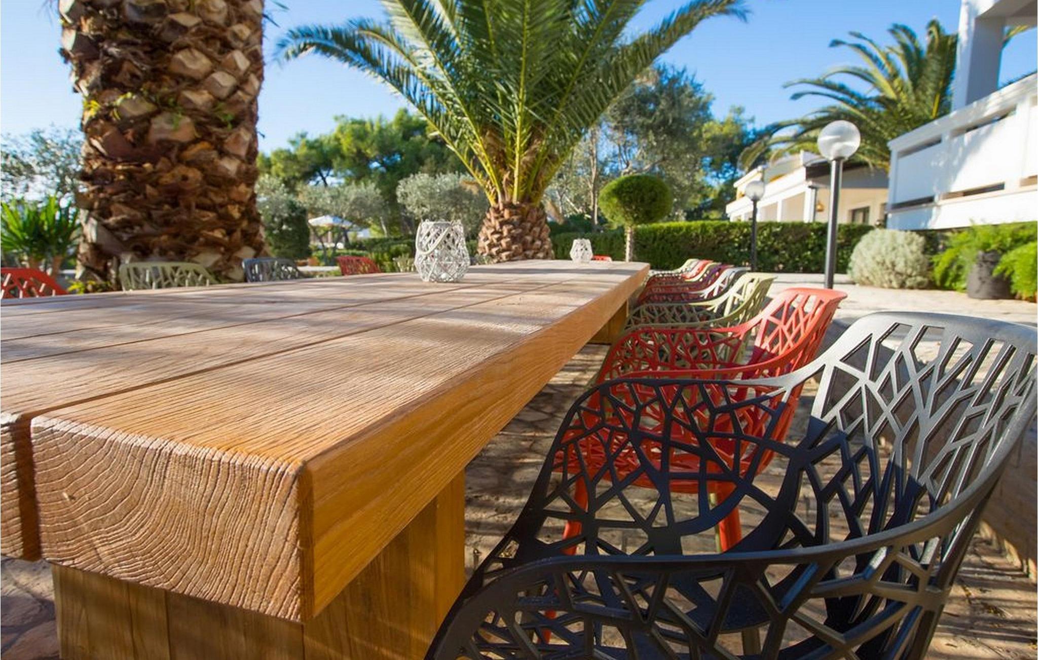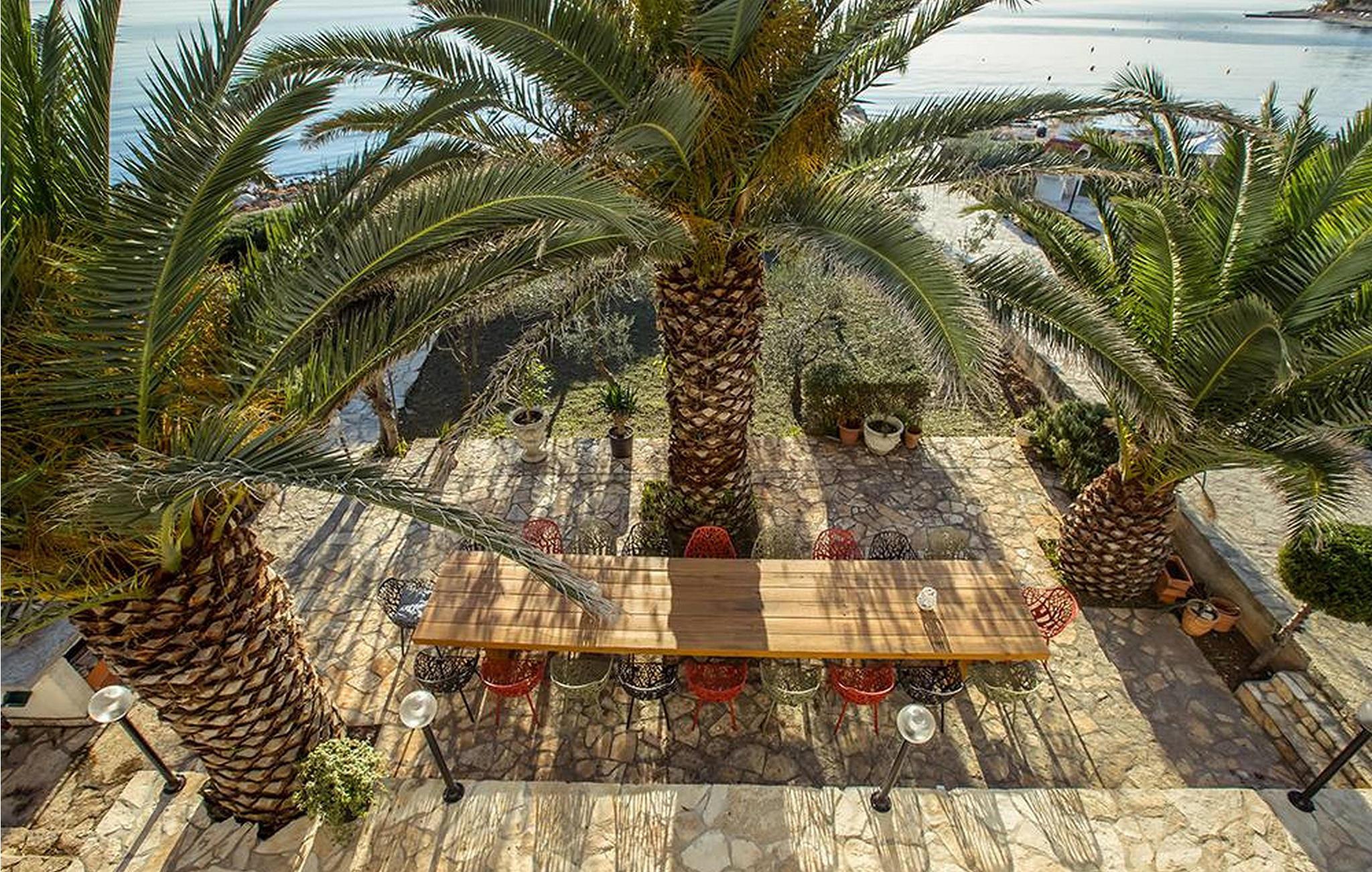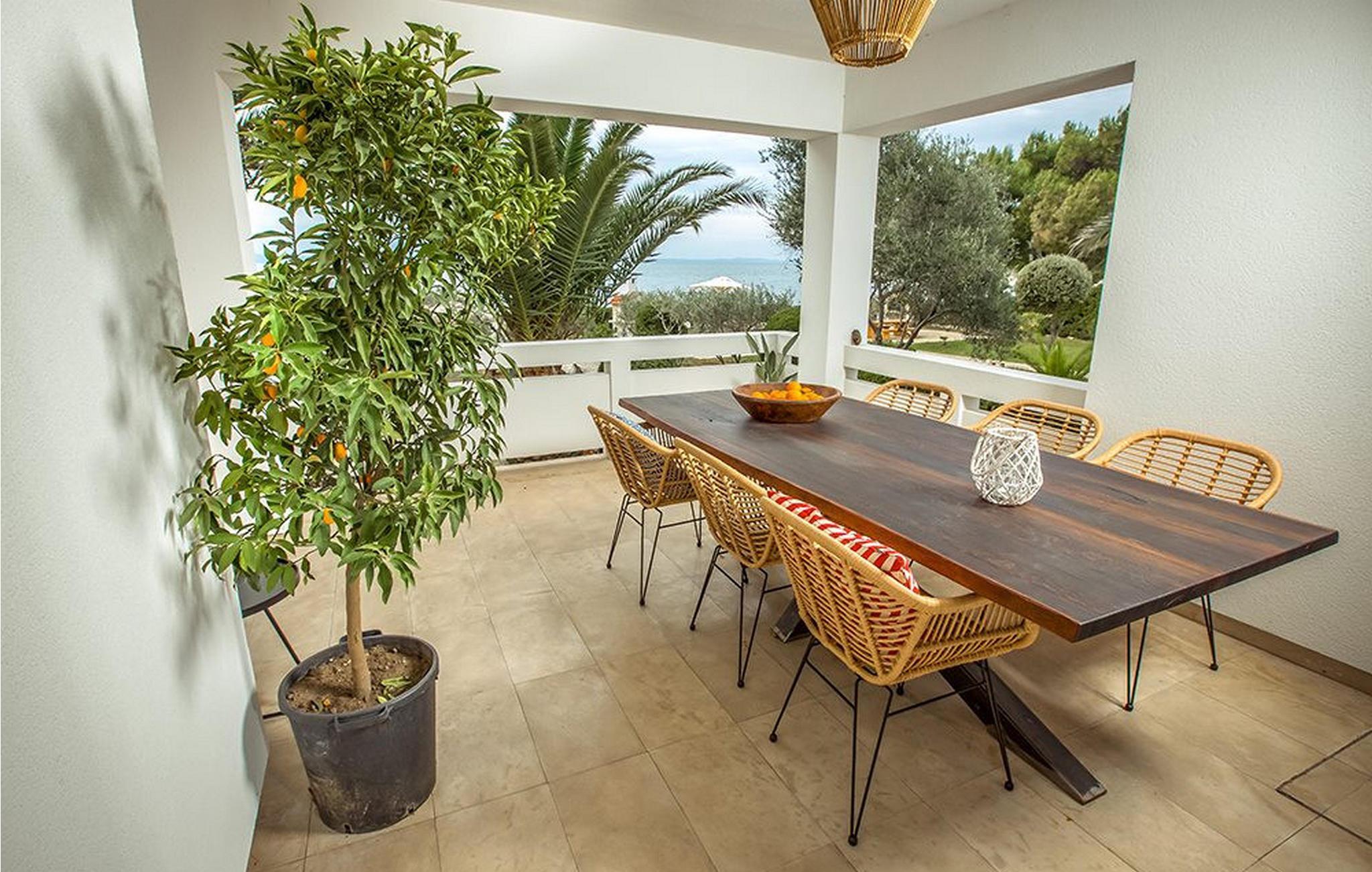 Den romslige terrassen med palmer, solsenger og langbord innbyr til sosialt samvær om kveldene, mens du kan fyre opp grillen i hagen. Den private stranden, som delvis er anlagt av eierne, ligger bare noen få skritt unna.