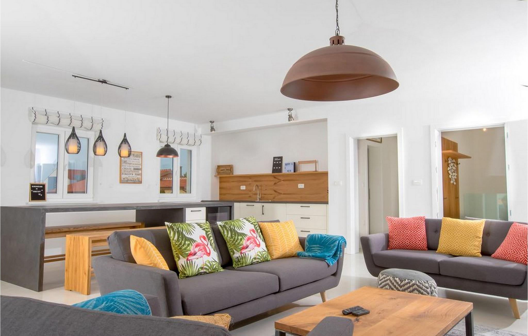 Villa Sunset Loft ligger rett ved havet på den vakre øya Vir, og er det ideelle tilfluktsstedet for deg som elsker duften av havet. Den moderne villaen består av to separate leiligheter, hver med stilfull stue og spisestue, velutstyrt kjøkken og komfortable soverom. Håndlagde møbler gir rommene et eksklusivt preg og lover deg avslapning i en stilfull atmosfære.