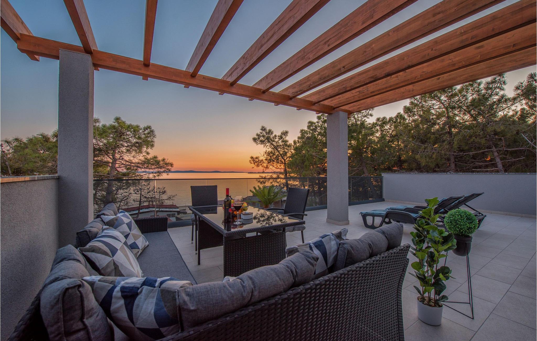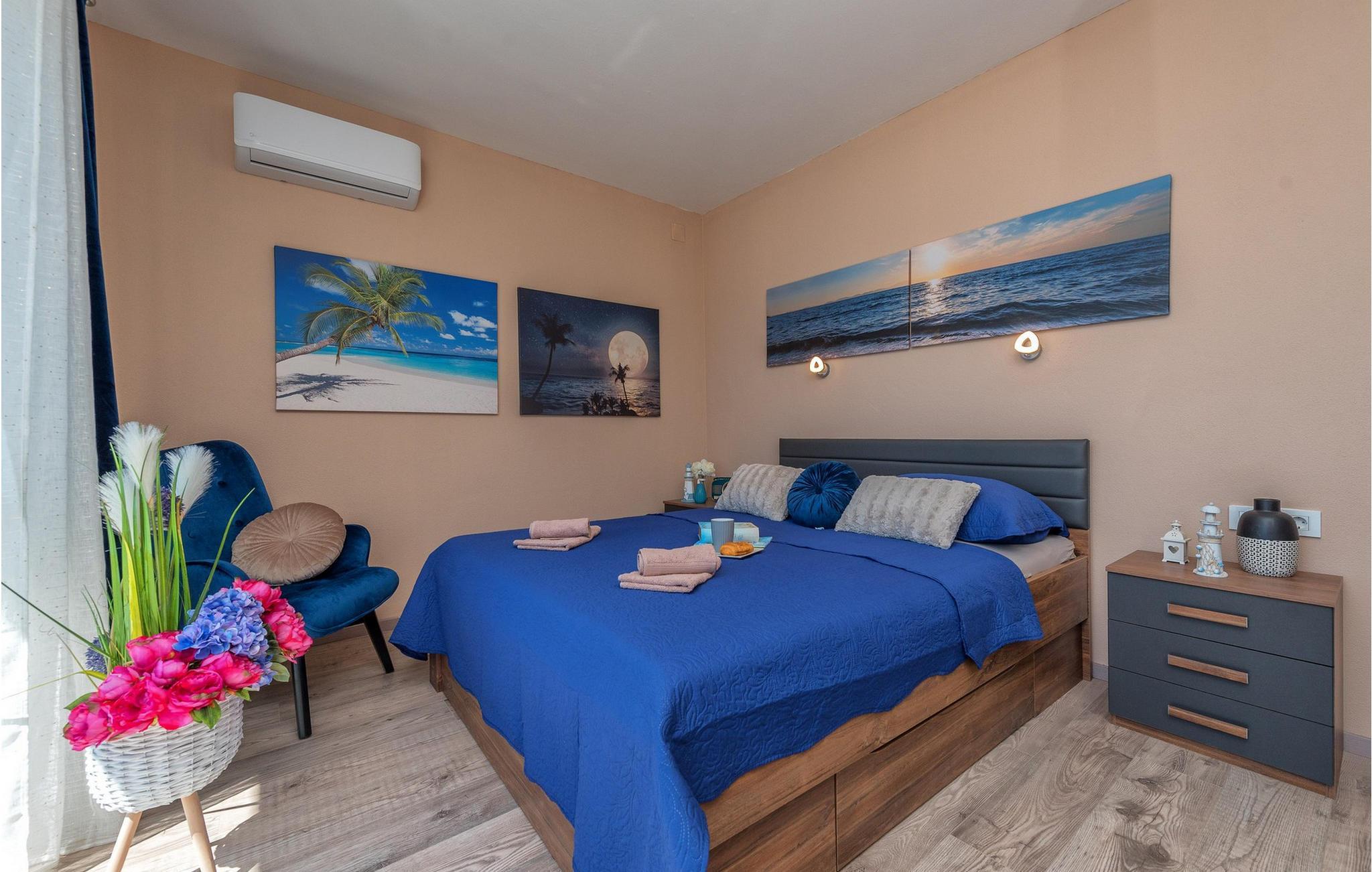 Opplev en uforglemmelig ferie i Villa Karlo på den fortryllende øya Vir. Med forbindelse til det dalmatiske fastlandet kan du nyte både den typiske øyatmosfæren og friheten til å enkelt nå de vakreste stedene i regionen. Kysten av Vir er en fascinerende blanding av milde rullesteinsstrender, røde klippeformasjoner og idylliske bukter. Rundt Villa Karlo fører sykkel- og turstier gjennom duftende furulunder og det nærliggende kuperte landskapet. Vannsportentusiaster vil også få valuta for pengene: kajakk- og båtturer langs kysten eller øyhopping i Zadars skjærgård gir direkte kontakt med havet. Du kan også besøke den venetianske festningen Katelina, den pittoreske Nin med saltsjøen eller den livlige gamlebyen i Zadar.