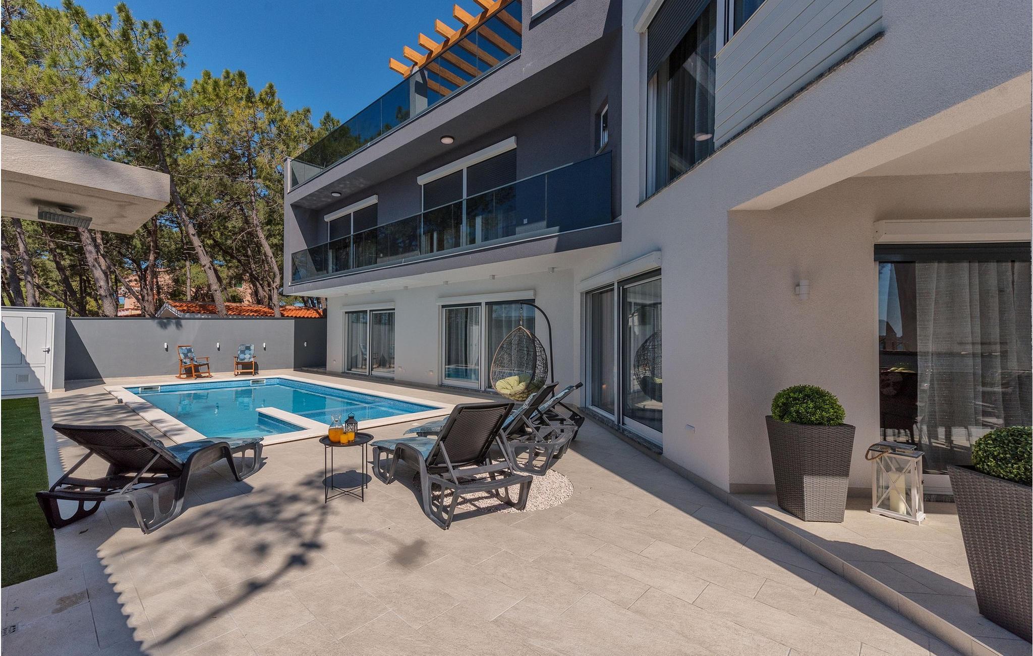 I Villa Karlos uteområde smelter avslapping og middelhavsstil sammen til en unik ferieopplevelse. Ta en dukkert i det elegante bassenget, nyt solen på de komfortable solsengene eller nyt en forfriskende drink i skyggen av det moderne loungeområdet. Nyt uforglemmelige solnedganger mens dere spiser middag sammen på den romslige terrassen med utsikt over havet. Den lille lekeplassen i hagen gir de yngste gjestene gode stunder, mens de voksne kan nyte freden og privatlivet på dette stilfulle stedet.
