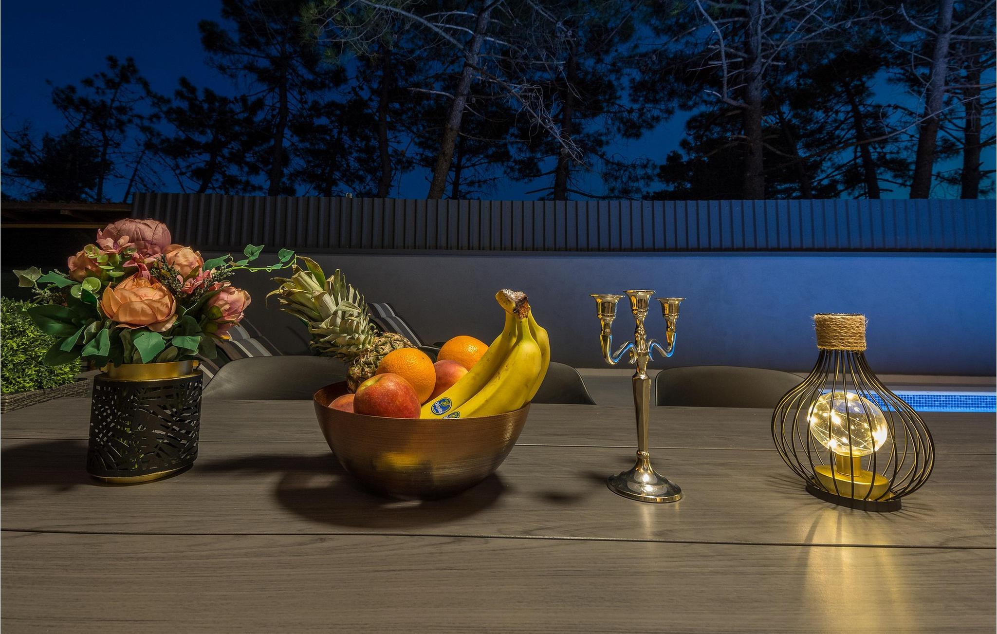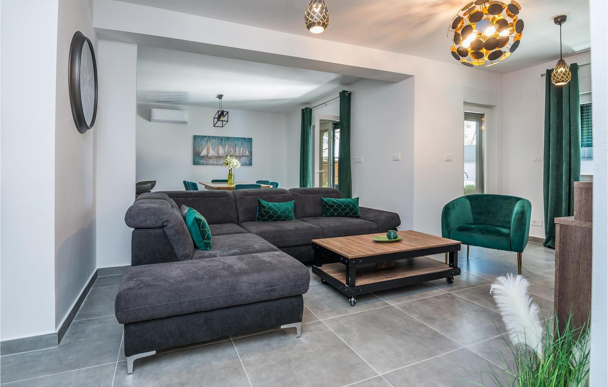 Den luksuriøse Villa Filip ligger bare noen få skritt fra stranden og er den ideelle ferieoasen for alle som ønsker å komme seg bort fra alt og lade batteriene i en middelhavsatmosfære. Det romslige, stilfullt innredede interiøret gir god plass til å nyte den hyggelige atmosfæren sammen med en større familie eller vennegjeng. Se frem til harmoniske måltider i hyggelig selskap, og bruk tiden sammen til stimulerende samtaler over et glass vin i den høykvalitetsmøblerte stuen.