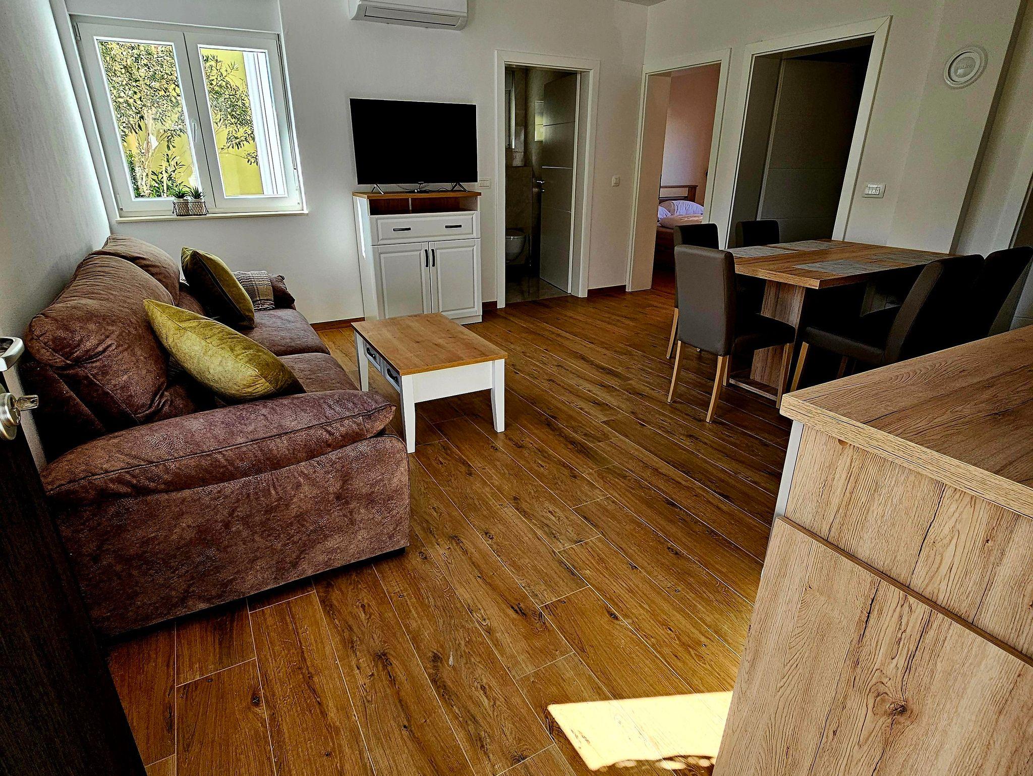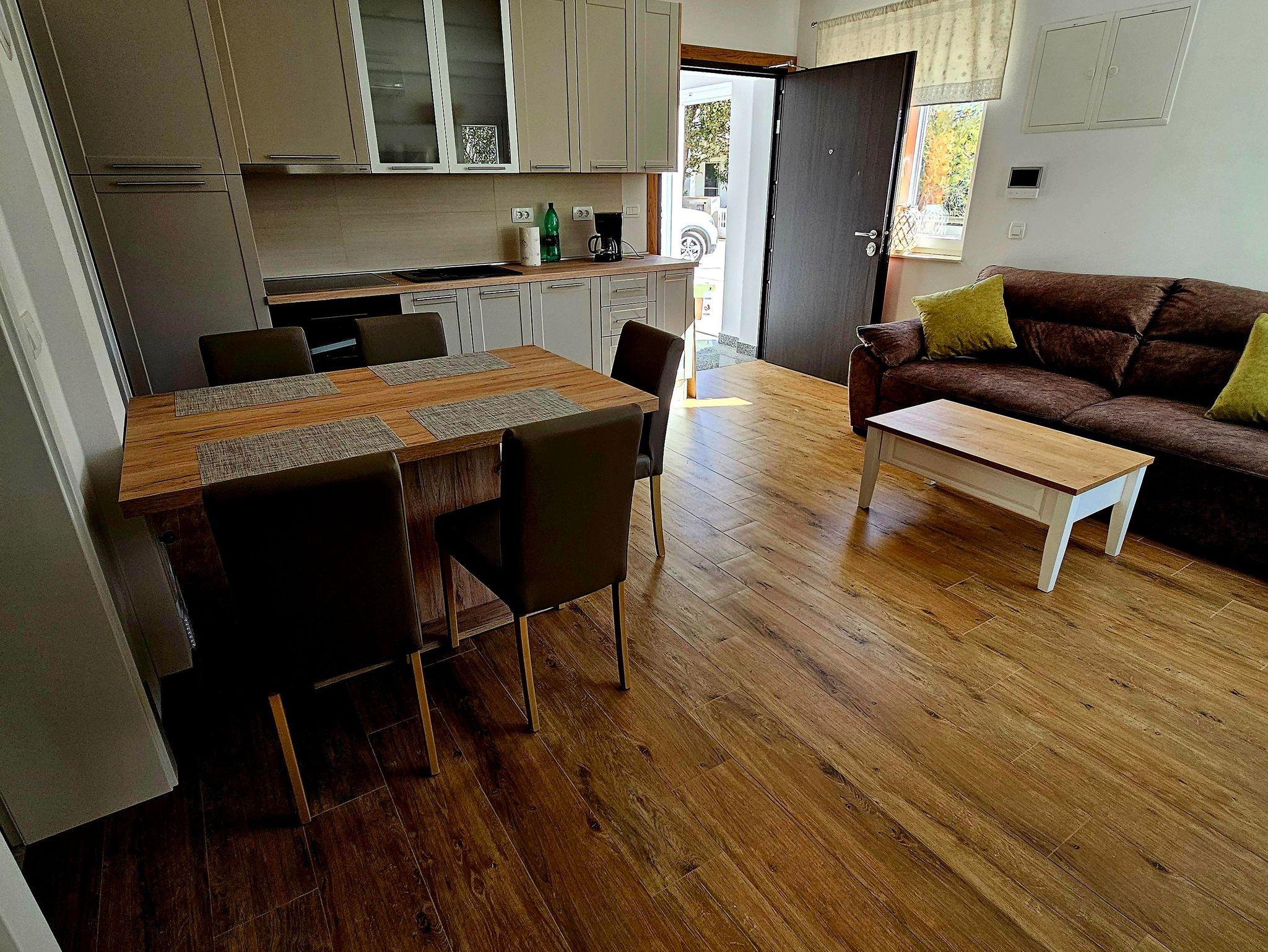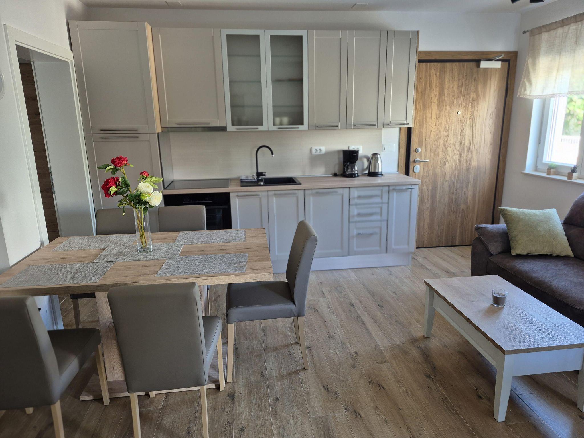 Das Apartment Željko ist ein modernes 3-Zimmer-Apartment im Erdgeschoss und bietet einen barrierefreien Zugang. Sie eignet sich besonders für Gäste, die Wert auf Komfort ohne Einschränkungen legen. Auch diese Wohnung verfügt über eine hochwertige Einbauküche mit kompletter Ausstattung, darunter Geschirrspüler, Kühlschrank mit Gefrierfach, Herd, Backofen, Kaffeemaschine, Wasserkocher und Toaster. Zwei Schlafzimmer mit je einem großen Doppelbett, Kleiderschränken und bereitgestellter Bettwäsche bieten Platz für bis zu 4 Personen.