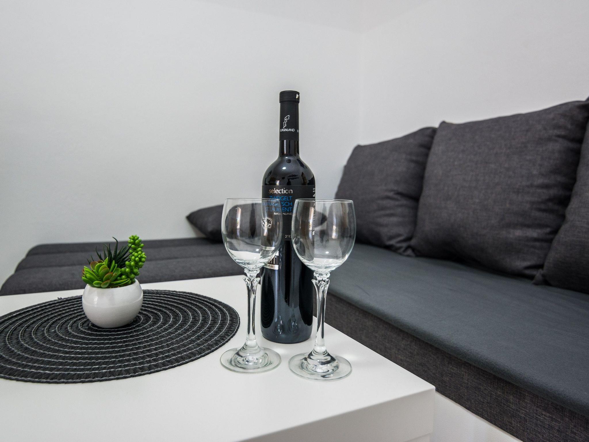 Ferienwohnung bietet Platz für 4 Gäste. Die Betten sind in Schlafzimmern, die es 1 gibt, und in Wohnzimmer, innerhalb einer Gesamtfläche von 30m2, angeordnet. Die Gäste haben eine eigene Terrasse zur Verfügung, auf der sie in warmen Sommernächten genießen können. Es ist erlaubt, Speisen auf dem Gemeinschafts-Grill vorzubereiten. IM PREIS INBEGRIFFEN: Kurtaxe, Endreinigung, Klimatisierung, Parkplatz, Internet, Kinderbett, Föhn. VERBINDLICHE ZUSÄTZLICHE KOSTEN: Aufzahlung für Kurzaufenthalte (prozentualer Zuschlag pro Nächtigungsanzahl: 30% - 1, 20% - 2, 10% - 3). Die Verfügbarkeit zusätzlicher Dienstleistungen in Ihrem reservierten Termin und die Preise derselben (falls nicht aufgeführt) müssen im Voraus überprüft werden. Zusätzliche Dienstleistungen die in der Zahlungsaufforderung nicht aufgeführt sind werden direkt beim Vermieter bezahlt, angenommen der Gast nutzt auch diese.