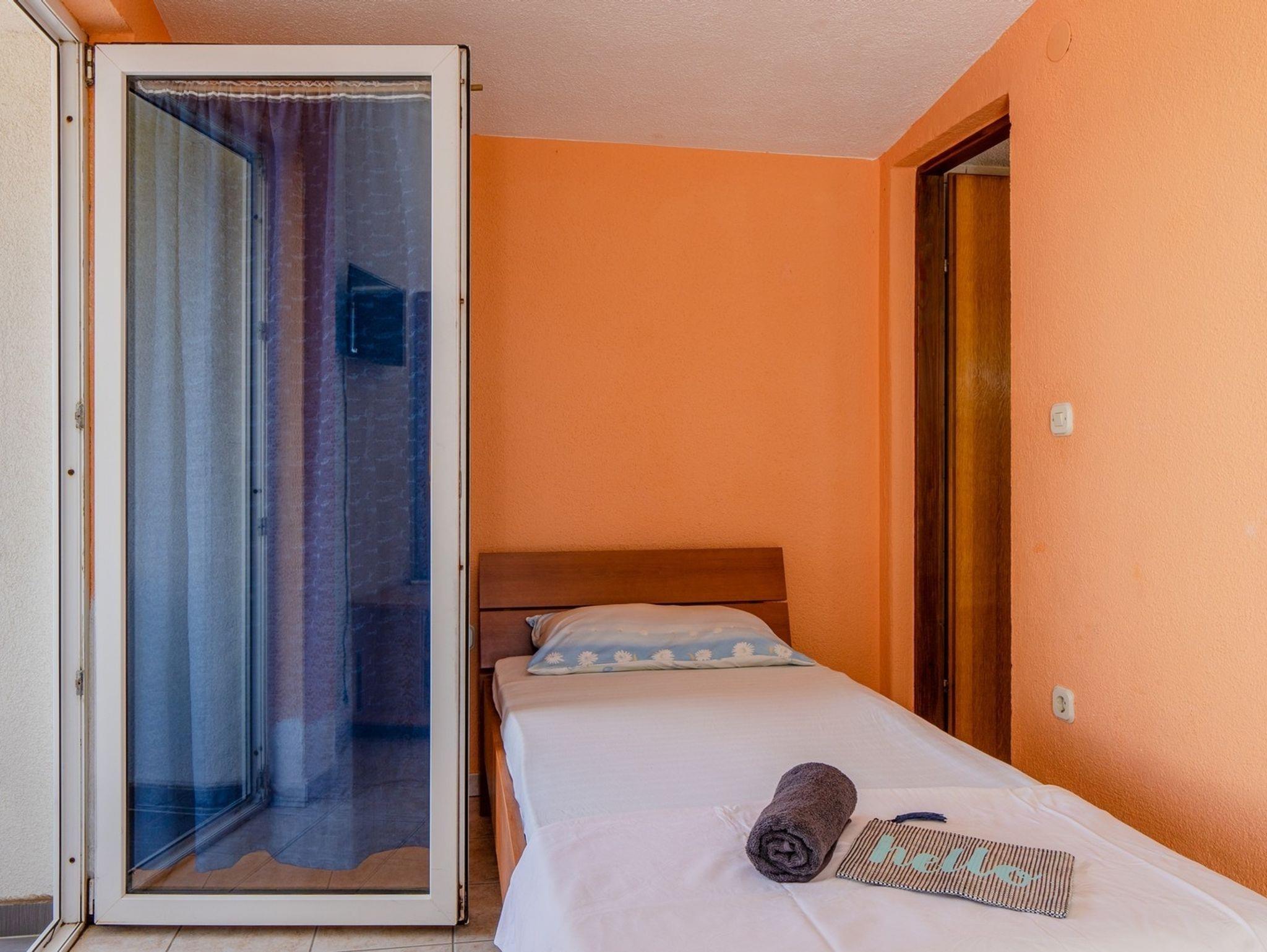 Studio bietet Platz für 2 Gäste. Die Betten sind in Wohnzimmer, innerhalb einer Gesamtfläche von 15m2, angeordnet. Die Gäste haben eine eigene Terrasse zur Verfügung, auf der sie in warmen Sommernächten genießen können. Das Studio-Apartment bietet Meerblick. Es ist erlaubt, Speisen auf dem Gemeinschafts-Grill vorzubereiten. IM PREIS INBEGRIFFEN: Kurtaxe, Endreinigung, Klimatisierung, Parkplatz, Internet, Föhn. Die Verfügbarkeit zusätzlicher Dienstleistungen in Ihrem reservierten Termin und die Preise derselben (falls nicht aufgeführt) müssen im Voraus überprüft werden. Zusätzliche Dienstleistungen die in der Zahlungsaufforderung nicht aufgeführt sind werden direkt beim Vermieter bezahlt, angenommen der Gast nutzt auch diese.
