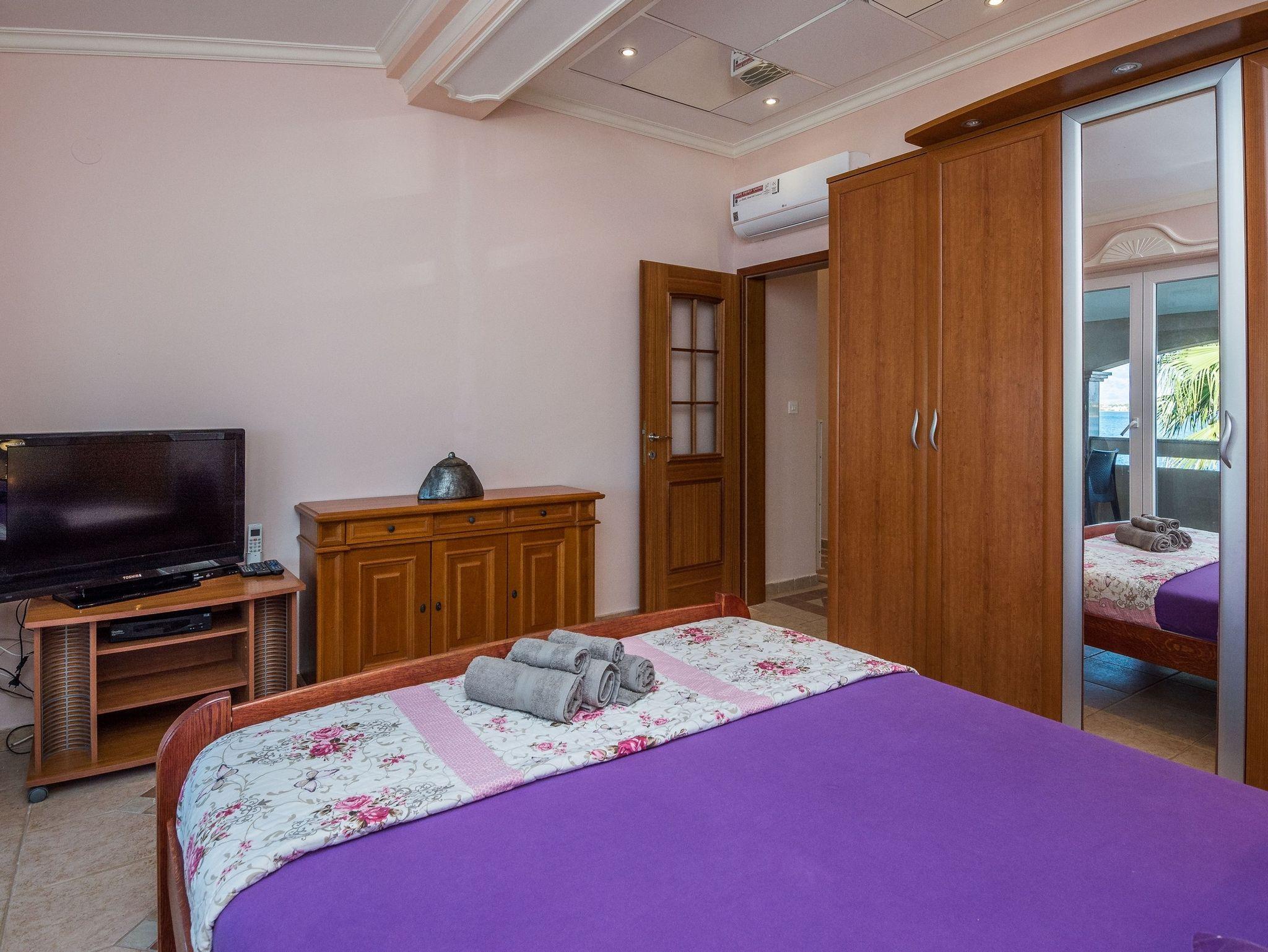 Ferienwohnung bietet Platz für 4 Gäste. Die Betten sind in Schlafzimmern, die es 1 gibt, und in Wohnzimmer, innerhalb einer Gesamtfläche von 37m2, angeordnet. Die Gäste haben eine eigene Terrasse zur Verfügung, auf der sie in warmen Sommernächten genießen können. Das Apartment bietet Meerblick. Es ist erlaubt, Speisen auf dem Gemeinschafts-Grill vorzubereiten. IM PREIS INBEGRIFFEN: Kurtaxe, Endreinigung, Klimatisierung, Parkplatz, Internet, Bügeleisen, Föhn. VERBINDLICHE ZUSÄTZLICHE KOSTEN: Aufzahlung für Kurzaufenthalte (prozentualer Zuschlag pro Nächtigungsanzahl: 30% - 1, 20% - 2, 10% - 3). Die Verfügbarkeit zusätzlicher Dienstleistungen in Ihrem reservierten Termin und die Preise derselben (falls nicht aufgeführt) müssen im Voraus überprüft werden. Zusätzliche Dienstleistungen die in der Zahlungsaufforderung nicht aufgeführt sind werden direkt beim Vermieter bezahlt, angenommen der Gast nutzt auch diese.
