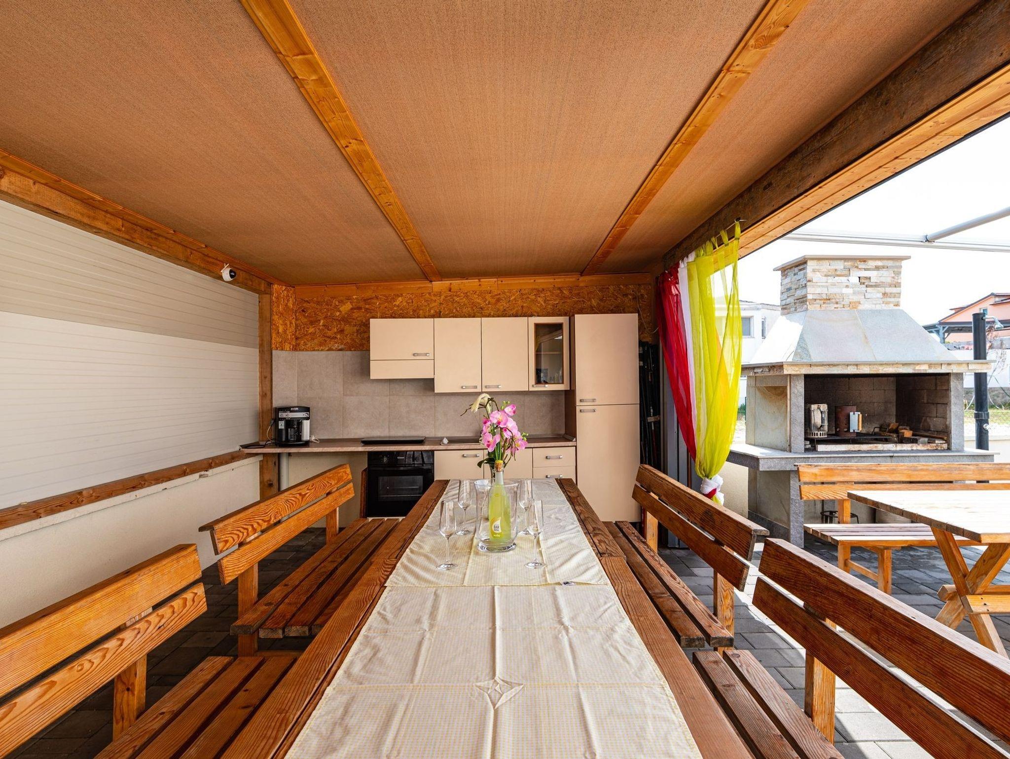Umgebung des Objekts (Eingerichtet), Hof (100m2, Kinderbereich, Sitzbereich), Parkplatz (Anzahl der Parkplätze: 12, Entfernung vom Objekt: im Hof), Pool: gemeinsam, Dimensionen: 9m x 5m x 1.6m, Wassertyp: Salzwasser, Grill: gemeinsam, WiFi Internet, Kinderbett