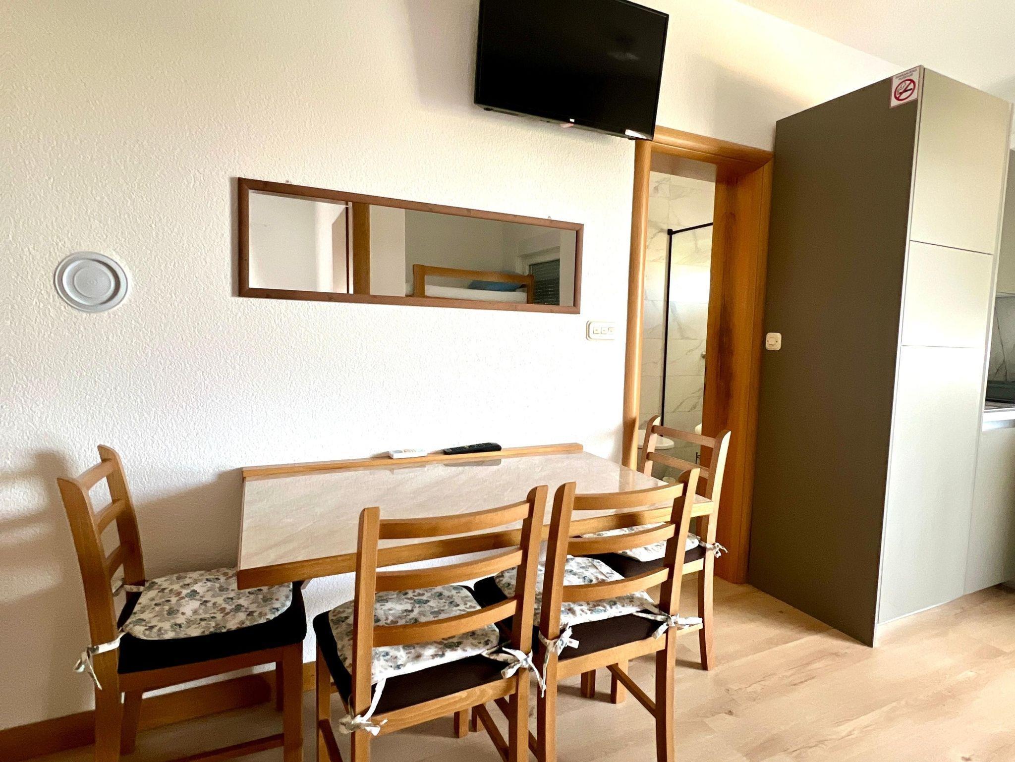 Ferienwohnung bietet Platz für 4 Gäste. Die Betten sind in Schlafzimmern, die es 1 gibt, und in Wohnzimmer, innerhalb einer Gesamtfläche von 50m2, angeordnet. Die Gäste haben eine eigene Terrasse zur Verfügung, auf der sie in warmen Sommernächten genießen können. Das Apartment bietet Meerblick. Es ist erlaubt, Speisen auf dem Gemeinschafts-Grill vorzubereiten. IM PREIS INBEGRIFFEN: Kurtaxe, Endreinigung, Klimatisierung, Parkplatz, Internet, Wäschewaschen, Kinderbett, Föhn. VERBINDLICHE ZUSÄTZLICHE KOSTEN: Aufzahlung für Kurzaufenthalte (prozentualer Zuschlag pro Nächtigungsanzahl: 30% - 1, 20% - 2, 10% - 3). Die Verfügbarkeit zusätzlicher Dienstleistungen in Ihrem reservierten Termin und die Preise derselben (falls nicht aufgeführt) müssen im Voraus überprüft werden. Zusätzliche Dienstleistungen die in der Zahlungsaufforderung nicht aufgeführt sind werden direkt beim Vermieter bezahlt, angenommen der Gast nutzt auch diese.