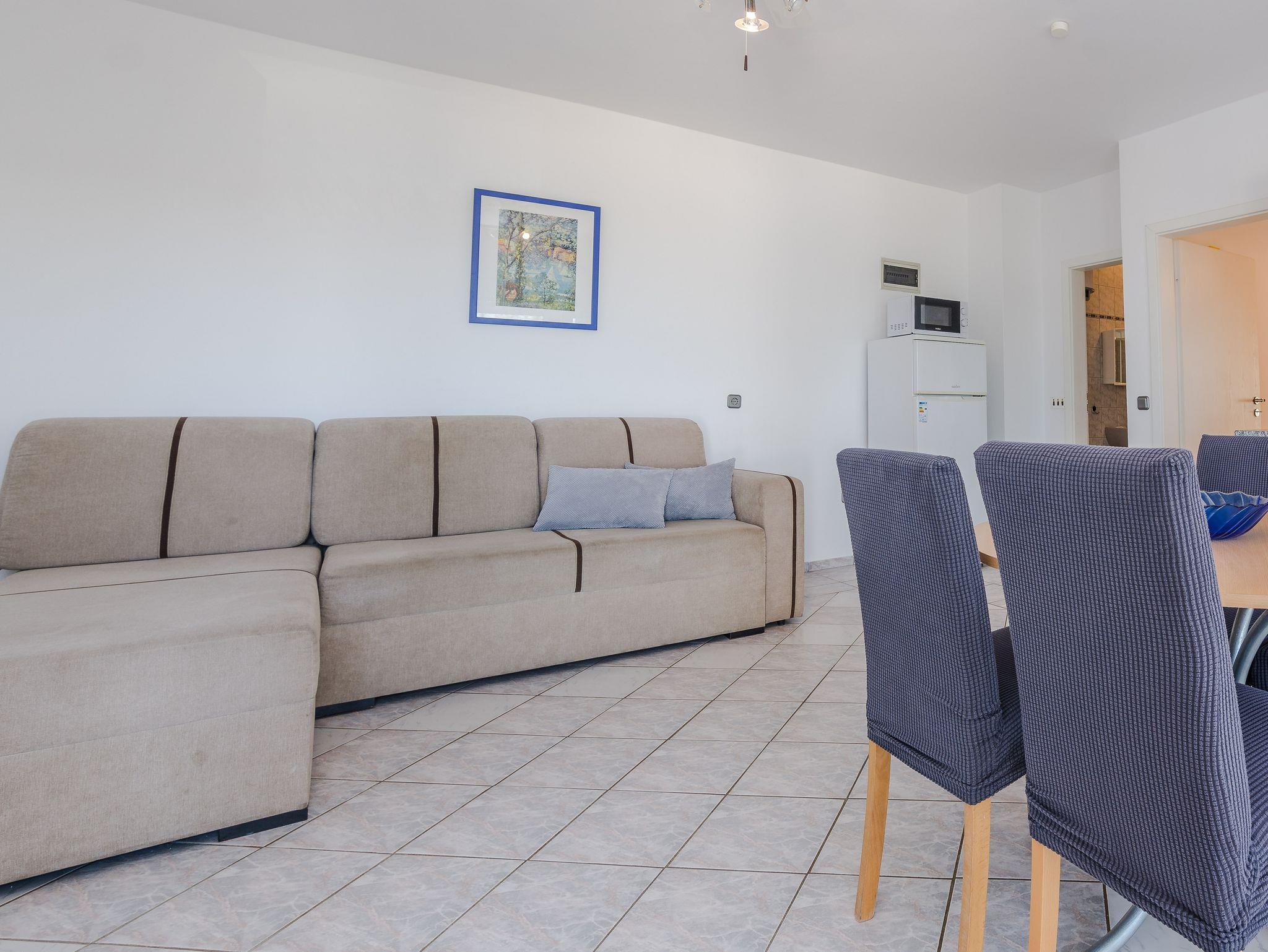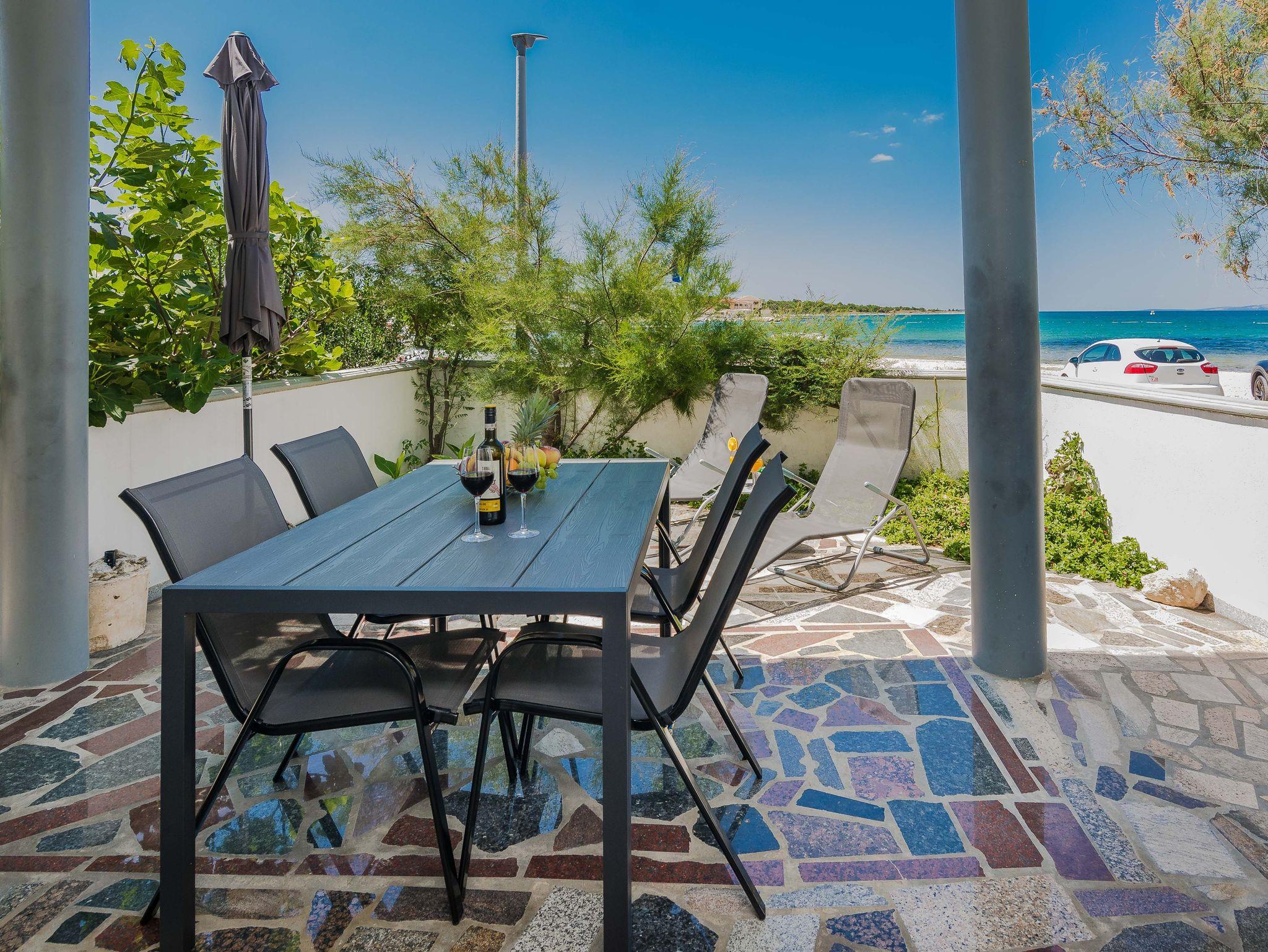 Ferienwohnung bietet Platz für 4 Gäste. Die Betten sind in Schlafzimmern, die es 1 gibt, und in Wohnzimmer, innerhalb einer Gesamtfläche von 41m2, angeordnet. Die Gäste haben eine eigene Terrasse zur Verfügung, auf der sie in warmen Sommernächten genießen können. Das Apartment bietet Meerblick. Es ist erlaubt, Speisen auf dem Gemeinschafts-Grill vorzubereiten. IM PREIS INBEGRIFFEN: Kurtaxe, Endreinigung, Klimatisierung, Parkplatz, Internet, Kinderbett, Föhn. VERBINDLICHE ZUSÄTZLICHE KOSTEN: Aufzahlung für Kurzaufenthalte (prozentualer Zuschlag pro Nächtigungsanzahl: 30% - 1, 20% - 2, 10% - 3). Die Verfügbarkeit zusätzlicher Dienstleistungen in Ihrem reservierten Termin und die Preise derselben (falls nicht aufgeführt) müssen im Voraus überprüft werden. Zusätzliche Dienstleistungen die in der Zahlungsaufforderung nicht aufgeführt sind werden direkt beim Vermieter bezahlt, angenommen der Gast nutzt auch diese.