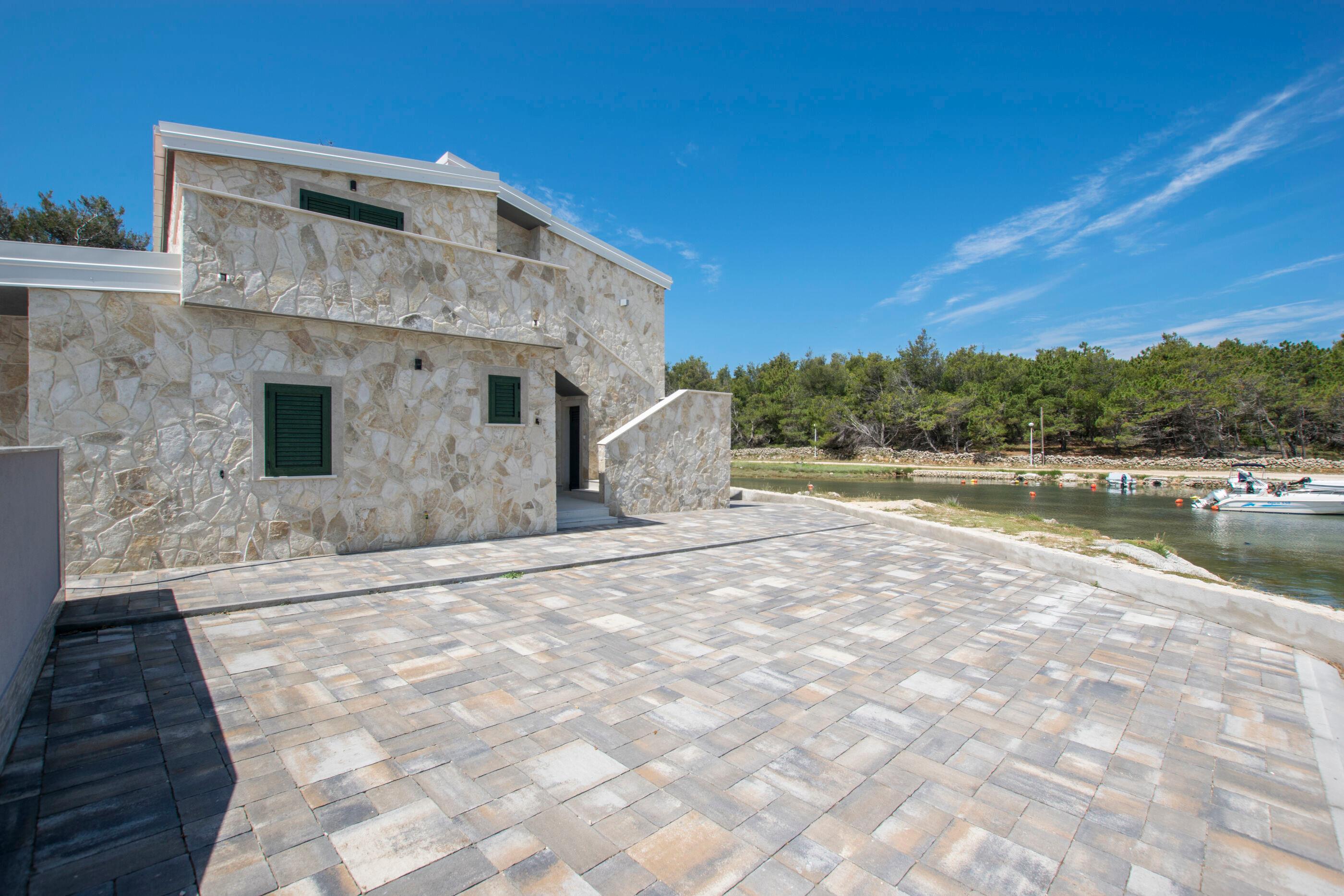 Das steienerne Haus wurde in einem modernen Baustil direkt am Meer erbaut und bietet Platz für maximal 12 Personen. Es besitzt drei Balkone mit Blick auf das Meer und das Velebit Gebirge.