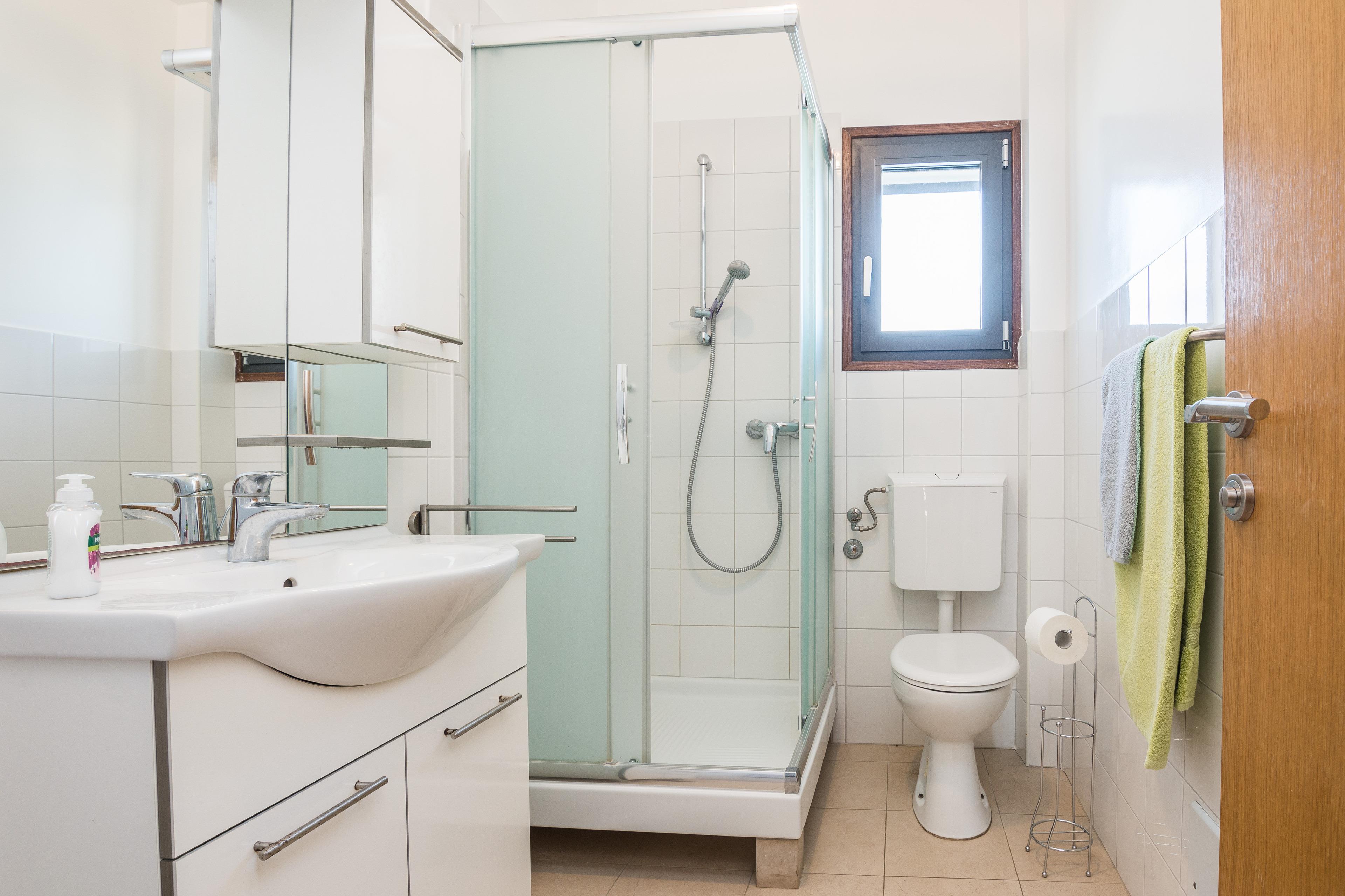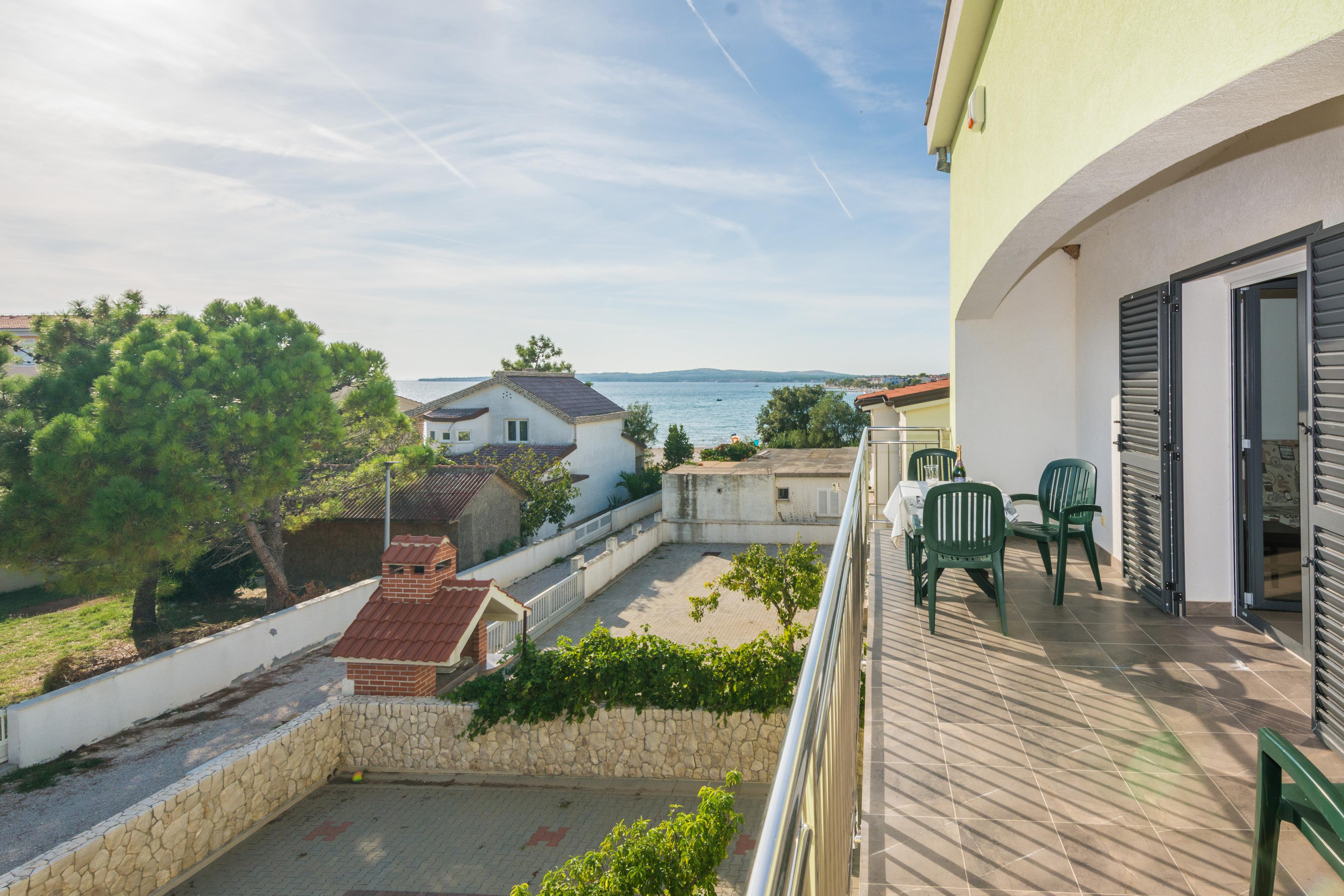 . Die 65 m² Wohnung befindet sich im ersten Stock des Hauses und teilt sich auf ein Wohnzimmer mit Essbereich und eine Küche, zwei Schlafzimmern (eine mit einem Doppelbett, eine mit zwei Einzelbetten) und ein Badezimmer mit Dusche. Im Wohnbereich befindet sich eine Schlafcouch für ein weitere Person. Vom Wohnzimmer aus erreichen Sie eine 9 m² Balkon mit Meerblick, die mit Tisch und Stühlen möbliert ist und bietet Platz für gemeinsames Frühstück oder Abendessen. Klimaanlage, WLAN Internet, Sat-TV, Kinderbett, Kinderhochstuhl, Grill und Parkplatz auf dem Grundstück stehen zu Verfügung ohne Aufpreis.