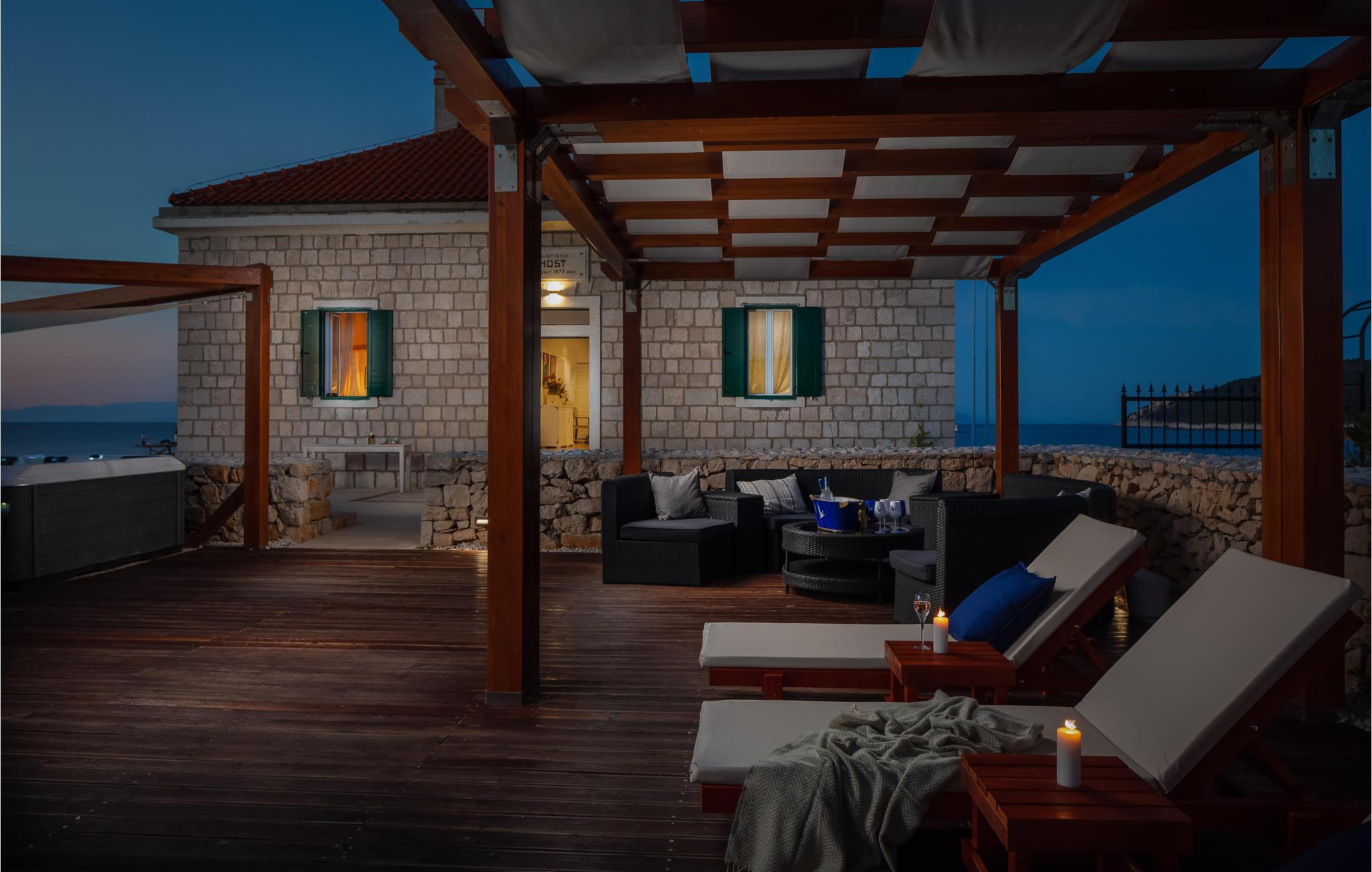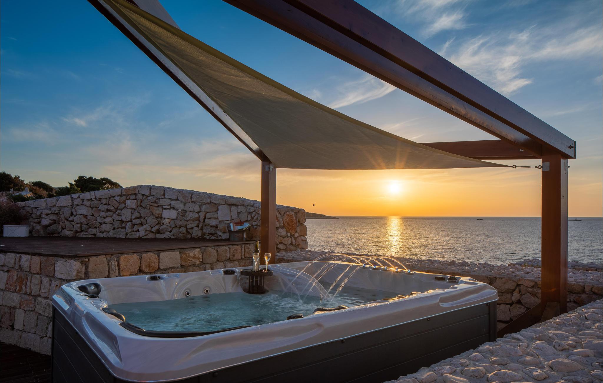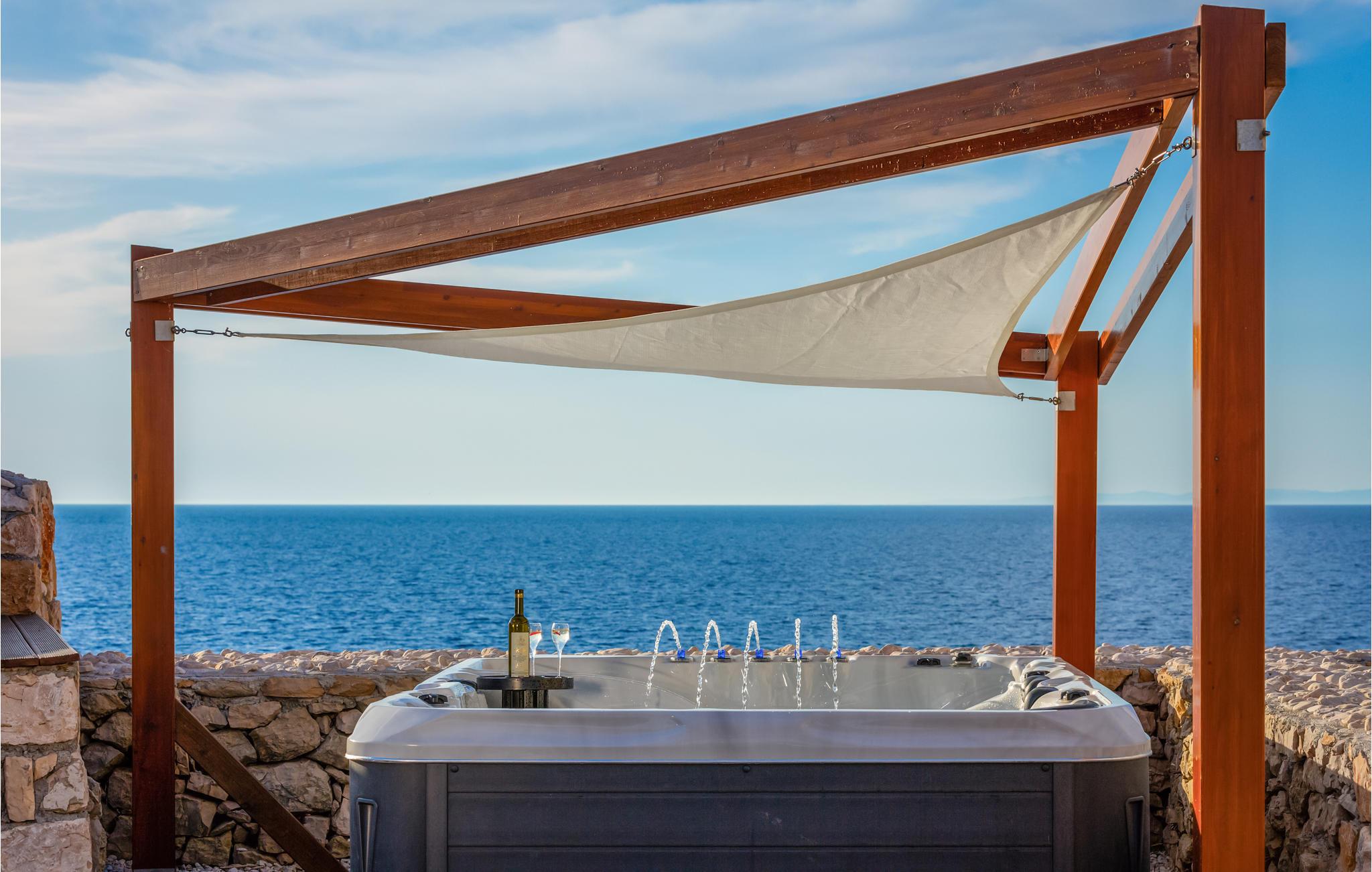Nyt en dukkert i det utendørs boblebadet og la deg fortrylle av den fantastiske havutsikten. Selvfølgelig er det også en grill til din disposisjon, og det er også et sommerkjøkken.
