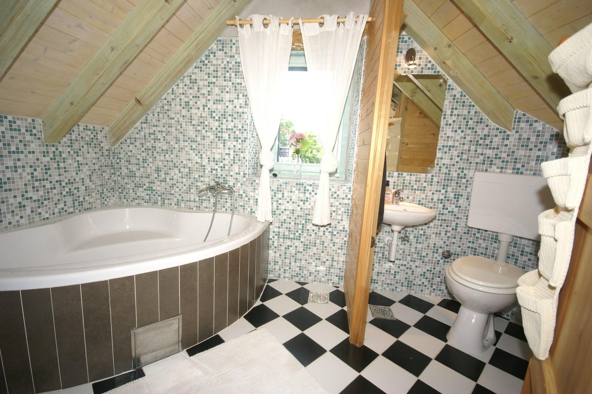 I 3. etasje: (Åpent kjøkke(spisebord(4 personer), komfyr(komfyr med 2 kokeplater, elektrisk), kaffetrakter, kjøleskap(+ fryser)), Stue/soverom(1 persons sovesofa, Dobbeltseng eller 2 enkeltsenger(dyn), TV(satellitt, Tyske TV-kanaler), DVD-spiller, stereo, klimaanlegg), bad(badekar med dusj, håndvask, toalett)) vaskemaskin(deles med andre gjester), terrasse(deles med andre gjester, 20 m2), hage(deles med andre gjester, inngjerdet, opplyst, 150 m2), hagemøbler, grill(deles med andre gjester), parkering, Parasoll, sykler tilgjengelig(på forespørsel)