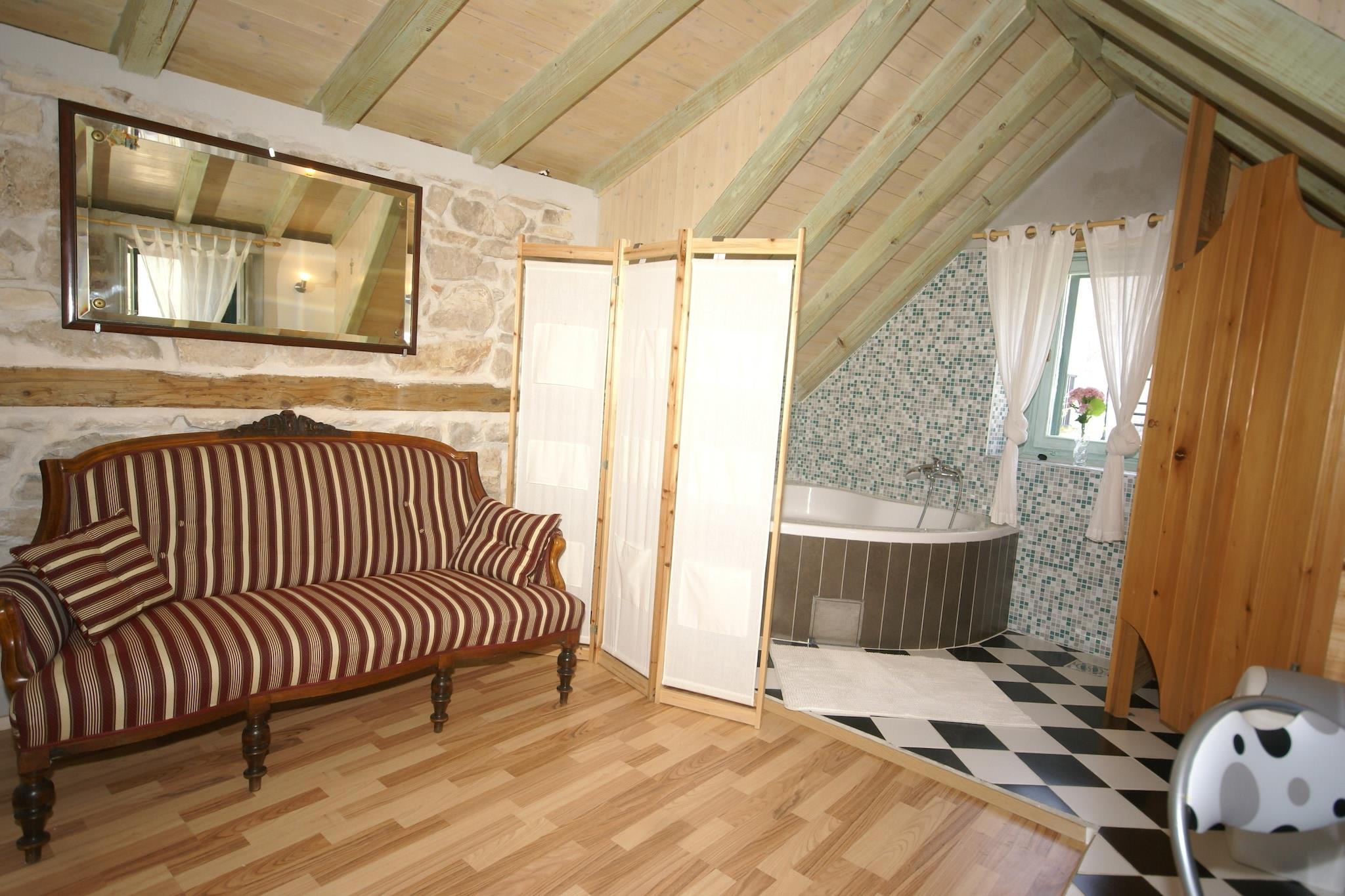 Denne sjarmerende studioleiligheten i Vis ligger bare 500 m fra sjøen, og tilbyr et koselig tilfluktssted for opptil 3 gjester, ideelt for par, små familier eller nære venner. Nyt havutsikten fra den felles terrassen, og slapp av i stue-/soveområdet med klimaanlegg etter en dag med øyeventyr. Leiligheten ligger 0,5 km fra Vis sentrum, nær butikker, restauranter og natteliv (1 km). Friluftsentusiaster kan utforske øyas naturlige skjønnhet gjennom fotturer, sykling, dykking og seiling. Den felles hagen, som er opplyst om natten, inviterer til fredelige kveldsturer, mens grillområdet er perfekt for uteservering. Gjestene drar nytte av gratis parkering, sykkeltilgang på forespørsel og kjæledyrvennlige fasiliteter (mot en liten avgift). Huseieren bor på stedet, og tilbyr en varm og hjelpsom tilstedeværelse. Med Split lufthavn 60 km unna, er denne leiligheten en avslappet base for å utforske den dalmatiske kysten.