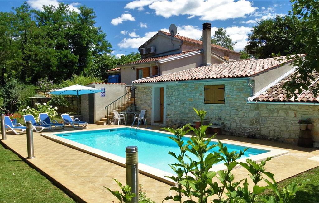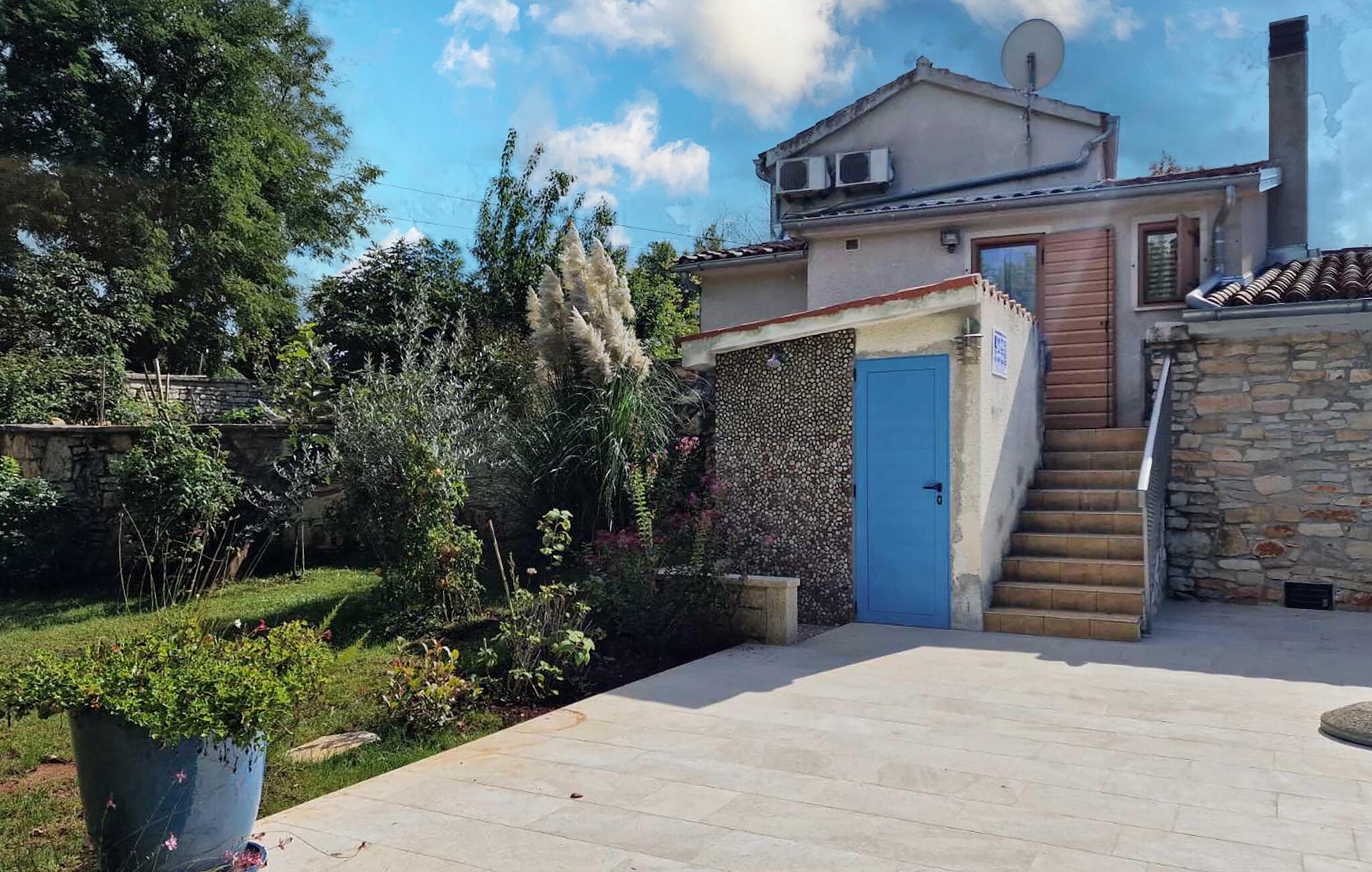 Tilbring din neste ferie i dette typiske istriske feriehuset, som kombinerer tradisjon og komfort på en harmonisk måte. Omgitt av grønn natur kan du nyte fred og privatliv her, ideelt for familier på jakt etter avslapning og autentisitet. La deg bli ønsket velkommen av den varme atmosfæren i det koselige interiøret. Slapp av i den lyse stuen med komfortable sofaer og naturmaterialer, eller lag dine favorittretter på det rustikke kjøkkenet. Kombinasjonen av stein, tre og varme farger skaper en innbydende atmosfære som minner om det opprinnelige Istria.