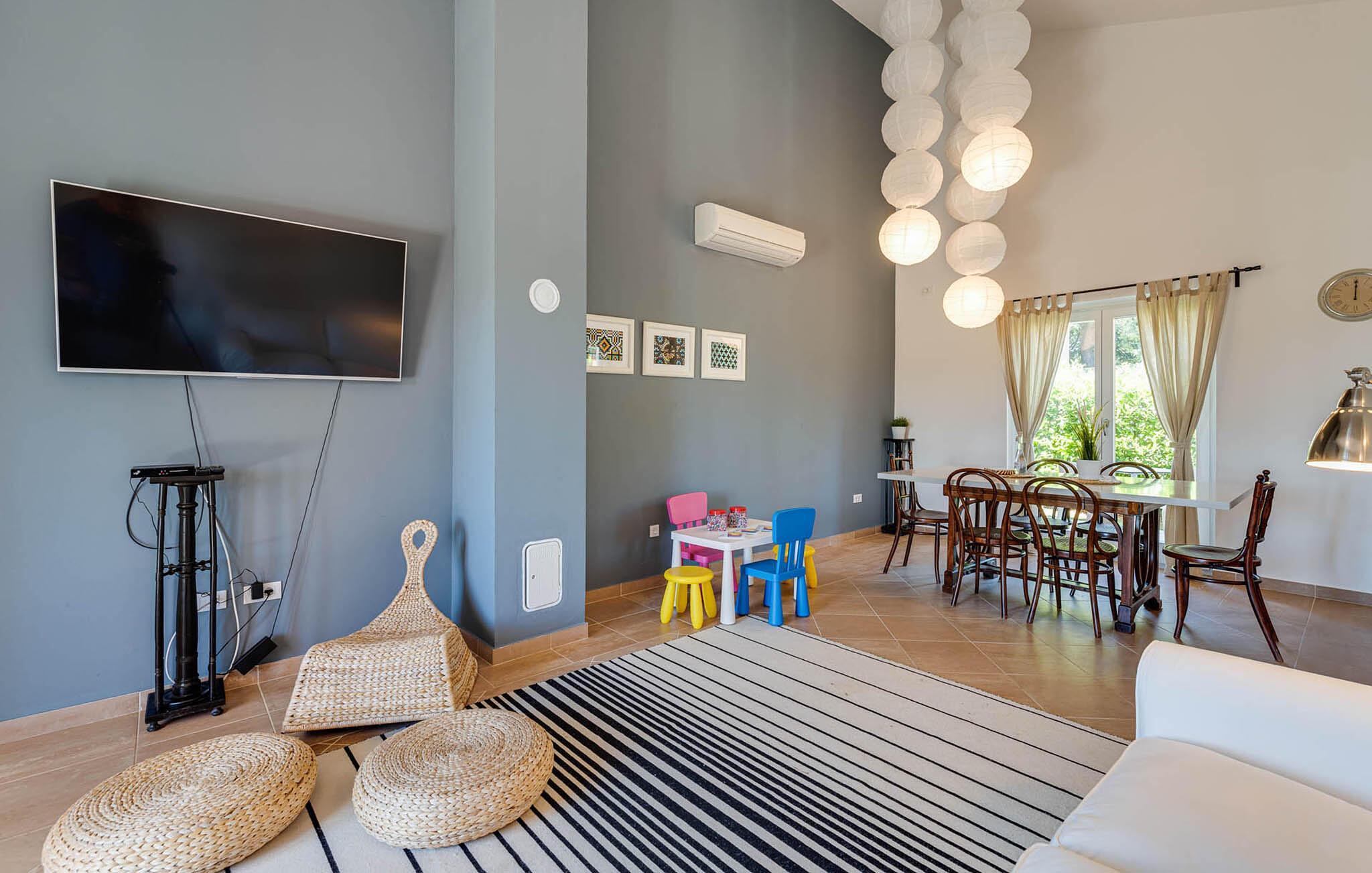 Rommene i feriehuset er oversiktlig utformet, harmonisk innredet og innbyr umiddelbart til å føle seg som hjemme. Det moderne kjøkkenet gir plass til å lage mat sammen eller små kaffepauser innimellom. Ha koselige samtaler til langt på kveld ved spisebordet eller slapp av i sofaen med en filmkveld.