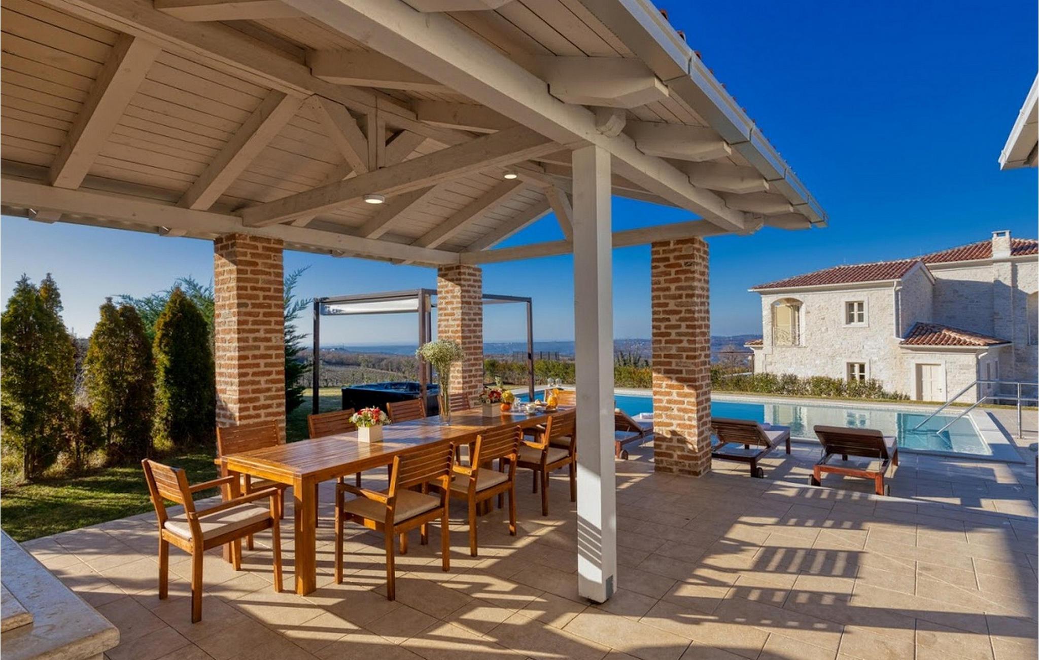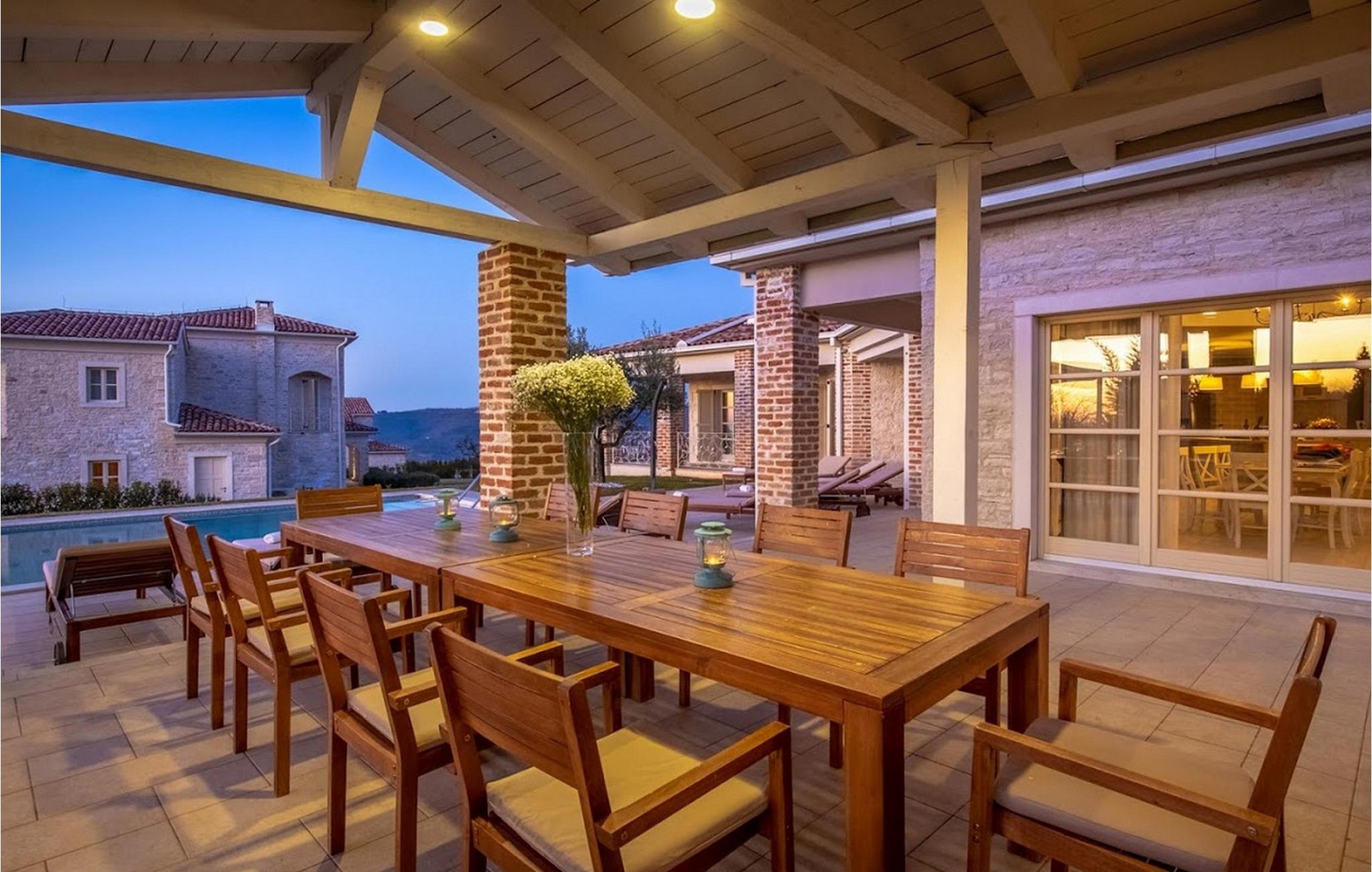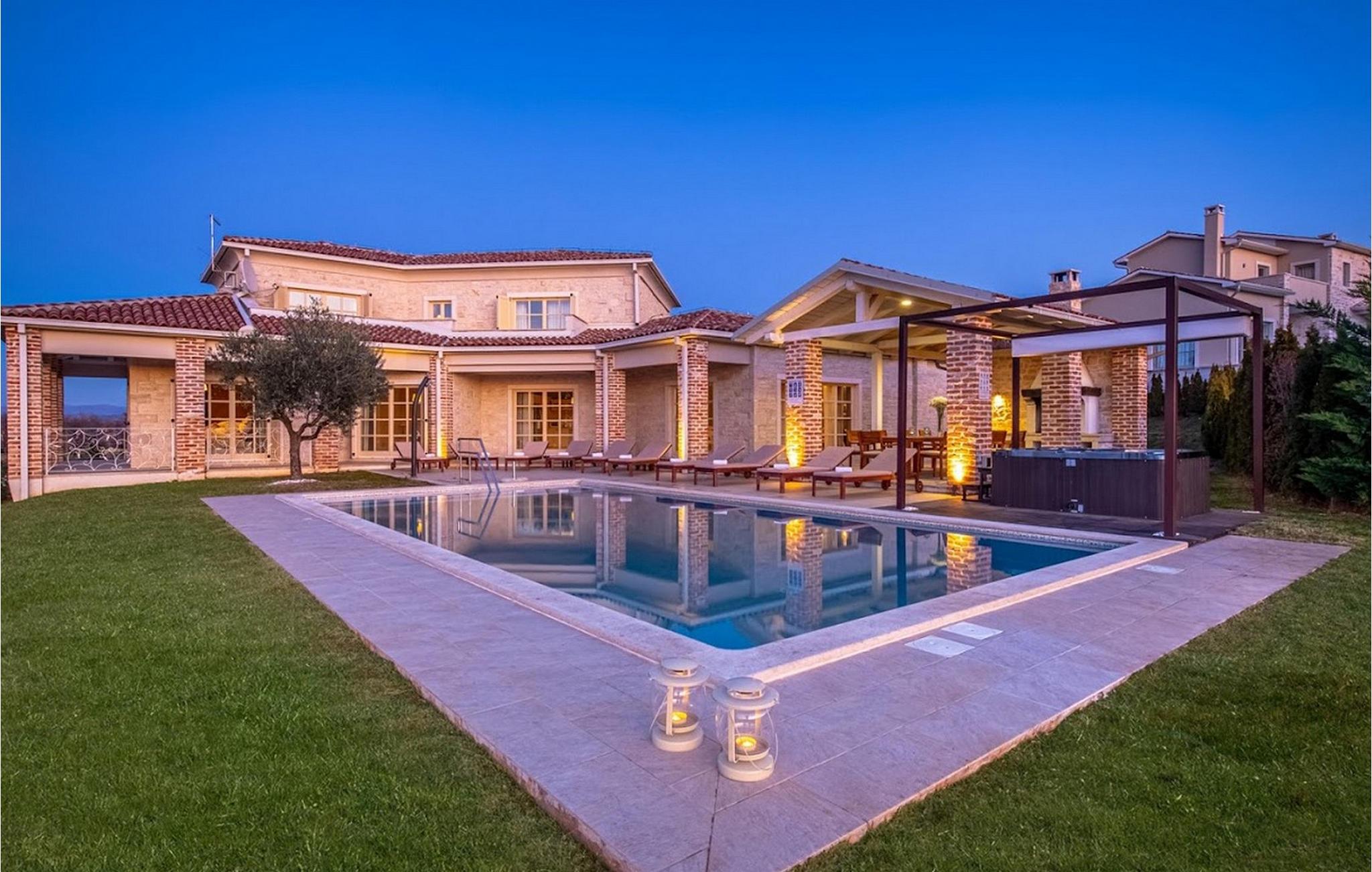 Den vakre Villa Star ligger i den lille, pittoreske landsbyen Bajkini i Istria, som på grunn av sin geografiske beliggenhet tiltrekker seg både naturelskere og de som setter pris på kvalitetsvin og deilig mat. Med sitt elegante eksteriør og interiør er Villa Star et ideelt valg for deg som ønsker å nyte en ferie i absolutt privatliv og omgitt av vakker natur. Villa Star har 4 romslige soverom med dobbeltsenger, samt 4 vakkert innredede bad og et separat toalett. Et sjarmerende, fullt utstyrt kjøkken ligger i forbindelse med en vakker spisestue hvor alle gjestene kan samles. Den romslige stuen vender ut mot den vakre steinterrassen, som har en fantastisk utsikt over de nærliggende vinmarkene. I Villa Stars vakkert anlagte hage er det et stort svømmebasseng (66 m²) hvor du kan ta en forfriskende dukkert hver dag, og du kan også slappe av i et deilig utendørs boblebad. Gratis Wi-Fi er tilgjengelig i alle hjørner av inne- og uteområdene i denne villaen, som har klimaanlegg. Villa Star har et boareal på 480 m², ligger på en 1400 m² stor tomt og tilbyr gjestene absolutt alt: luksus, vakker natur, moro og ikke minst en velfortjent ferie. Bare noen få minutters gange fra villaen ligger den berømte vingården Arman, og i umiddelbar nærhet ligger noen av de beste vingårdene som enhver ekte vinelsker bør besøke. Kvalitetsrestauranter, markeder og barer finner du i Vi?inada, bare 3 km fra villaen. De større byene Pore? og Novigrad ligger 10 minutters kjøring unna, og bare 5 minutters kjøring fra villaen ligger den vakre middelalderbyen Motovun, som er kjent for filmfestivalen som arrangeres hvert år i juli. Tilbring ferien på Villa Star, skjem deg bort og opplev det rike gastronomiske og turistmessige tilbudet i denne vakre regionen i Istria. Vær oppmerksom på at dette overnattingsstedet kun tar imot ungdomsgrupper eller utdrikningslag mot et refunderbart depositum. En ungdomsgruppe på dette overnattingsstedet består av personer under 30 år. Hvis du er en ungdomsgruppe eller et utdrikningslag, vil du bli bedt om å betale depositumet ved ankomst. Eventuelle beløp som kreves for å utbedre skader på overnattingsstedet forårsaket av deg under oppholdet, trekkes fra depositumet og returneres deretter til deg.