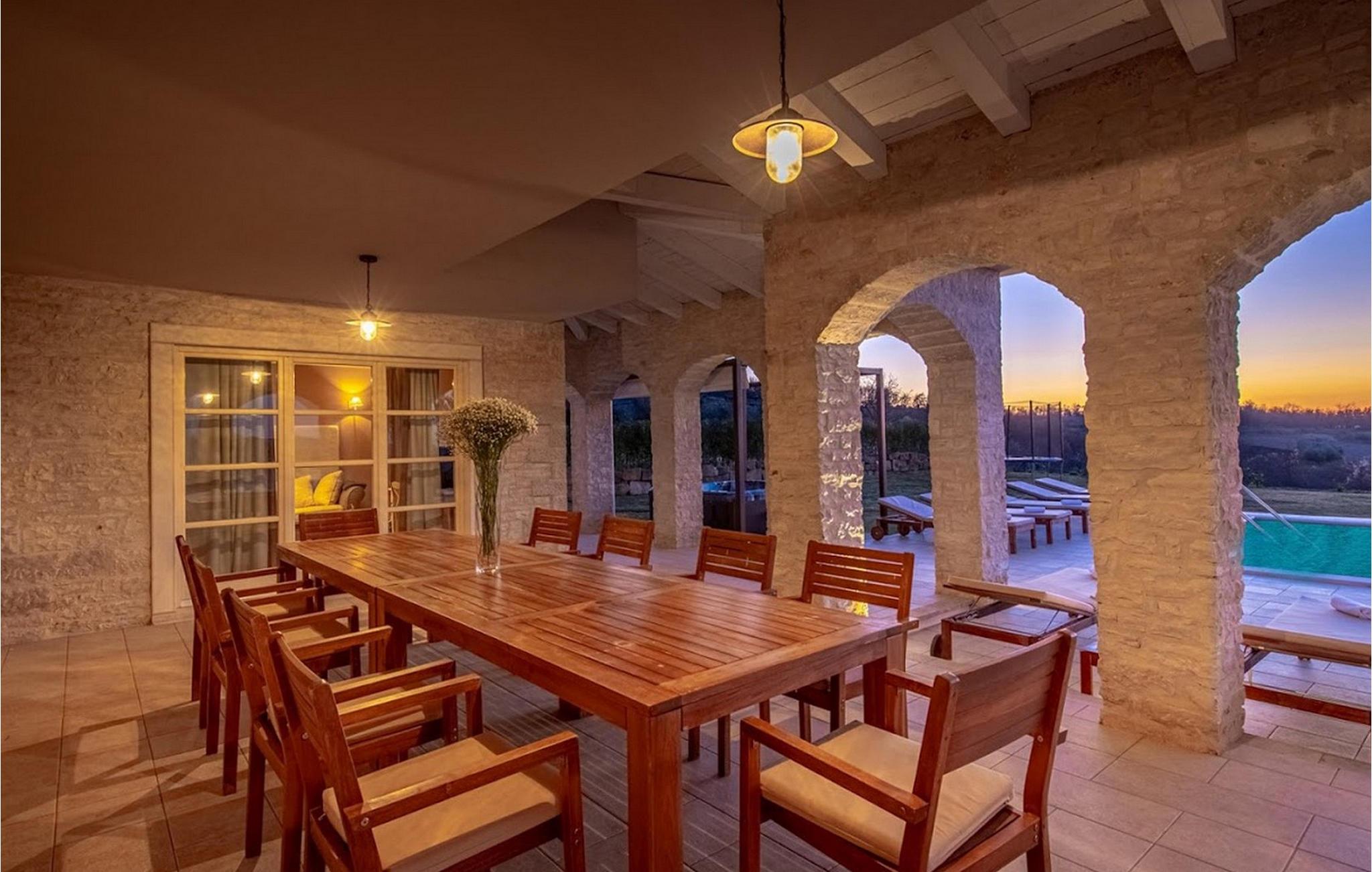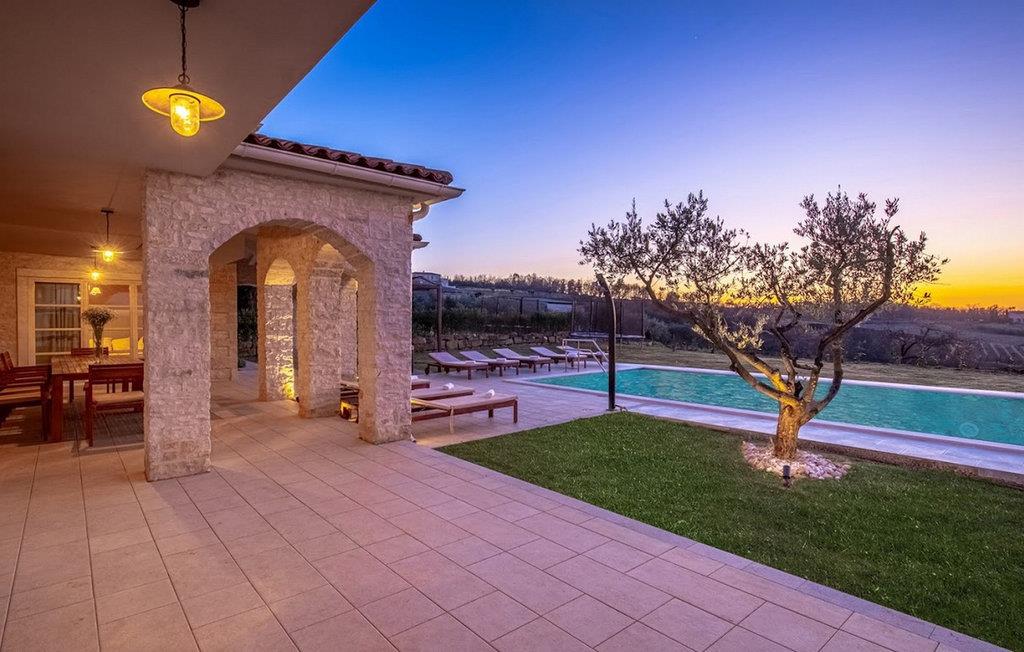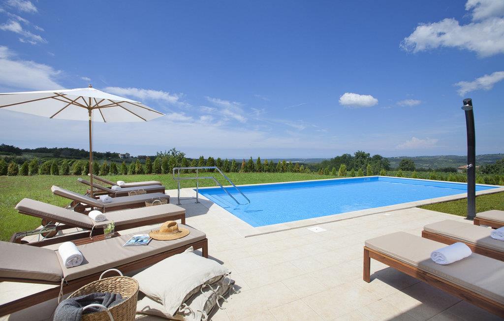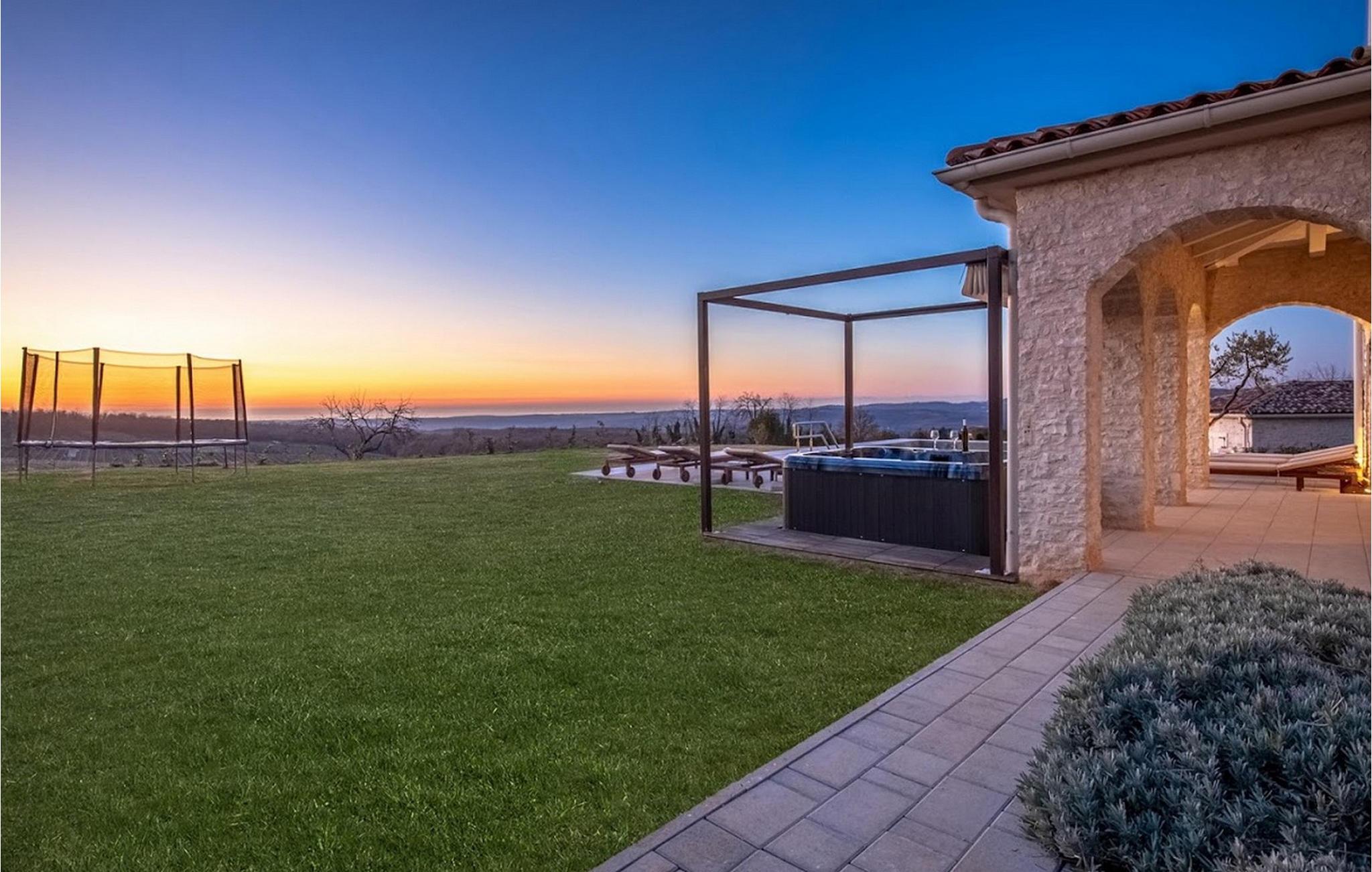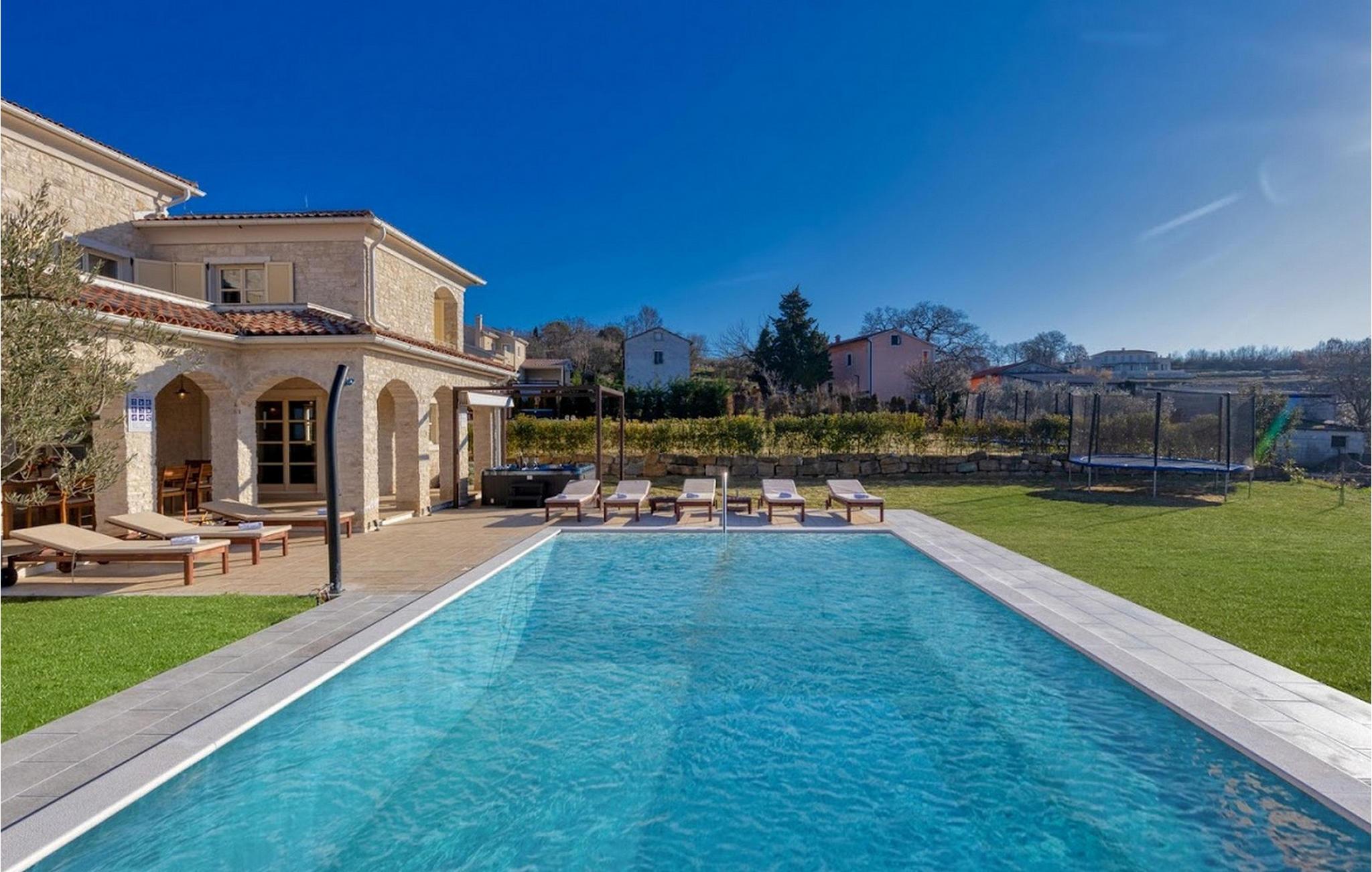 Den vakre Villa Sara ligger i den lille istriske byen Bajkini, som kan skilte med et rikt utvalg av istrisk vin, intakt natur og en gjestfri befolkning. I nærliggende Vi?inada, 3 km unna, finner du en rekke kvalitetsrestauranter, markeder og barer. Villa Sara har klimaanlegg, sentralvarme og et boareal på 400 m², 4 luftige og komfortable soverom med dobbeltsenger, 4 flotte bad og et separat toalett. Den romslige stuen har direkte forbindelse til steinterrassen med utsikt over de nærliggende vinmarkene og det krystallklare havet. Kjøkkenet er moderne og fullt utstyrt med en komfortabel spiseplass for alle gjestene. Den vakre hagen på 1200 m² har et utsøkt stort basseng (66 m²), noe som gjør villaen egnet for ferier både tidlig og sent i sesongen. I tillegg til den luksuriøse atmosfæren på stedet, er det et utendørs boblebad hvor gjestene kan slappe av helt privat. Både inne- og uteområdet er utstyrt med gratis Wi-Fi, slik at du kan surfe på internett uten problemer. Villa Sara tilbyr hele luksuspakken som enhver gjest garantert vil sette pris på: det vakre havet, fantastiske vingårder, masse moro og en velfortjent ferie i fred og ro. De større byene Pore? og Novigrad ligger bare 10 minutter fra villaen. Denne regionen er kjent for sine uberørte vinmarker og produksjon av førsteklasses viner. Bare en kort spasertur fra villaen finner du den berømte vingården Arman, som er vel verdt et besøk, i tillegg til flere av de beste vingårdene i umiddelbar nærhet. Bare en 5-minutters kjøretur unna ligger den vakre middelalderbyen Motovun, som er kjent for sin skjønnhet, sitt rike gastronomiske og turistmessige tilbud og filmfestivalen som arrangeres hvert år i juli. Vær oppmerksom på at dette overnattingsstedet kun tar imot ungdomsgrupper eller utdrikningslag mot et refunderbart depositum. En ungdomsgruppe på dette overnattingsstedet består av personer under 30 år. Hvis du er en ungdomsgruppe eller et utdrikningslag, vil du bli bedt om å betale depositumet ved ankomst. Eventuelle beløp som kreves for å utbedre skader på overnattingsstedet forårsaket av deg under oppholdet, trekkes fra depositumet og returneres deretter til deg.