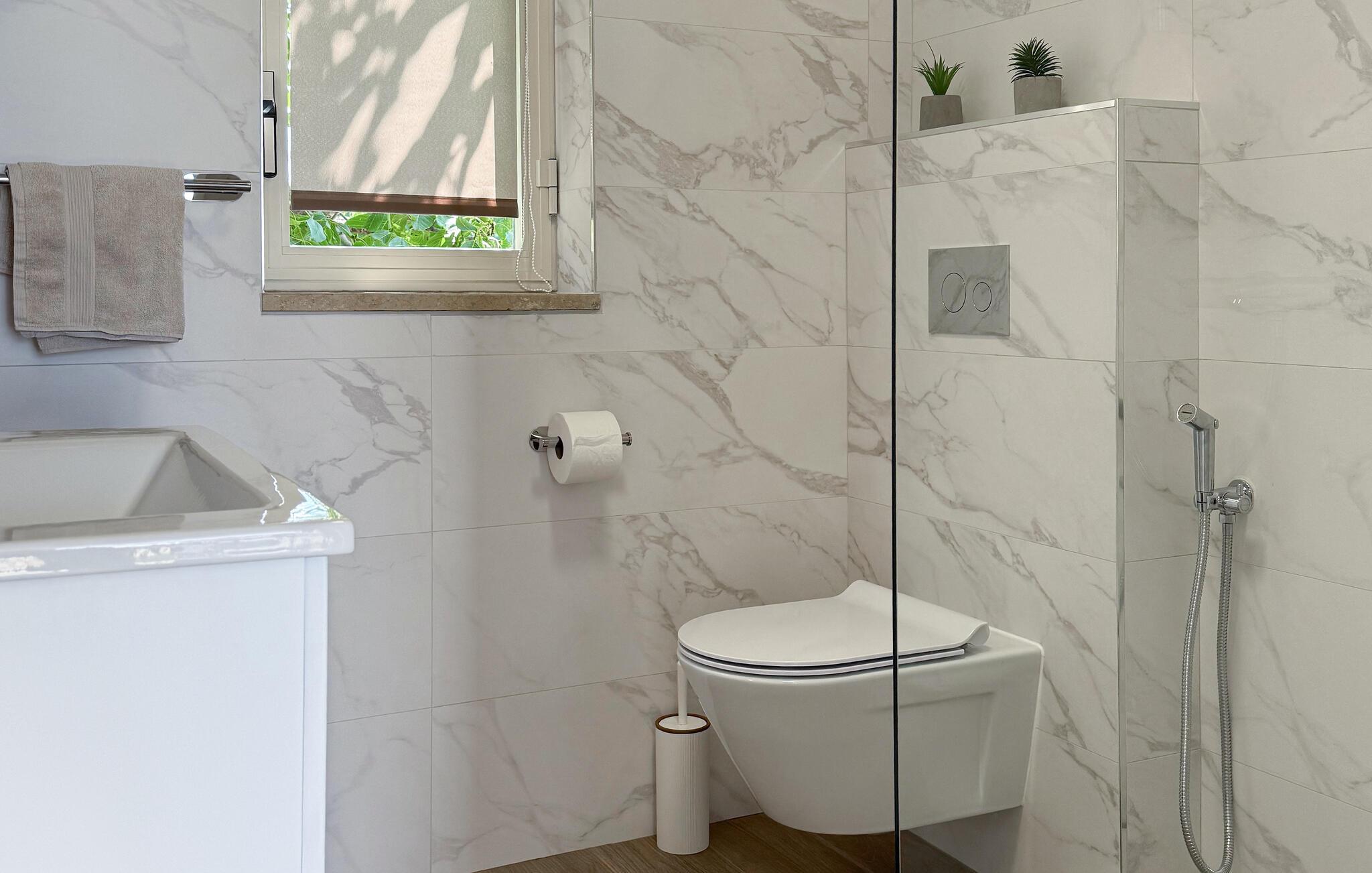 Baderom (nr. 1) - WC: Varmt og kaldt vann. Dusj