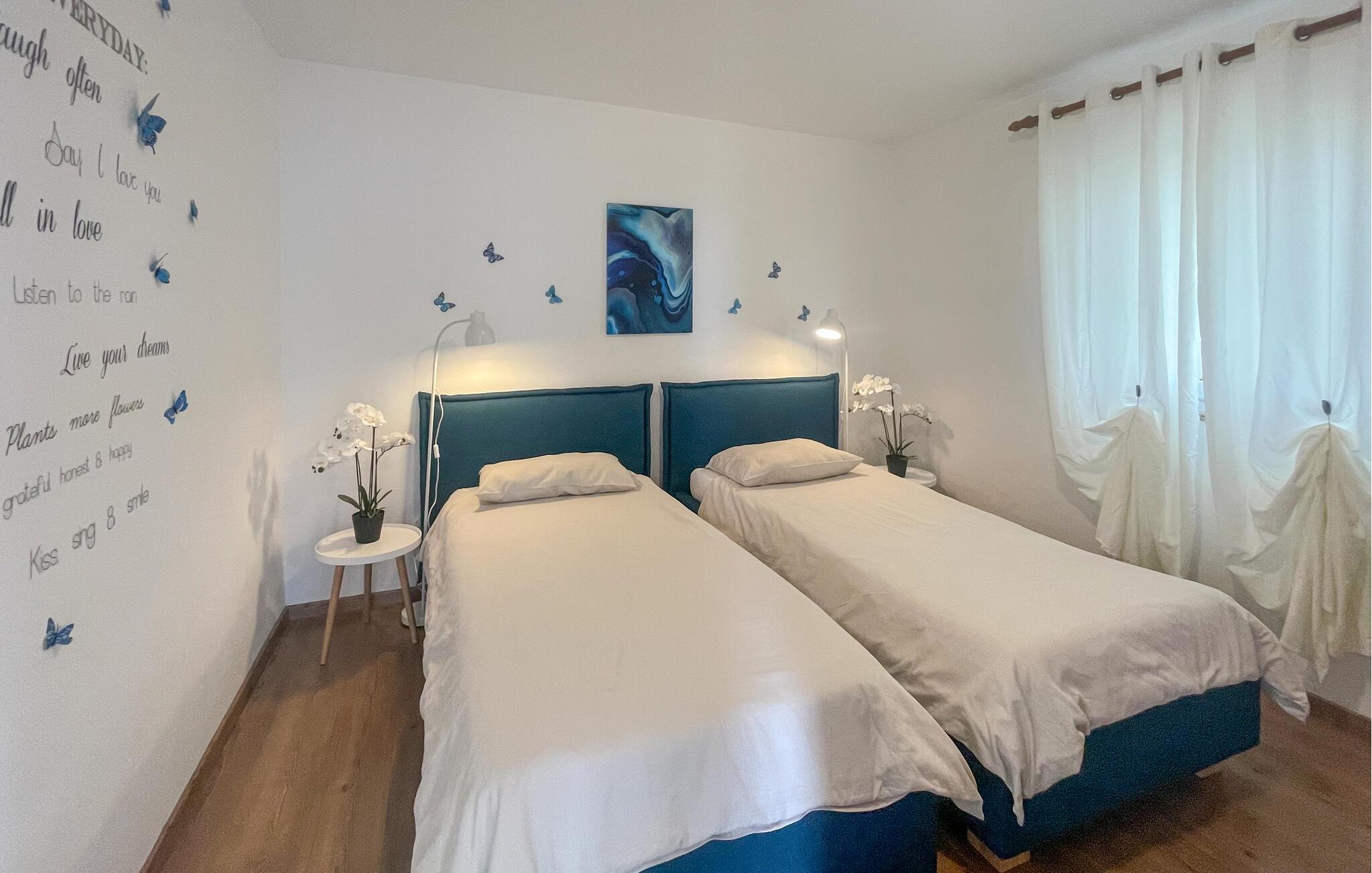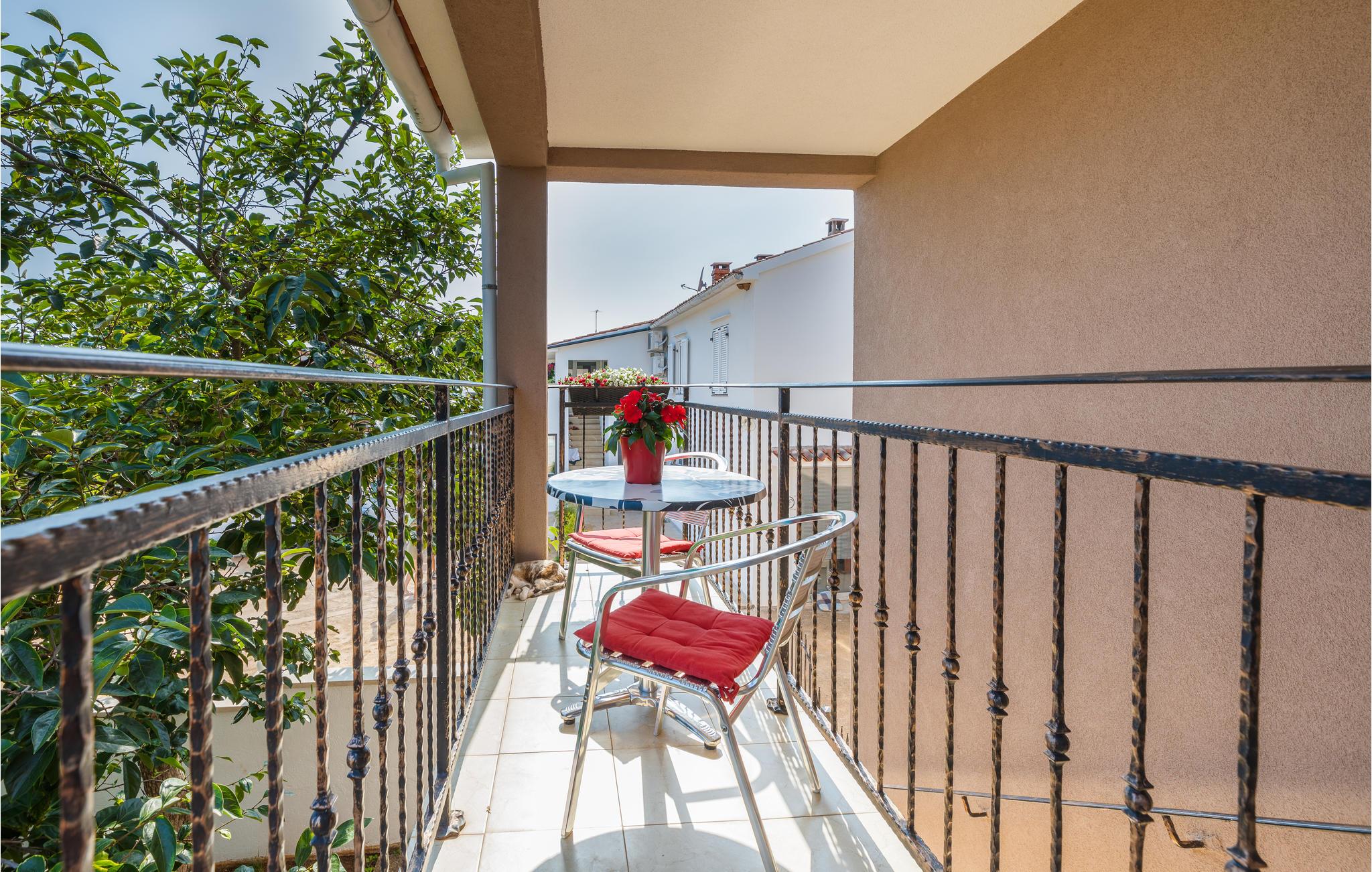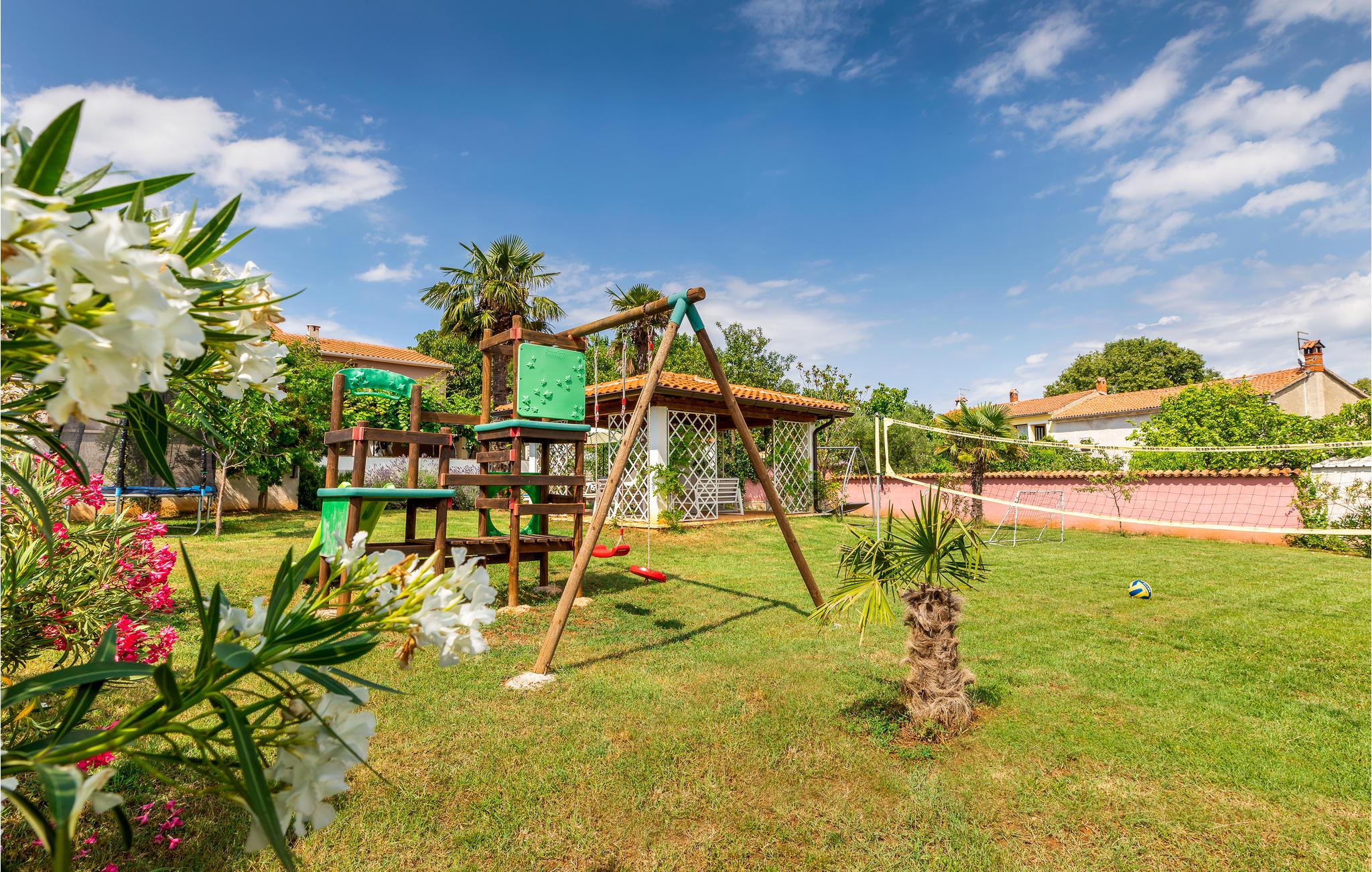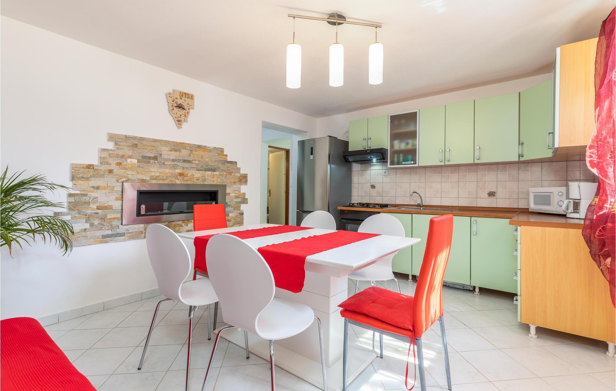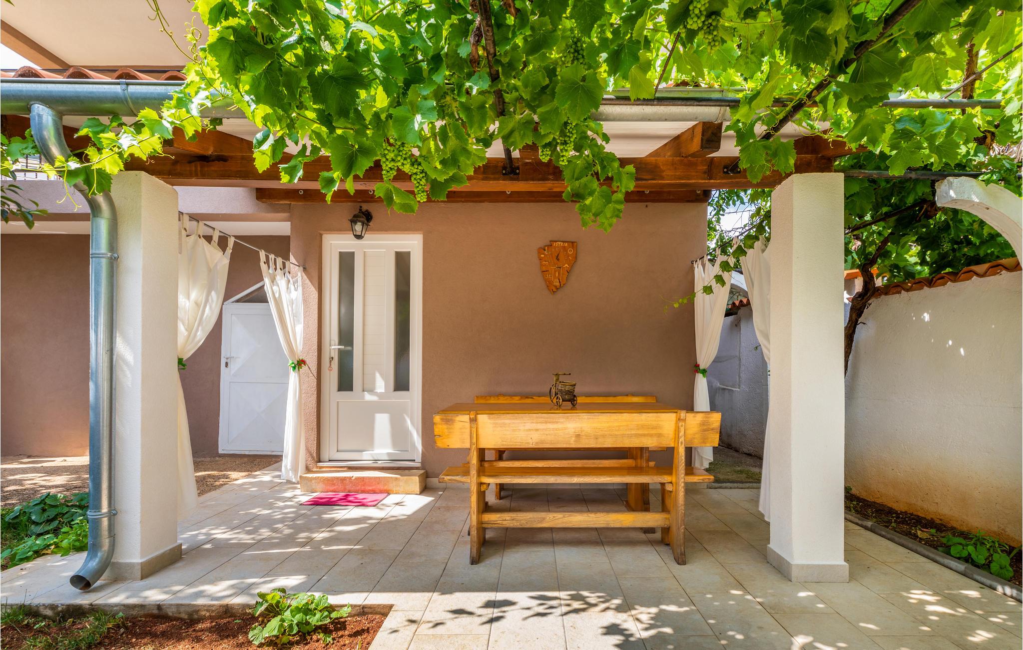 Nydelig og romslig feriehus bestående av to enheter forbundet med en utvendig trapp. Feriehuset ligger i den lille landsbyen Kastelir, en typisk istrisk landsby. Interiøret er enkelt, men koselig. På terrassen kan du spille et godt spill som 'Mensch ärgere dich nicht' i skyggen om dagen og nyte landsbyatmosfæren med et glass vin om kvelden. I den nærliggende turistbebyggelsen finner du ikke bare vakre strender, men også mange sportsfasiliteter, og for nattelskere er det to diskoteker tilgjengelig. Besøk byen Porec og dens vakre strender og trange gater, hvor mange kulturhistoriske skatter og fine opplevelser venter på deg. Den lille byen Visnjan ligger i det indre av Istria og har totalt 615 innbyggere. Den ligger 12 km fra byen Porec, som kan være en ideell kombinasjon av avslapning og aktiv ferie. Spesielt attraktivt om sommeren er for eksempel Astrofest med utstillinger og foredrag om astronomi. Ideell for alle musikkelskere er sommerkveldene "Visnjan".