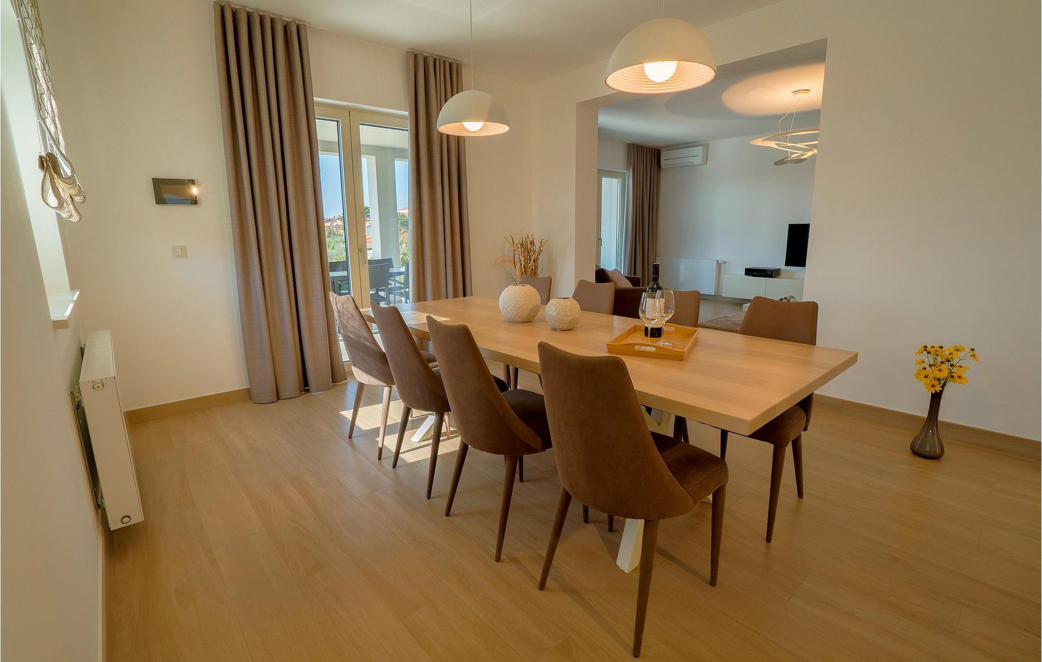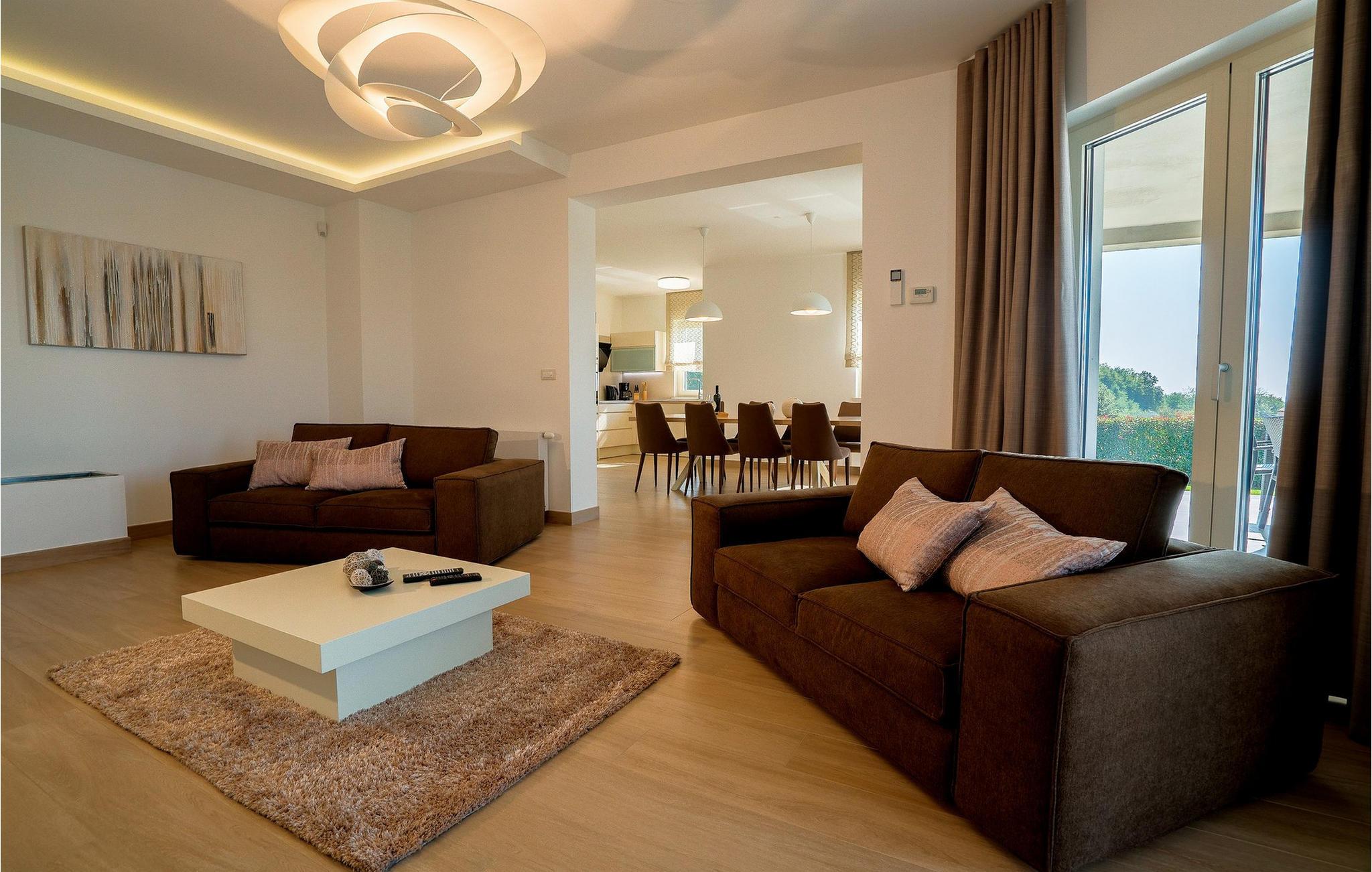 Den romslige og høykvalitets møblerte Villa Silvia tilbyr deg et moderne og komfortabelt tilfluktssted for sosialt samvær med venner eller familie. Det lyse og stilfulle interiøret byr på en elegant og koselig atmosfære, som du kan nyte under harmoniske måltider og hyggelige matlagingskvelder. Her kan du spille biljard eller bordtennis, samles til koselige filmkvelder eller slå av en prat over et glass vin ved peisen.