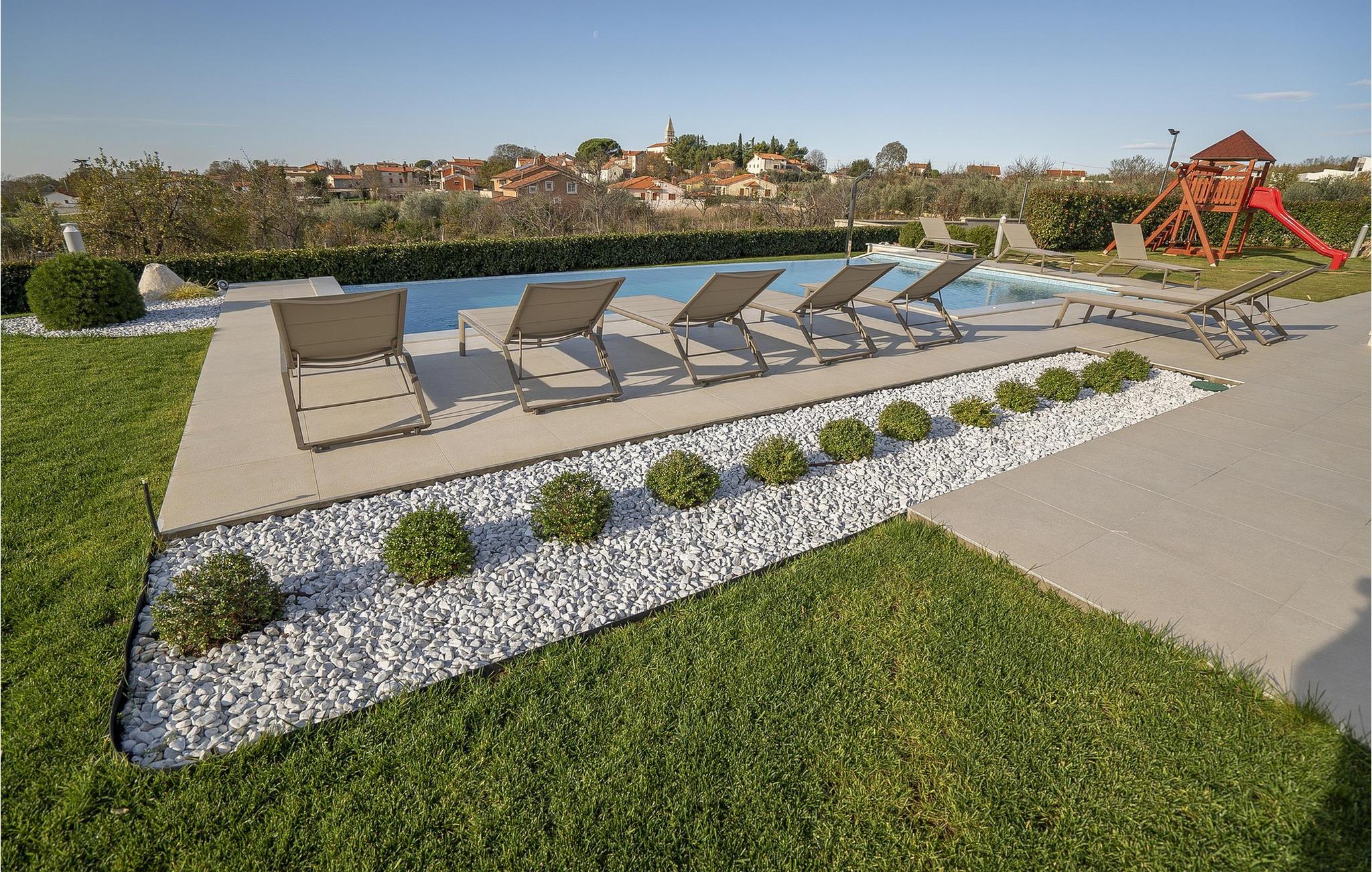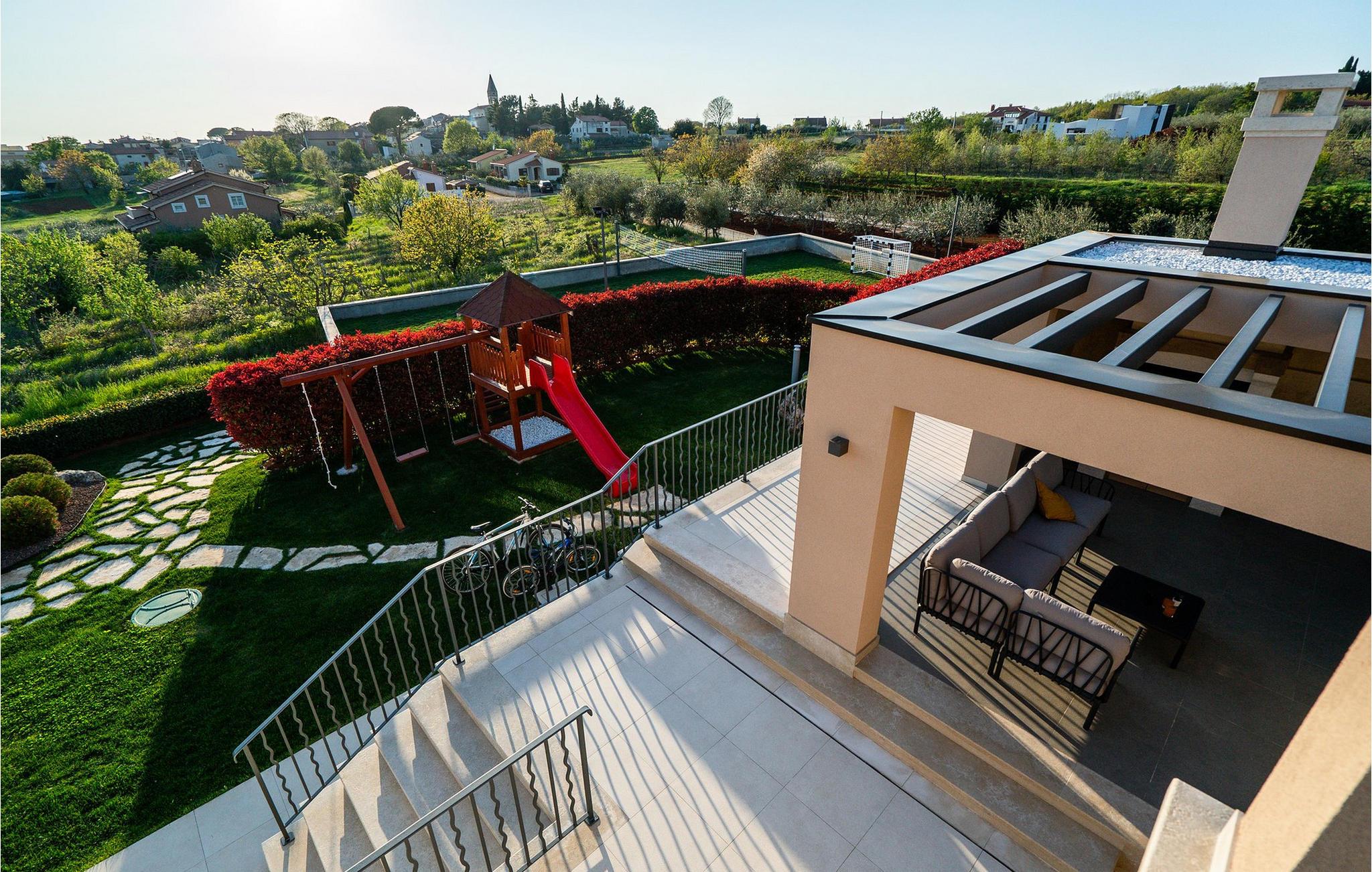Det velstelte uteområdet er perfekt for å nyte det fantastiske klimaet fra morgen til kveld. Unn deg koselige stunder i boblebadet, forfrisk deg i bassenget og slapp av på solsengen mens barna koser seg med de varierte lekemulighetene. Lag kulinariske høydepunkter på sommerkjøkkenet, spill volleyball under den blå himmelen og arranger stemningsfulle grillkvelder.