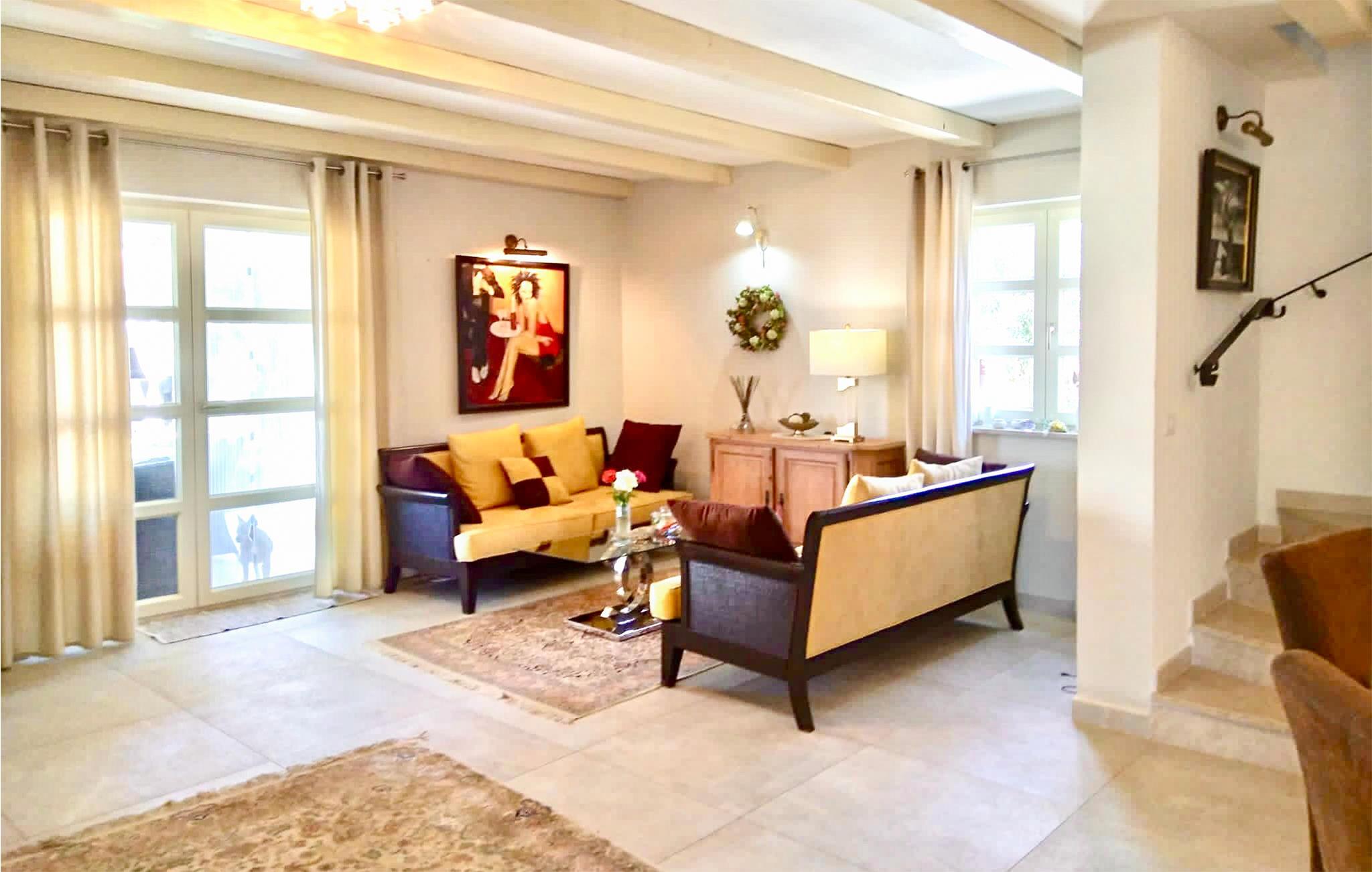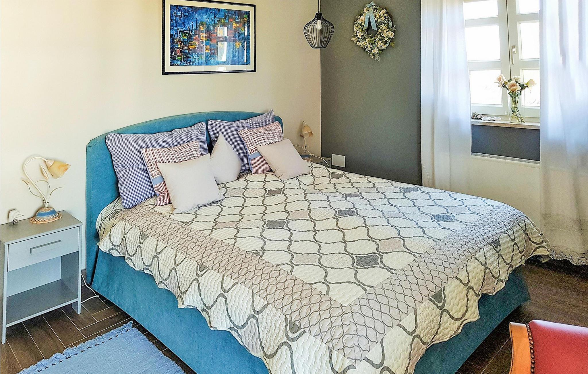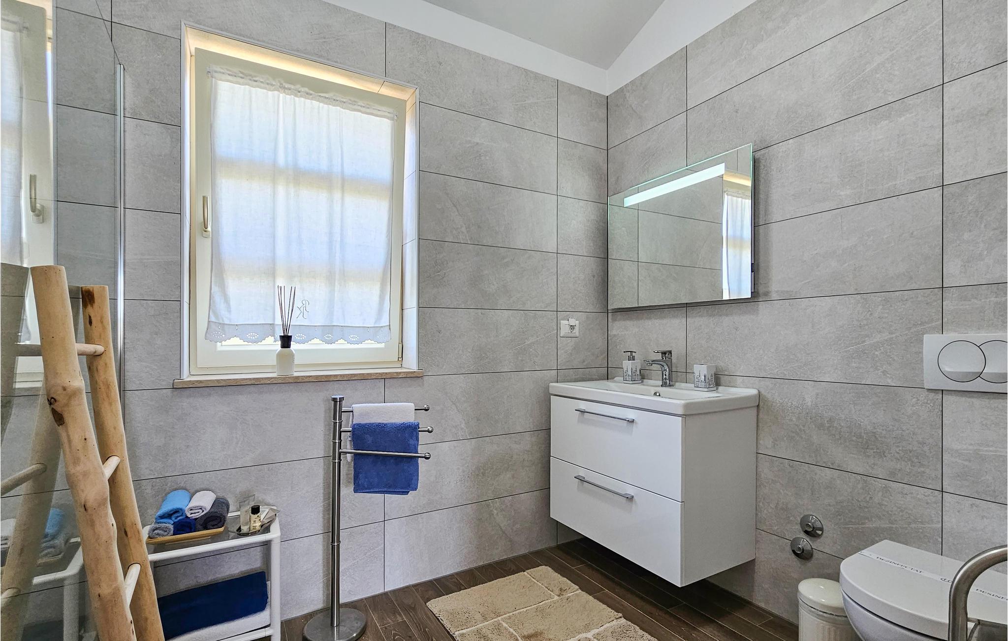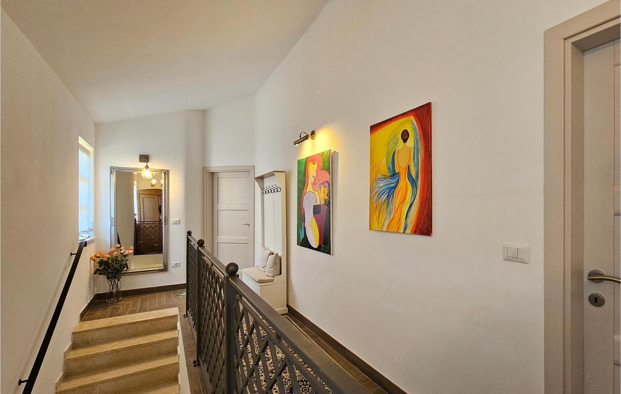 Den imponerende Villa Ginocchetti, som ble bygget i 2018, ligger bortgjemt i den istriske byen Valenti?i, som er en del av kommunen Ka?telir. Villaen er omgitt av vakkert olivengrønt, noe som gjør ferien ekstra avslappende. Du kan også slappe av på klippestranden, som ligger bare 7 kilometer fra villaen. Inne i villaen er det ett soverom i første etasje og tre soverom i andre etasje, hvorav ett har utsikt over rekkene av oliventrær og de to andre har utsikt over morgensolen og det krystallklare havet. Soverommene har klimaanlegg og dobbeltseng (180 x 200 cm). Hvis du tar med deg de minste til villaen, er en barneseng (60 x 120 cm) tilgjengelig på forespørsel. I første etasje er det stue med TV og kjøkken med plass til 8 personer i spisestuen. Villaen har fire private bad med dusj. Villaen har også et separat toalett. Kombinasjonen av moderne innredning og rustikk eksteriør gir komfort og luksus under oppholdet. På villaens gårdsplass er det et svømmebasseng (50 m2) hvor du kan slappe av og nyte utsikten over de vakre oliventrærne, som gir en ekte rustikk atmosfære. Det er også 6 solsenger rundt bassenget og en sittegruppe hvor du kan nyte naturen sammen med dine nærmeste. Det er to parkeringsplasser på eiendommen ved siden av villaen og mer enn tre utenfor eiendommen. Villaen er fullstendig inngjerdet, slik at du kan nyte privatlivet i det istriske paradiset. Valenti?i ligger i nærheten av byen Porec, som har historiske monumenter som tar deg tilbake til Kroatias kulturarv. I Porec finner du også vakre strender med krystallklart hav, der du kan nyte utsikten over det mediterende havet. Det finnes ikke mindre enn tre golfbaner innenfor en radius på 20 km. Nærmeste tennisbane ligger 8 km unna, og det er 500 m til restauranter og puber. Fra neste sesong 2023 vil villaen ha en ladestasjon (wallbox) for elbiler (inkludert i leieprisen). Besøk den vakre Villa Ginocchetti sammen med dine nærmeste, som vil gi deg fred og avslapning i vakre Istria! Kjæledyr er tillatt i denne boligen etter eierens skjønn eller mot et gebyr.