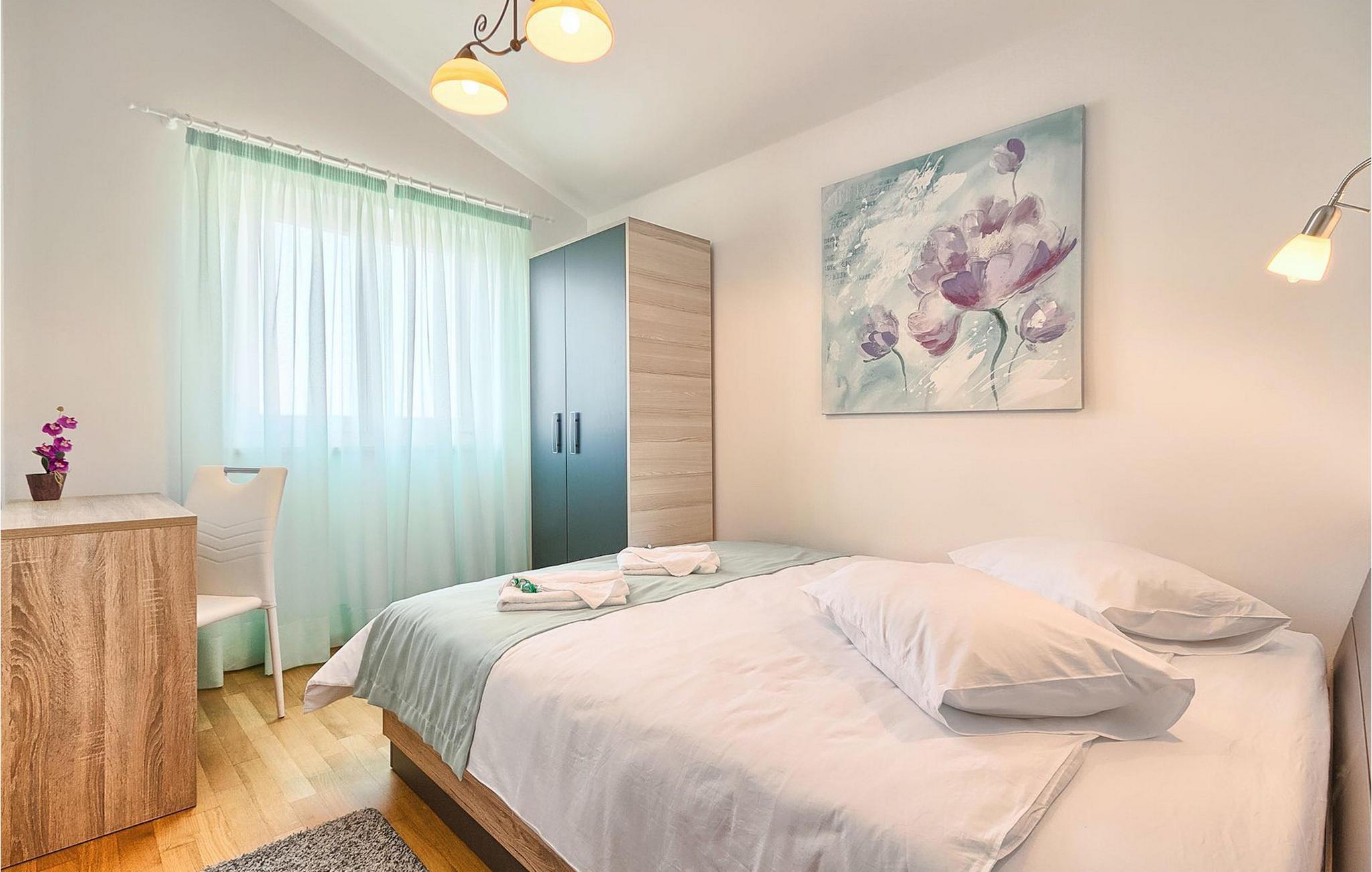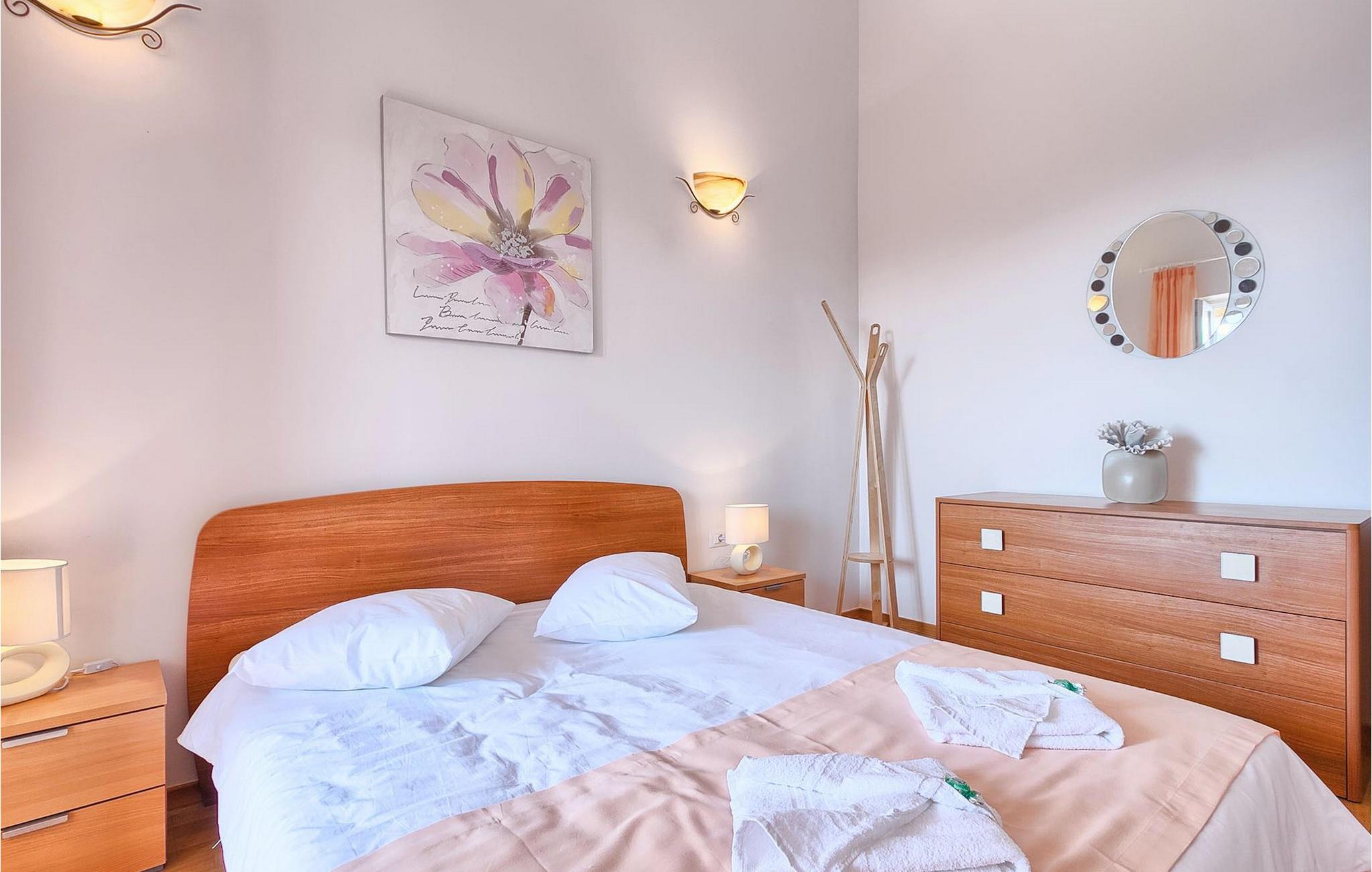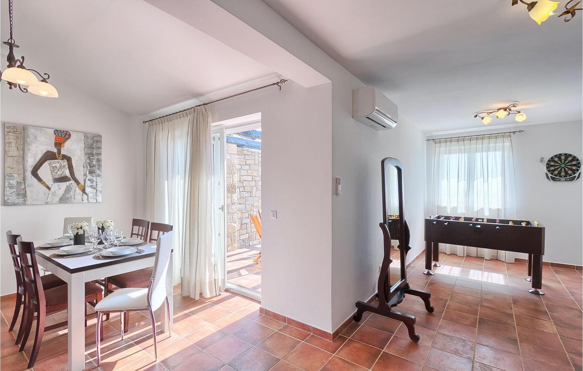 På varme sommerdager vil du sikkert sette pris på det hyggelige bassenget i hagen. Her kan du kjøle deg ned, slappe av og nyte Istrias sol sammen med familie og venner. Det er også en steingrill og en åpen spiseplass for 8 personer på terrassen, samt en koselig hengestol som inviterer deg til å vugge forsiktig. Den sjarmerende Villa Girasole er det perfekte feriehuset for å unnslippe hverdagens stress for en stundVillaen ligger i en sjarmerende landsby som heter Katelir. Den ligger i nærheten av Pore og strendene. Pore er Istrias største turistattraksjon, og her finner du alle slags aktiviteter. Hvis du er ute etter noe å gjøre, ekstraordinære opplevelser og en rik kulturarv, er Pore med sin 100 år lange erfaring innen gjestfrihet og topp turisttilbud det rette stedet for deg. Gå ikke glipp av de mange festene som arrangeres i turistbyene og i sentrum av byen. Det finnes strandklubber, kafeer, og etter midnatt kan du nyte den koselige atmosfæren på nattbarene og diskotekene. Her er det bare moro fra skumring til daggry! Det anbefales å ha med bil. Butikker og restauranter ligger innen gangavstand fra villaen. Områder av interesse inkluderer middelalderbyene Motovun og Gronjan på bakketoppene og kystbyene Rovinj og Vrsar.