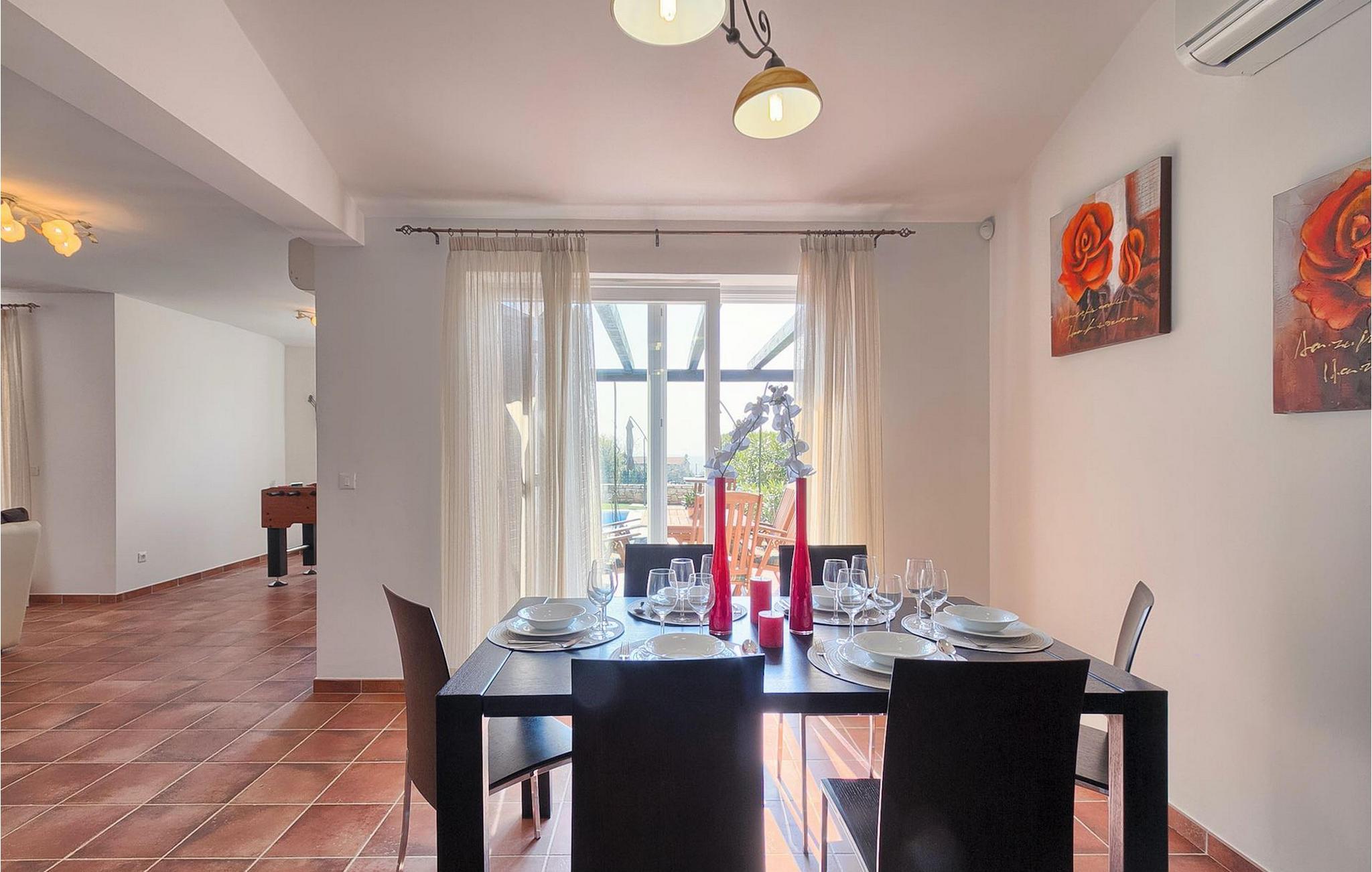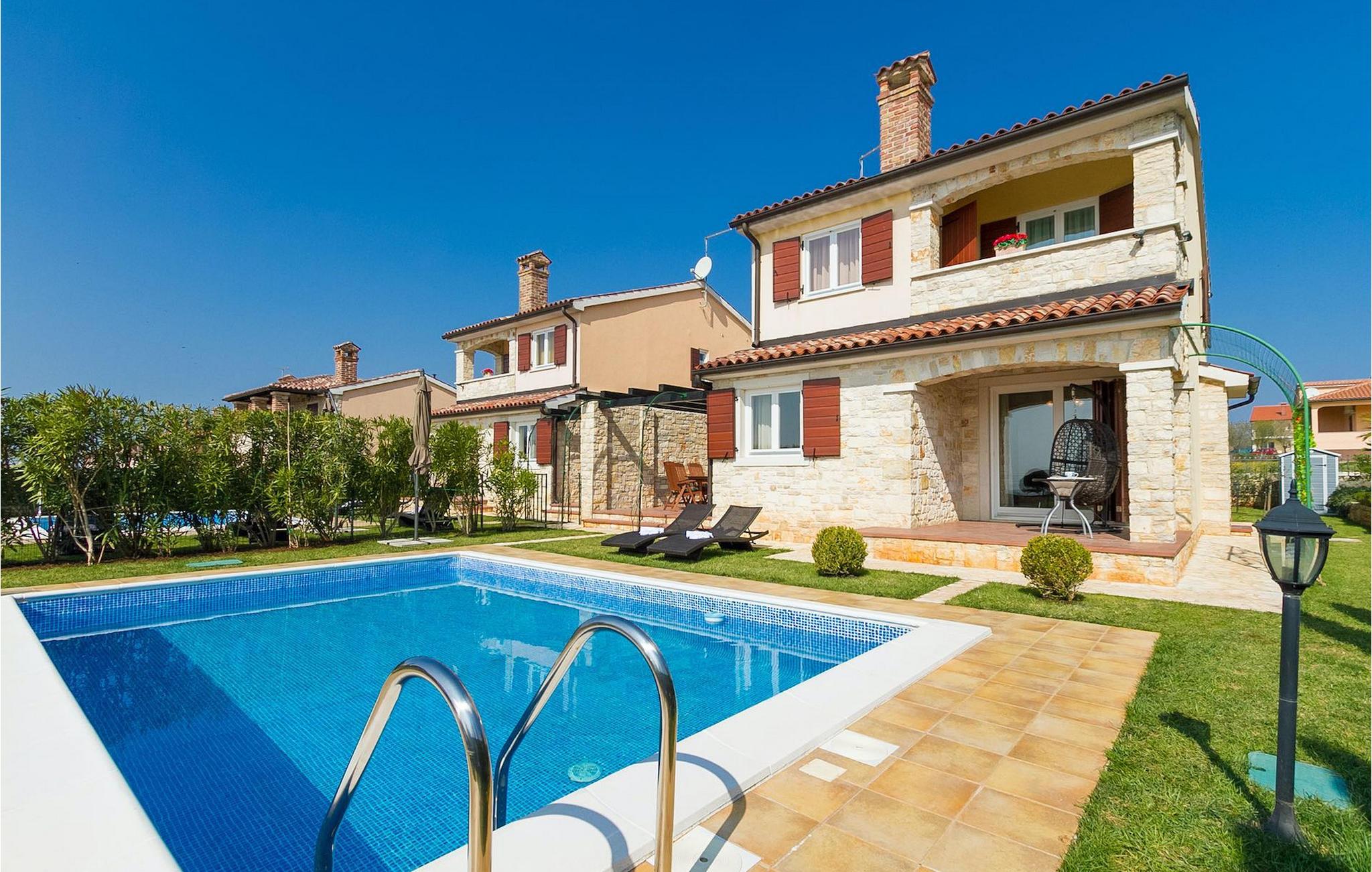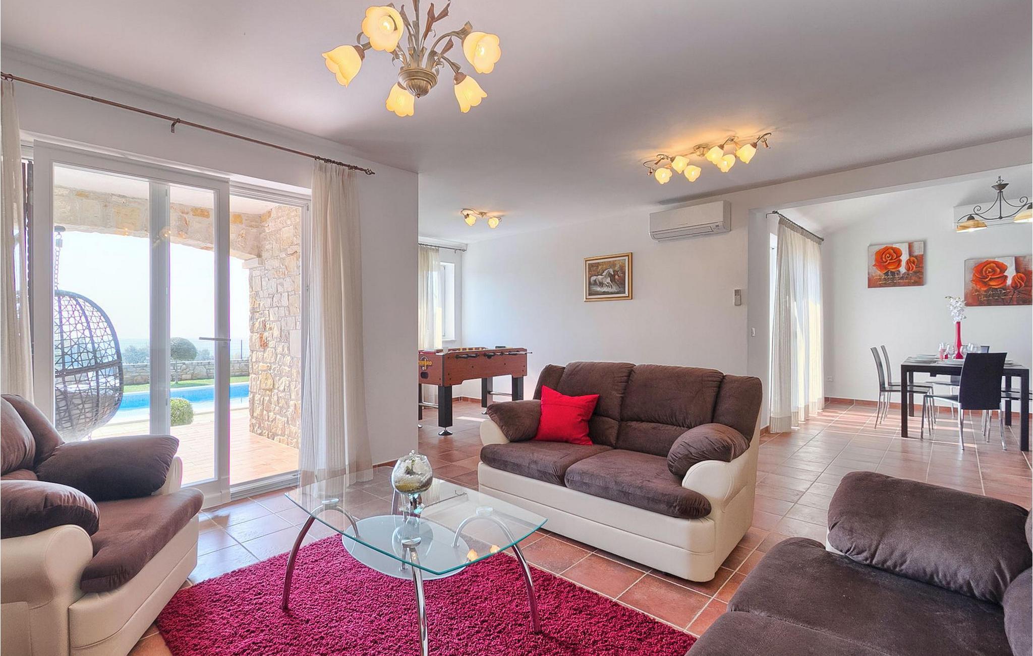 Det private bassenget i hagen vil raskt bli et yndet sted for alle gjester, for her kan man plaske rundt med venner og familie, avkjøle seg og slappe av. Terrassen har også en åpen spiseplass for 10 personer, en koselig, moderne hengestol og en peis. Villa Veras uteområde er perfekt for alle som ønsker å nyte Istrias sol så lenge som muligVillaen ligger i den sjarmerende landsbyen Kastelir. Den ligger i nærheten av Porec og strendene. Porec er det største turistmålet i Istria, og her finner du alle slags aktiviteter. Hvis du er på utkikk etter noe å gjøre, ekstraordinære opplevelser og en rik kulturarv, er Porec med sine 100 års erfaring innen gjestfrihet og topp turisttilbud det rette stedet for deg. Gå ikke glipp av de mange festene som arrangeres i turistbyene og i sentrum av byen. Det finnes strandklubber og kafeer, og etter midnatt kan du nyte den koselige atmosfæren på nattbarene og diskotekene. Her er det bare moro fra skumring til daggry! Bil anbefales. Butikker og restauranter ligger i gangavstand fra villaen. Blant severdighetene er middelalderbyene Motovun og Groznjan, som ligger på bakketoppene, og kystbyene Rovinj og Vrsar.