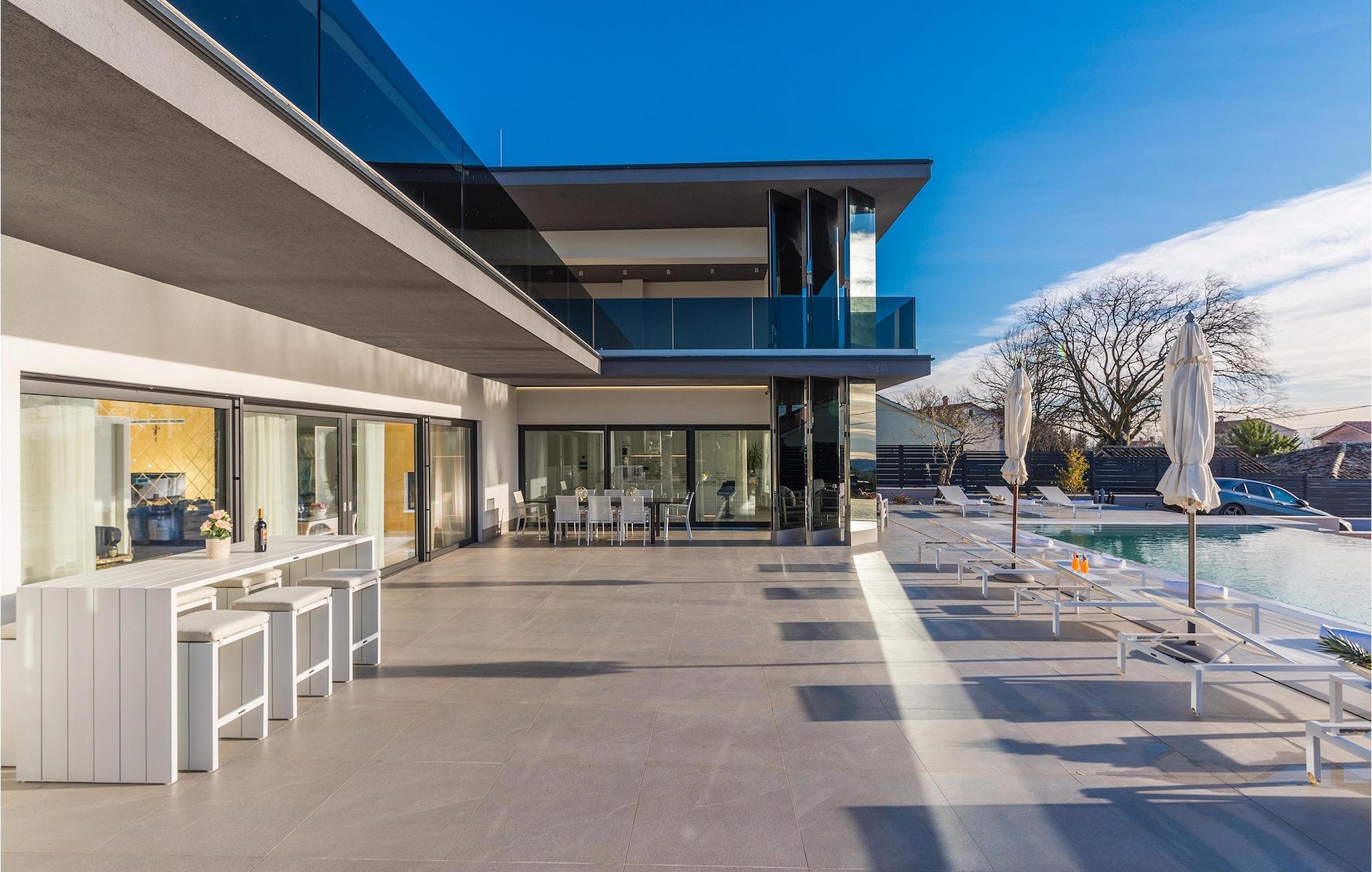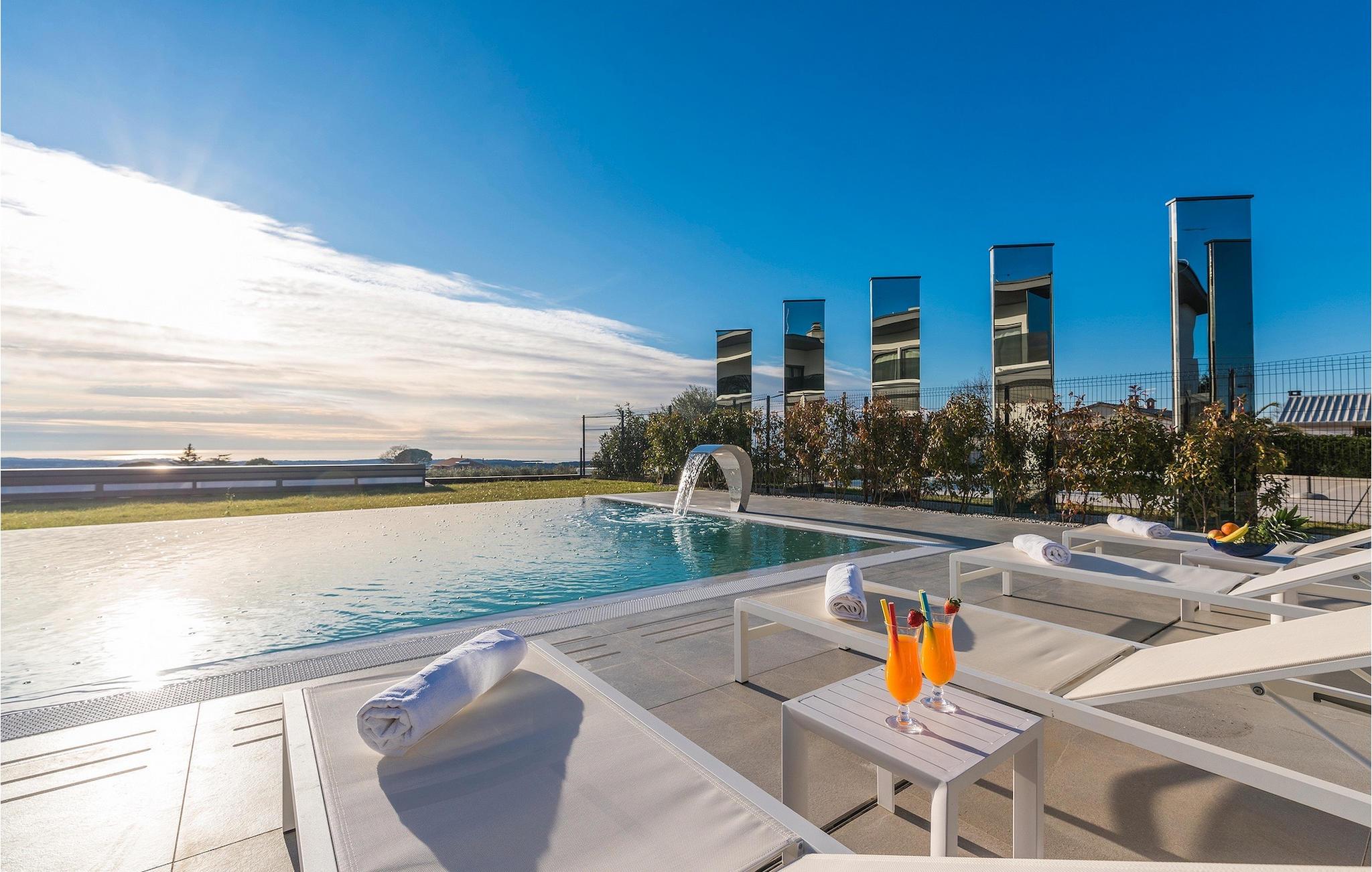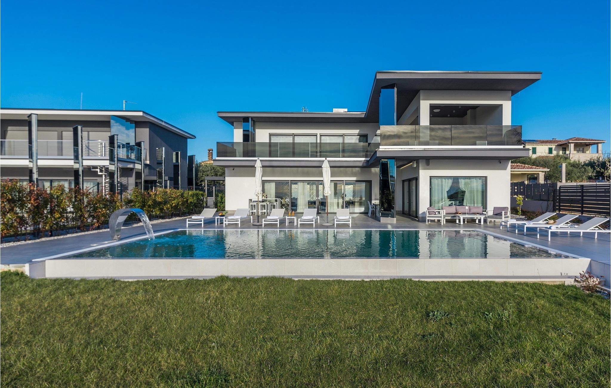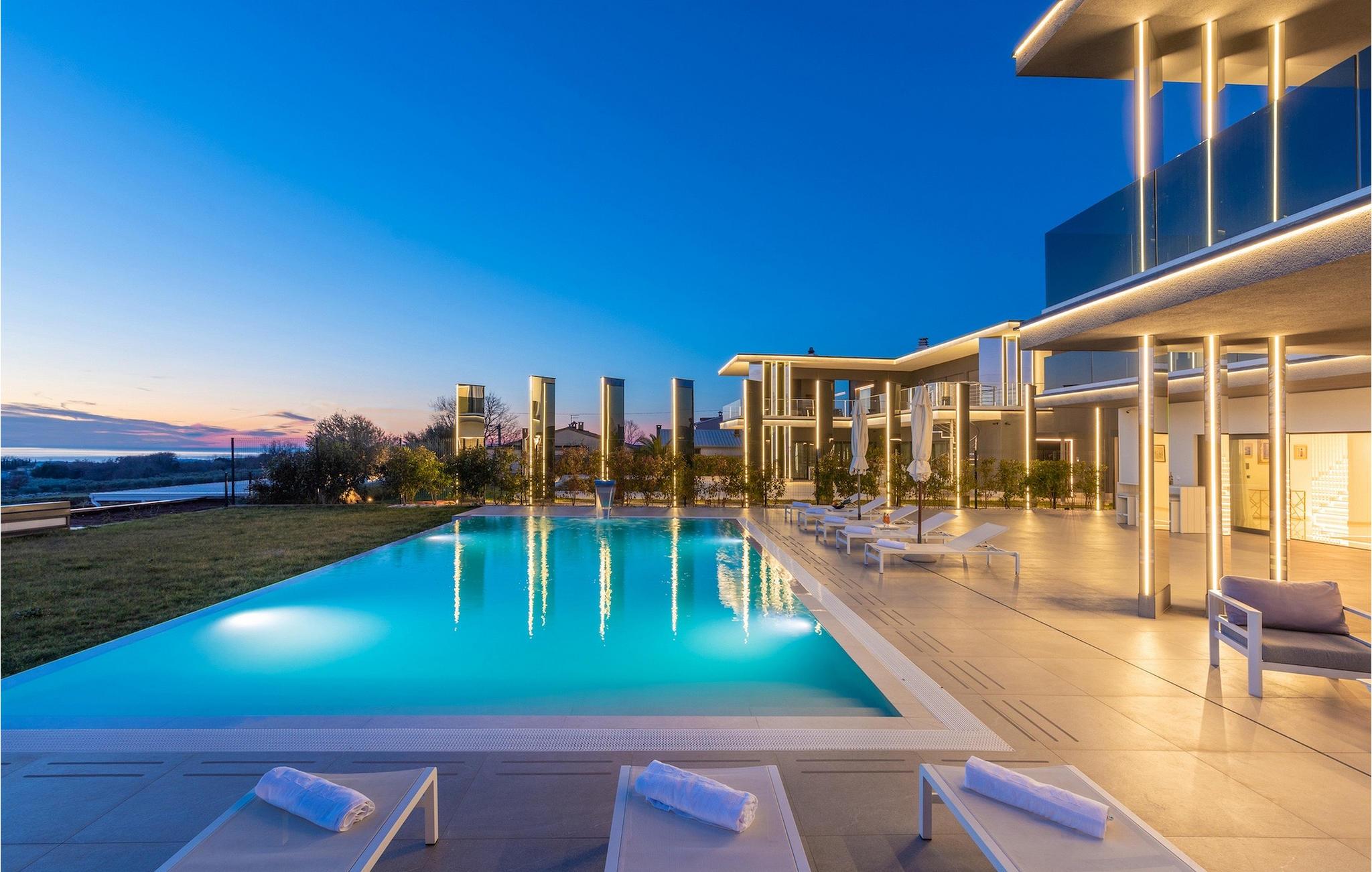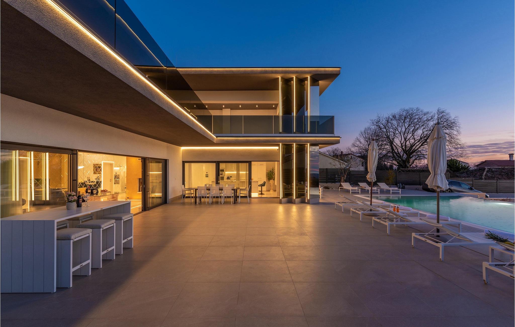 Dette er drømmevillaen du har lett etter så lenge! Designervillaen Sara Kastelir i nærheten av Porec er det perfekte stedet for en luksuriøs ferie med familie og venner! Selv eksteriøret vitner om stil. Et 66 m2 stort basseng er helt klart blikkfanget når du kommer inn på eiendommen. Her kan du forfriske deg i det kjølige vannet på varme sommerdager og nyte tiden sammen med dem du er glad i. Terrassen med salong og spisebord innbyr til mange koselige sommerkvelder. Men den første morgenkaffen med fantastisk utsikt over havet og landskapet er også en helt spesiell opplevelse.