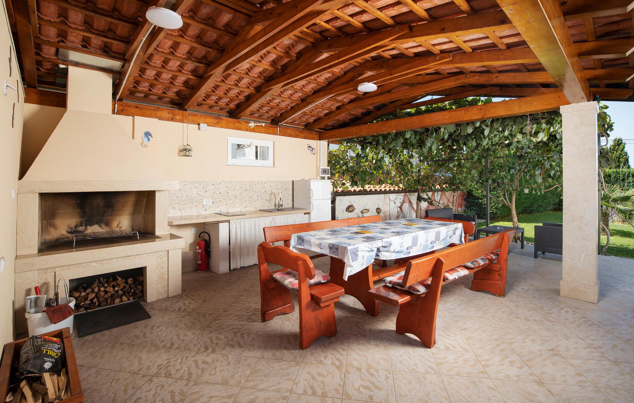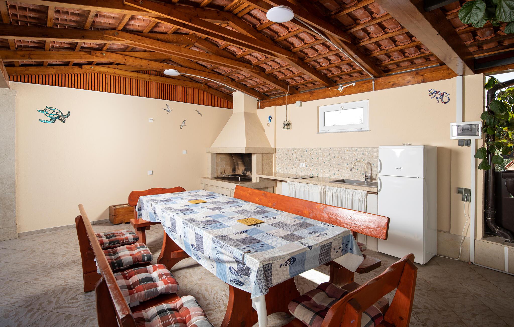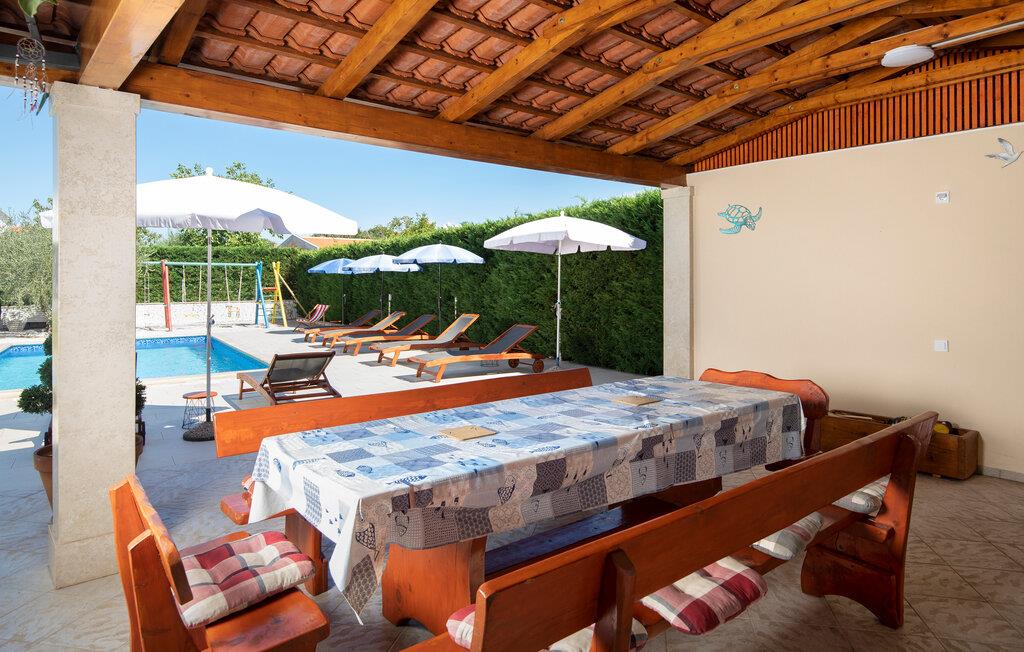 Den utendørs spiseplassen for 12 personer ved bassenget er det perfekte stedet å tilbringe tid med hele familien over en deilig istrisk middag.