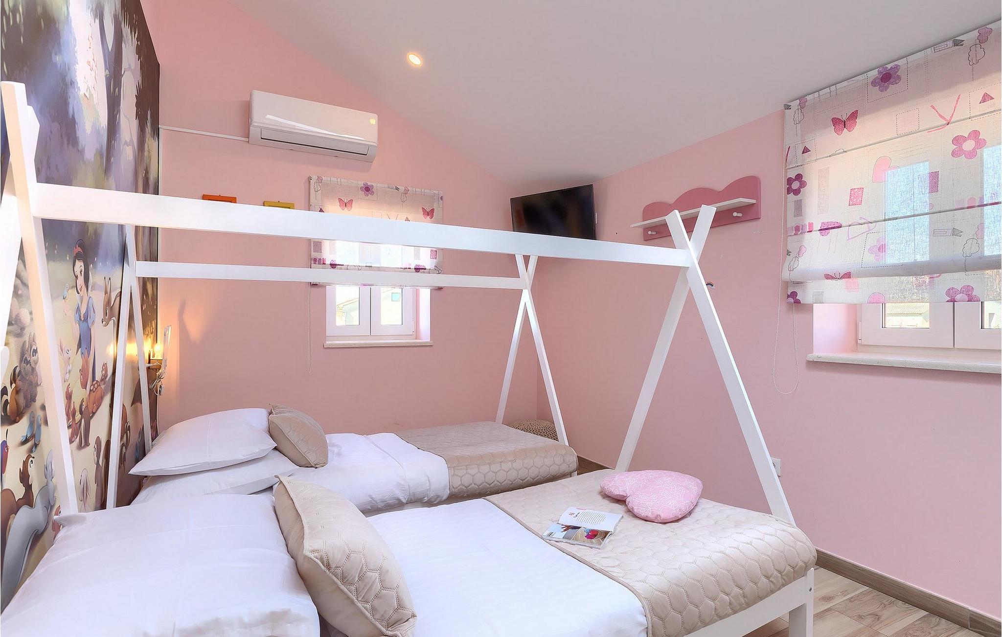 Et helt spesielt høydepunkt er tavernaen i første etasje med åpen peis, kjøkken, bar og et stort trebord for hyggelige kvelder. På samme plan finner du også ditt eget personlige velværerom med badstue og boblebad. Nyt en velfortjent ferie med familien og slapp av fra hverdagen i vakre Villa Anabel.Kastelir er en liten og rolig landsby, bare noen få kilometer utenfor kystbyene Porec og Novigrad. Porec er et viktig turistsenter på vestkysten av Istria. Det er en gammel by fra romertiden med en 2000 år gammel historie full av severdigheter. Eufrasius-basilikaen fra 600-tallet, som er kjent for sine mange bysantinske mosaikker, ligger i den gamle bykjernen. I tillegg gjør mange andre monumenter Porec til et sted som er verdt å utforske. Novigrad er en mindre by som en gang var en fiskerlandsby, men som med årene har utviklet seg til et uimotståelig turistsentrum. Novigrad er imidlertid ikke bare et turistmål, men også en arkitektonisk perle full av enestående historiske severdigheter, rik kulturarv og bevart naturskjønnhet. Novigrad er også en av de beste gourmetdestinasjonene i Istria, der du kan oppleve mange gastronomiske herligheter fra middelhavskjøkkenet.