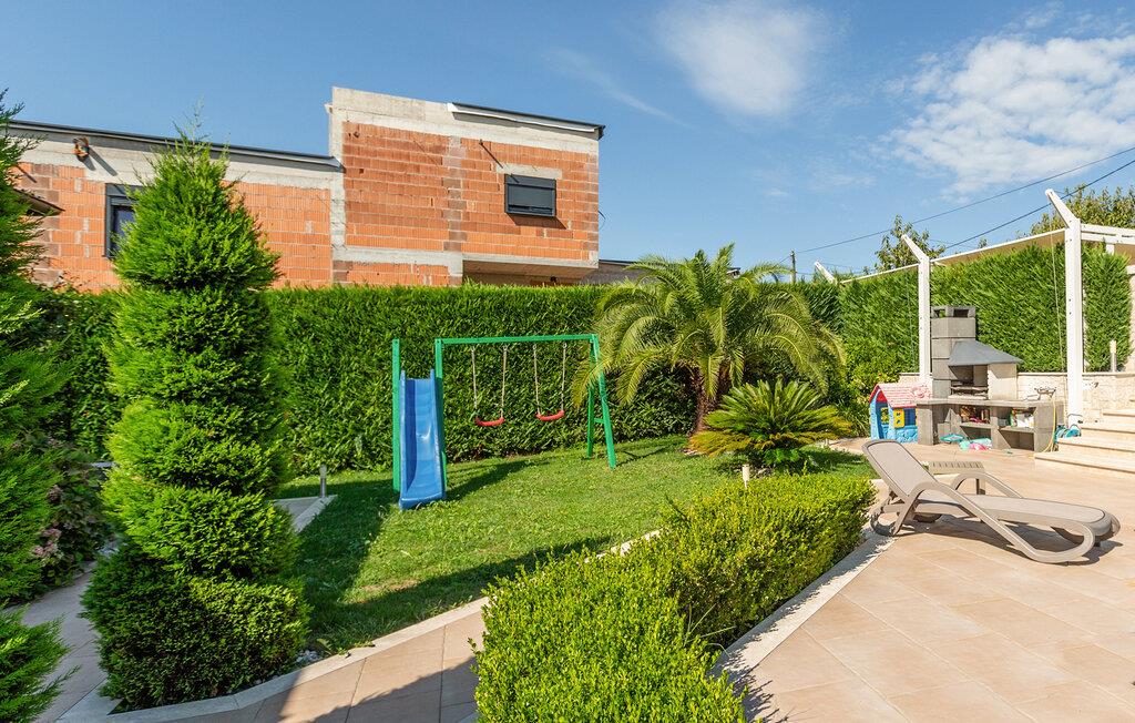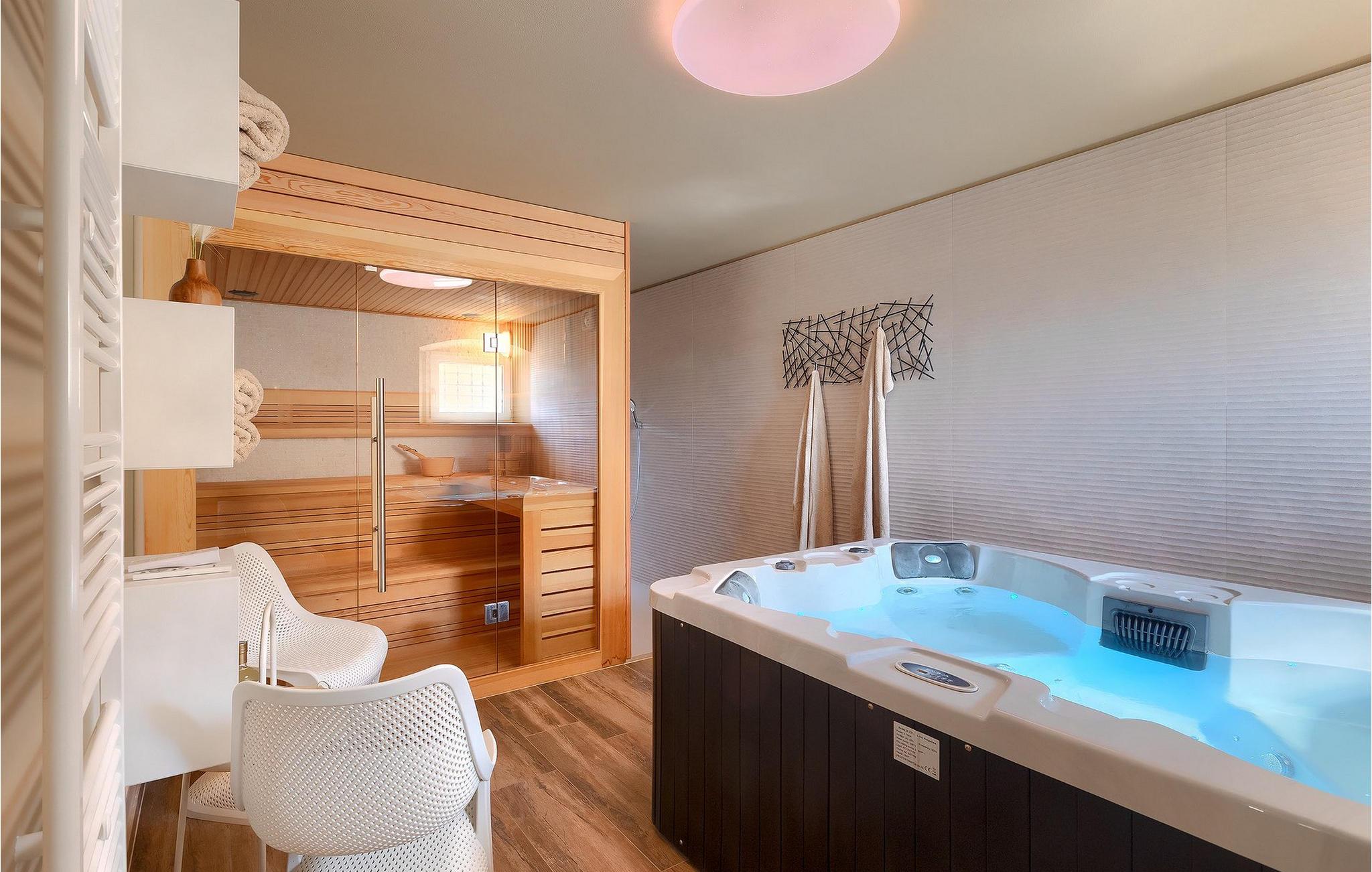 Feriehusets midtpunkt er uten tvil det forfriskende 24 m2 store bassenget i hagen. Her vil du tilbringe mesteparten av tiden din - enten du svømmer i bassenget, soler deg på en av de komfortable solsengene eller griller deilige spesialiteter på kullgrillen. Det er også et lite lekeområde med huske og sklie for de minste.