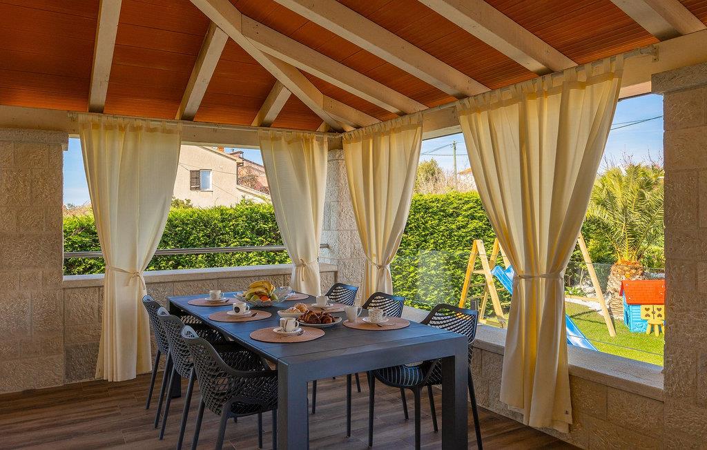 Den overbygde terrassen er også det perfekte stedet å samle familien, nyte varme sommerkvelder sammen og planlegge utflukter i regionen.