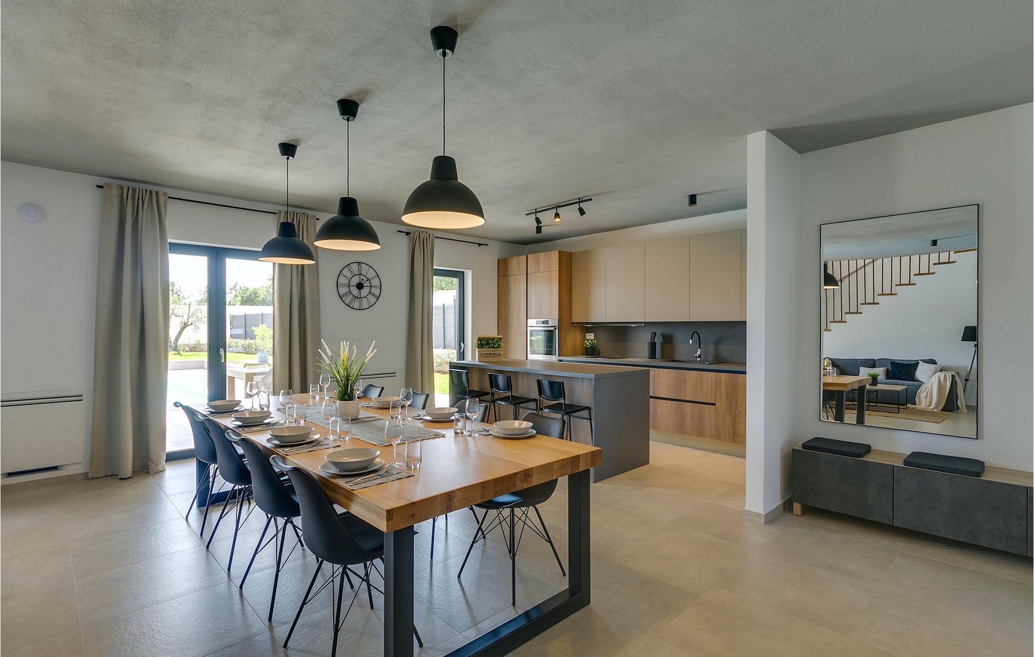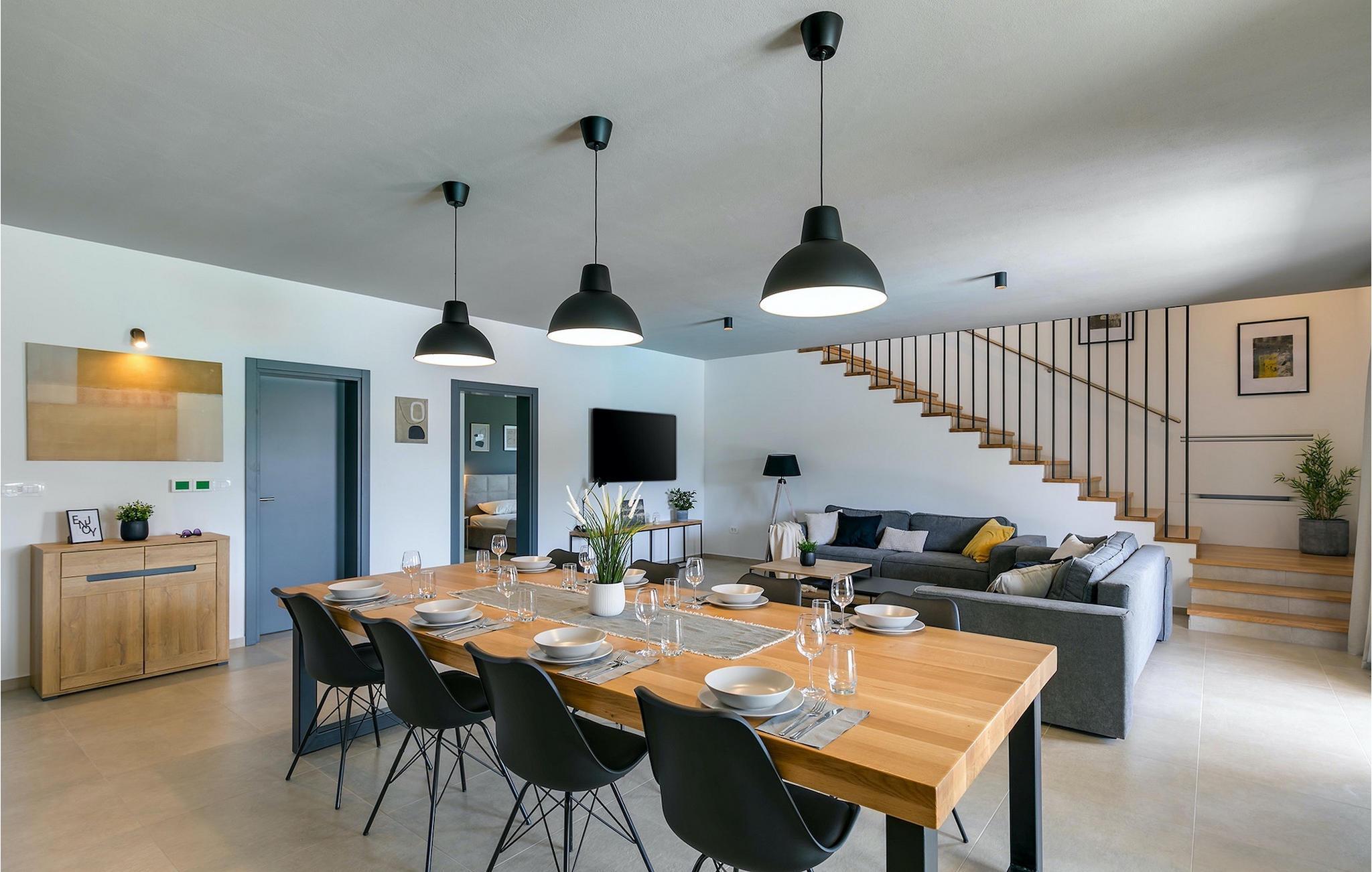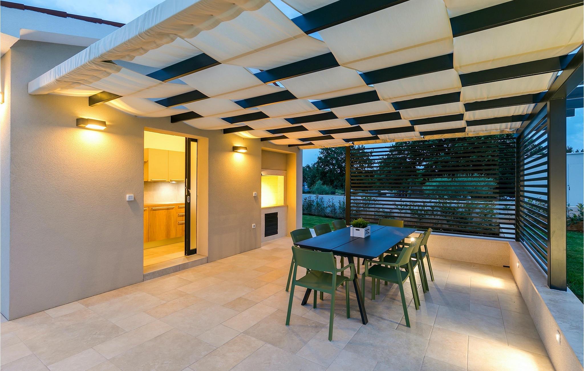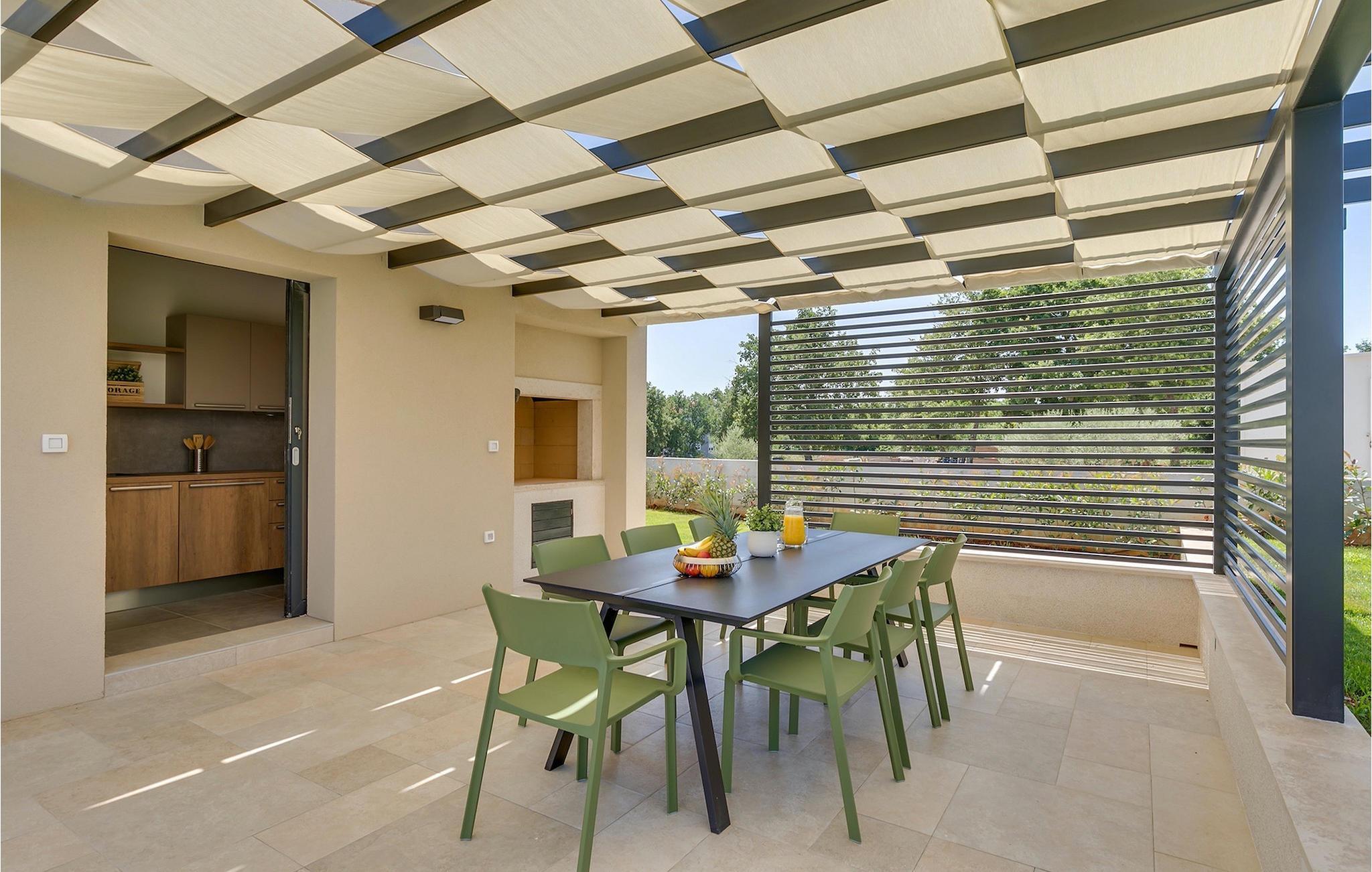 Alle soverommene har klimaanlegg og TV, og tre av soverommene ligger i første etasje. Første etasje har åpen planløsning med en koselig stue og direkte utgang til uteområdet og det store bassenget. Stuen går over i den lyse og omsorgsfullt utformede spisestuen. Her finner du også et svært moderne kjøkken som er fullt utstyrt for alle kulinariske behov. For enkelhets skyld er det et soverom til med eget bad i første etasje. Uteserveringen er perfekt for avslappende stunder mens familie og venner nyter de lokalt inspirerte rettene som tilberedes på sommerkjøkkenet. Det store bassenget sørger for forfriskninger på varme dager. Ikke kast bort tiden - bestill ferien i denne moderne drømmevillaen nå! Villa Amoroso ligger bare en kort kjøretur fra Porec, en av de største kystbyene i Istria. Porec er definitivt mer enn bare sol og sjø - det er en by med en lang og rik historie som går helt tilbake til Romerriket. Når du er i Porec, bør du besøke Eufrasius-basilikaen, et enestående eksempel på tidlig bysantinsk arkitektur i Middelhavsområdet. Basilikaen har stått på UNESCOs verdensarvliste siden 1997. Ta en spasertur gjennom byens smale gater, besøk byens museer og gallerier og nyt den avslappede byatmosfæren. De nærmeste strendene ligger bare 4 km fra villaen, og du kan velge mellom en rekke strender avhengig av hva du foretrekker. Porec byr også på mange restauranter og barer - valget er ditt! Gå ikke glipp av å besøke det indre av Istria, med sine mange middelalderbyer som ligger på åsene, som Motovun, Buzet og Groznjan. Ta en fottur gjennom de mange vingårdene og olivenlundene og nyt Istrias natur.