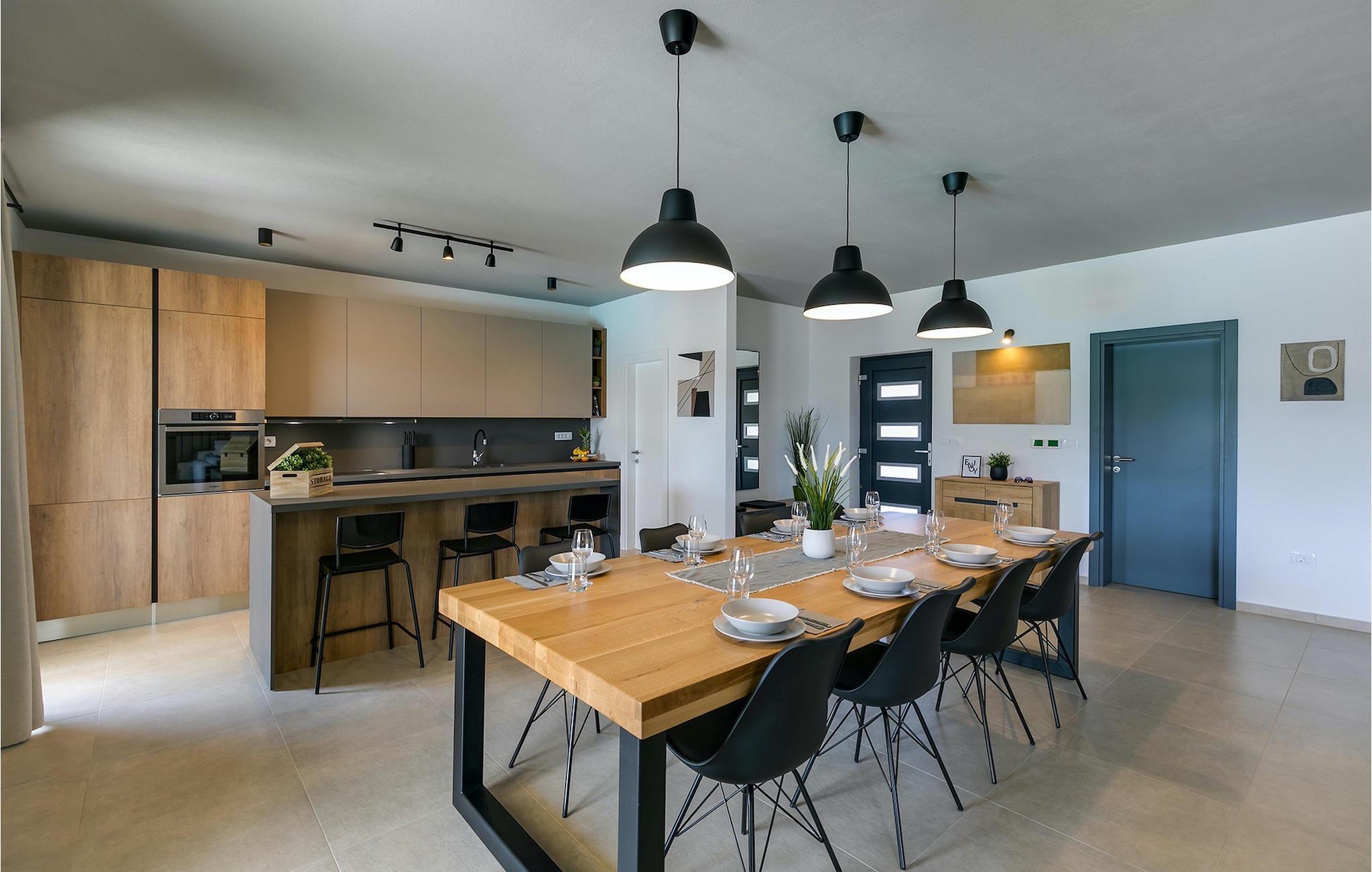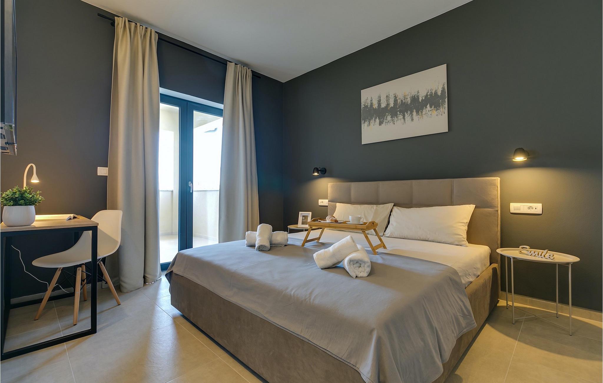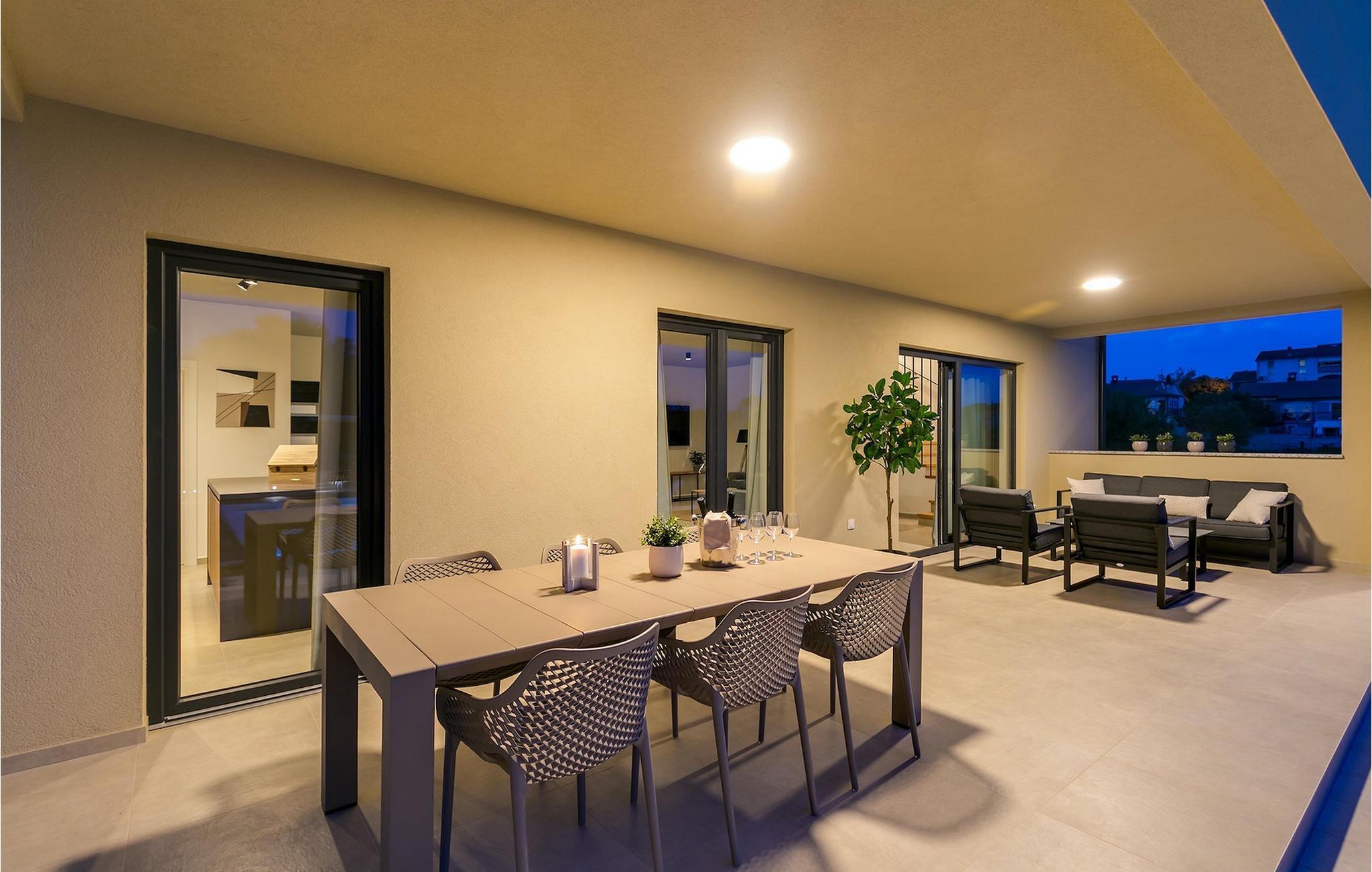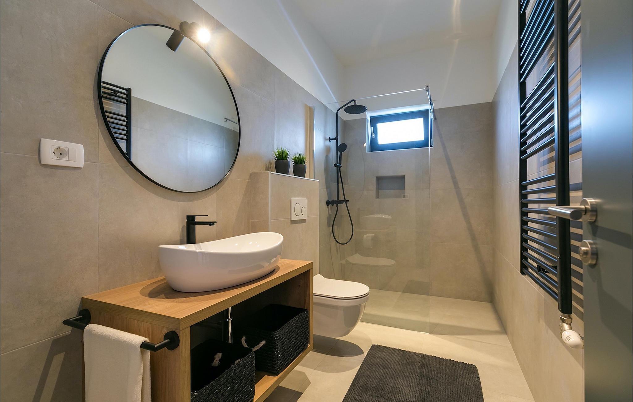 Alle soverommene har klimaanlegg og TV, og tre av soverommene ligger i første etasje. Første etasje har åpen planløsning med en koselig stue og direkte utgang til uteområdet og det store bassenget. Stuen går over i den lyse og omsorgsfullt utformede spisestuen. Her finner du også et svært moderne kjøkken som er fullt utstyrt for alle kulinariske behov. For enkelhets skyld er det et soverom til med eget bad i første etasje. Uteserveringen er perfekt for avslappende stunder mens familie og venner nyter de lokalt inspirerte rettene som tilberedes på sommerkjøkkenet. Det store bassenget sørger for forfriskninger på varme dager. Ikke kast bort tiden - bestill ferien i denne moderne drømmevillaen nå! Villa Amoroso ligger bare en kort kjøretur fra Porec, en av de største kystbyene i Istria. Porec er definitivt mer enn bare sol og sjø - det er en by med en lang og rik historie som går helt tilbake til Romerriket. Når du er i Porec, bør du besøke Eufrasius-basilikaen, et enestående eksempel på tidlig bysantinsk arkitektur i Middelhavsområdet. Basilikaen har stått på UNESCOs verdensarvliste siden 1997. Ta en spasertur gjennom byens smale gater, besøk byens museer og gallerier og nyt den avslappede byatmosfæren. De nærmeste strendene ligger bare 4 km fra villaen, og du kan velge mellom en rekke strender avhengig av hva du foretrekker. Porec byr også på mange restauranter og barer - valget er ditt! Gå ikke glipp av å besøke det indre av Istria, med sine mange middelalderbyer som ligger på åsene, som Motovun, Buzet og Groznjan. Ta en fottur gjennom de mange vingårdene og olivenlundene og nyt Istrias natur.