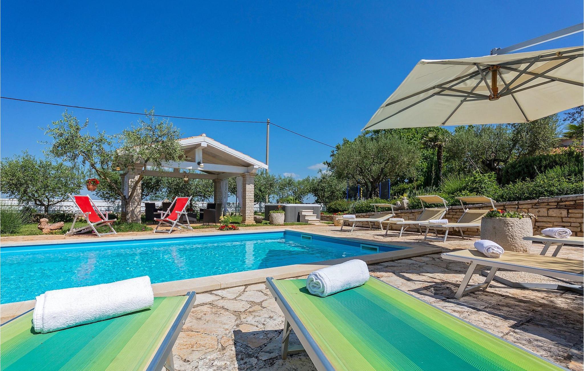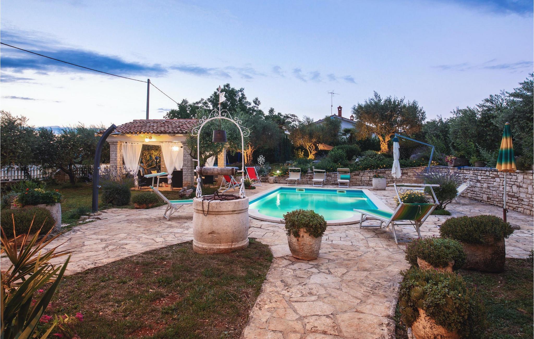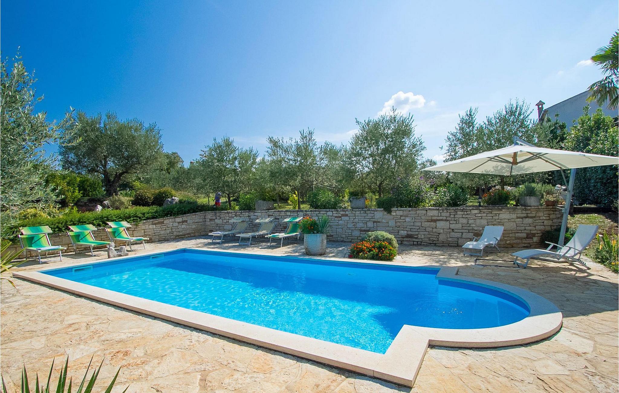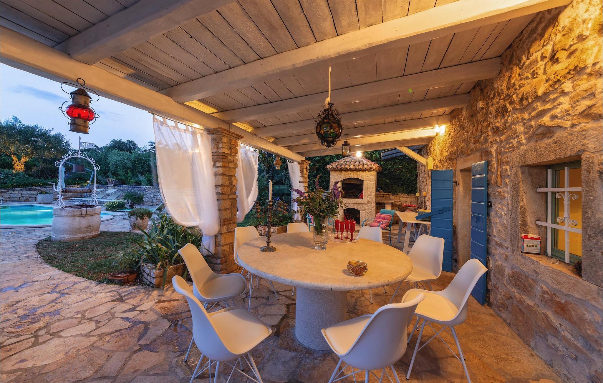 Den vakkert vedlikeholdte hagen med basseng er absolutt et av plusspoengene ved denne villaen. Den romslige terrassen er det perfekte stedet å nyte det istriske klimaet, slappe av i det innbydende utendørs boblebadet, lese en bok og bare nyte en velfortjent ferie.