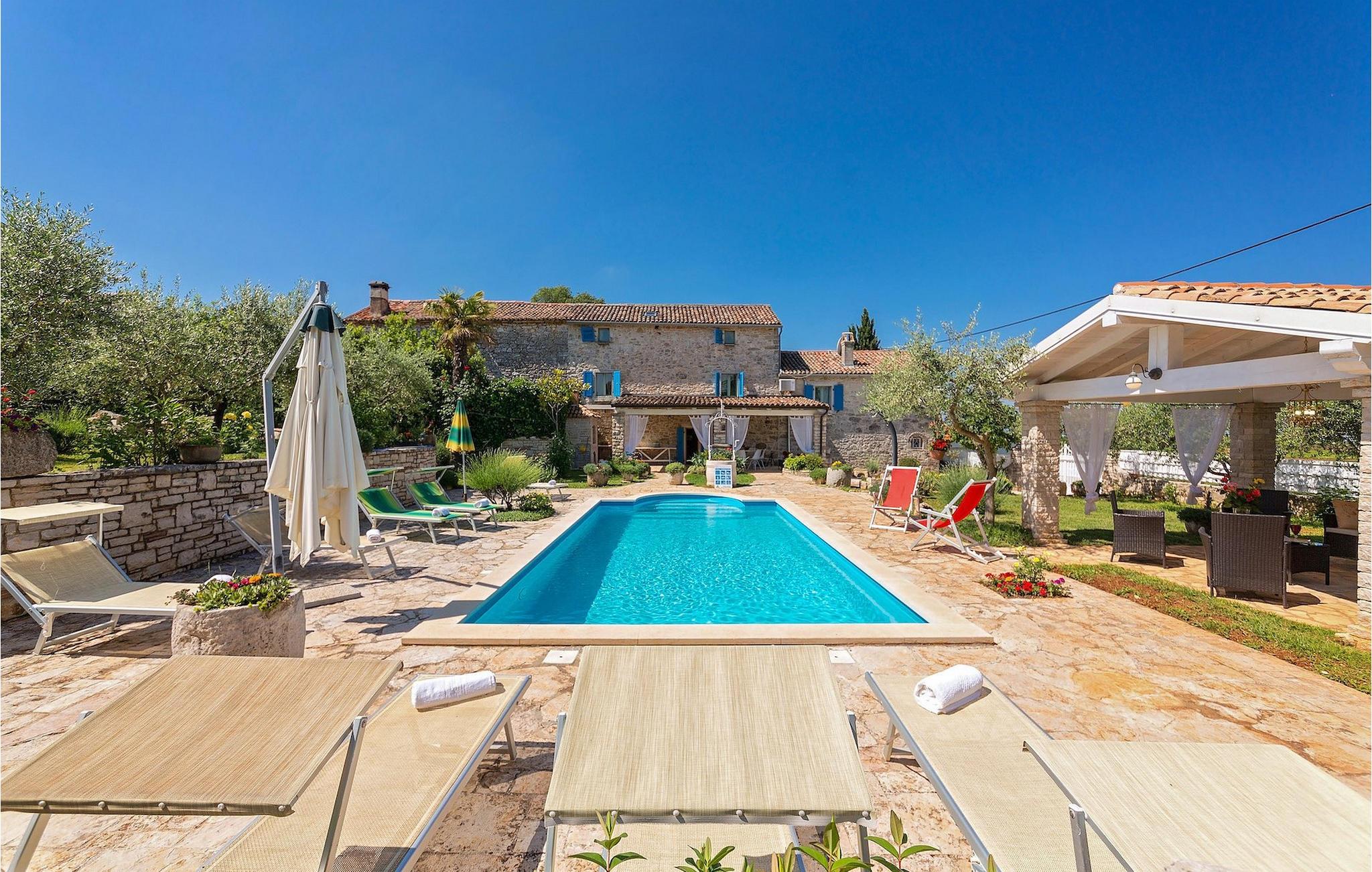 Den fantastiske Villa Oleandra med hage, badstue og basseng har plass til opptil 10 personer og er det perfekte valget for en avslappende ferie. Dette gamle, typiske istriske steinhuset sentralt i Istria vil fortrylle deg ved første øyekast.
