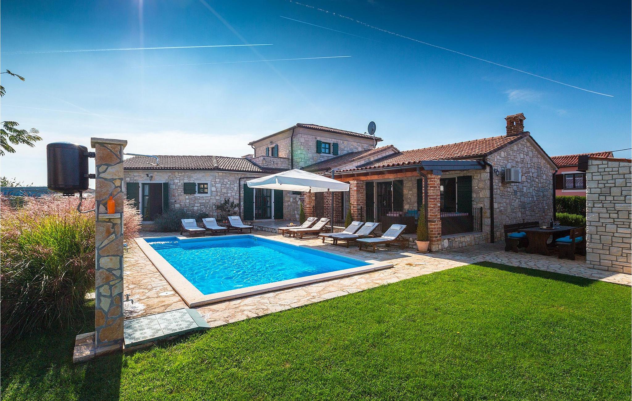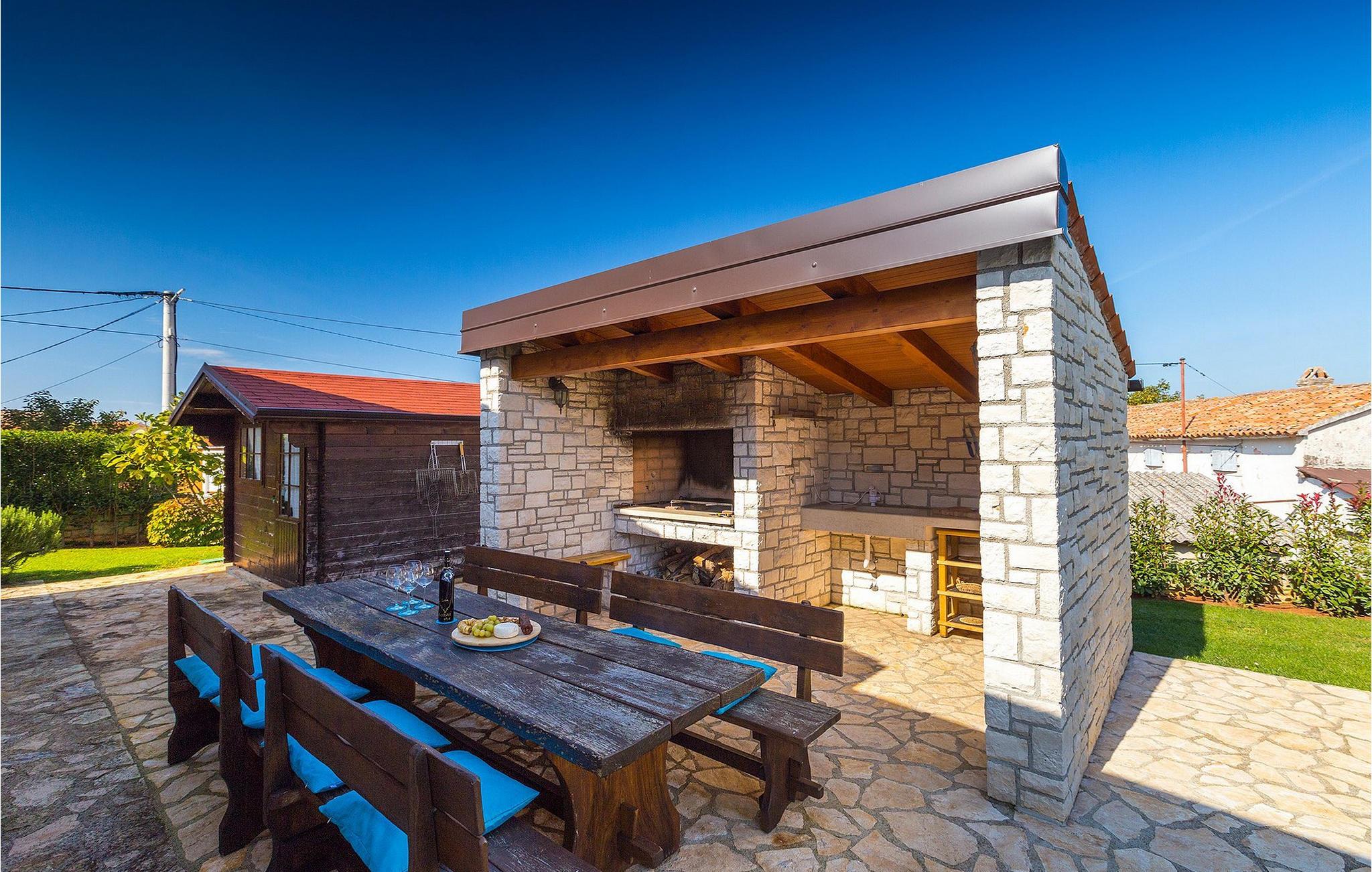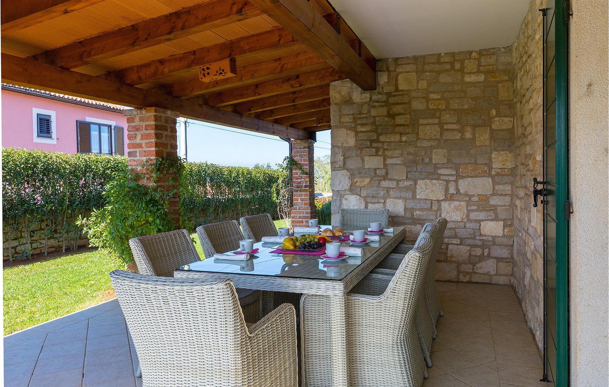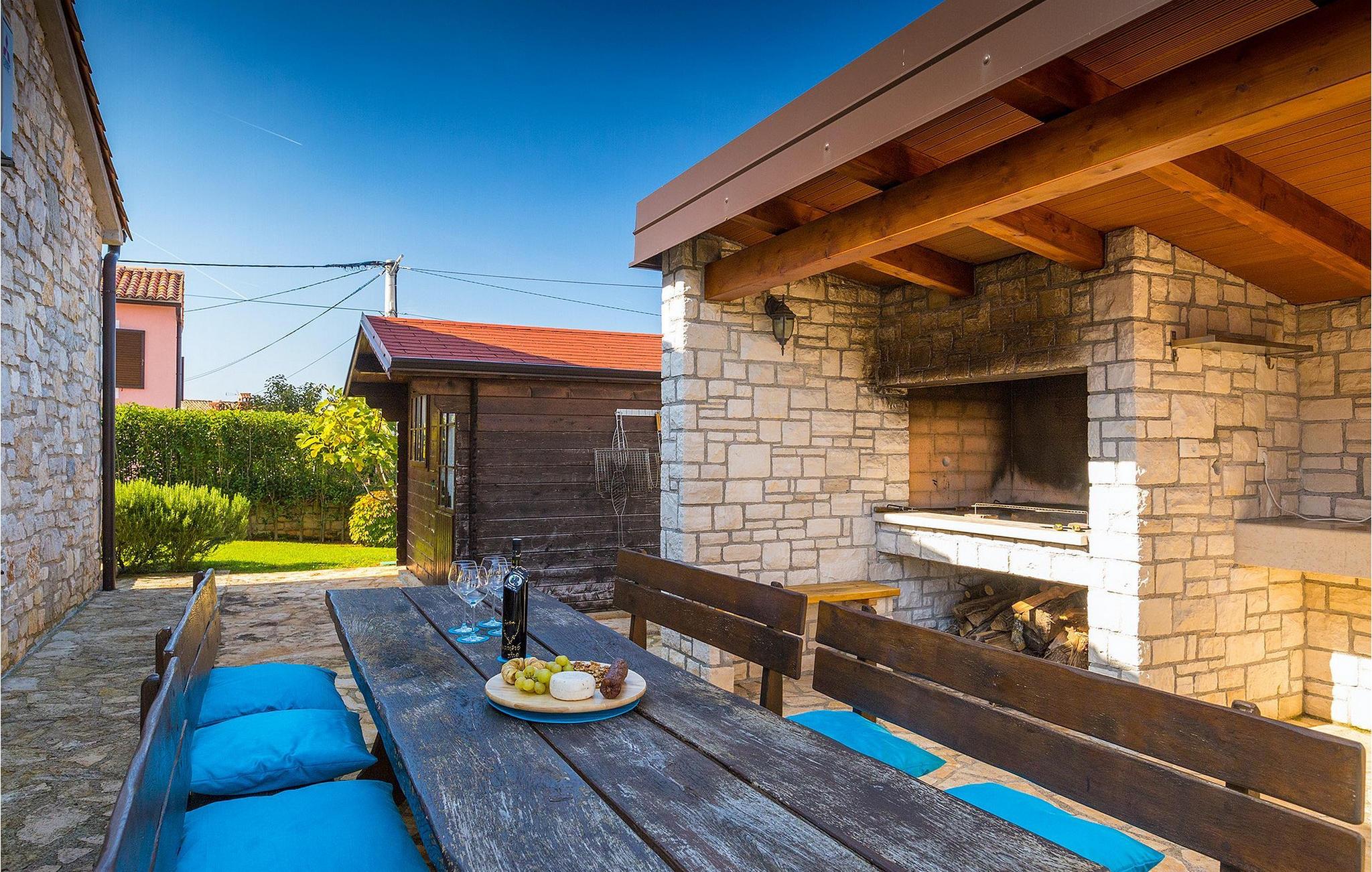 Villa Una er et vakkert, rustikt istrisk steinhus med privat basseng som ligger i vakre Istria sentrum. Huset har alle nødvendige fasiliteter for en hyggelig og avslappende ferie. Villa Una har plass til 4 koselige soverom. Tre av dem ligger i første etasje, hvorav ett har egen inngang, og ett soverom ligger i andre etasje med egen balkong. I første etasje finner du også et fullt utstyrt kjøkken og en stue med spiseplass. Utenfor kan du slappe av i den overbygde salongen med utsikt over bassenget, og i den ekstra spiseplassen med grill kan du nyte et velsmakende måltid sammen med familien. Hagen egner seg godt for barn, men innbyr også til ulike sportsaktiviteter som badminton. Enten du velger å tilbringe ferien med å bade og sole deg ved det innbydende bassenget eller samles rundt den koselige og sjarmerende peisen, vil Villa Una ikke skuffe deg. Baldasi er en liten landsby bare en kort kjøretur unna den idylliske middelalderlandsbyen Vizinada, som ligger tilbaketrukket, men likevel integrert i landsbyens liv og røre. Hvis du besøker Vizinada, kan du nyte den vakre utsikten fra høyden med utsikt over Mirna-dalen og Istrias blå og grønne farger. Bil anbefales. De vakre strendene i Porec-området ligger bare en kort kjøretur unna.