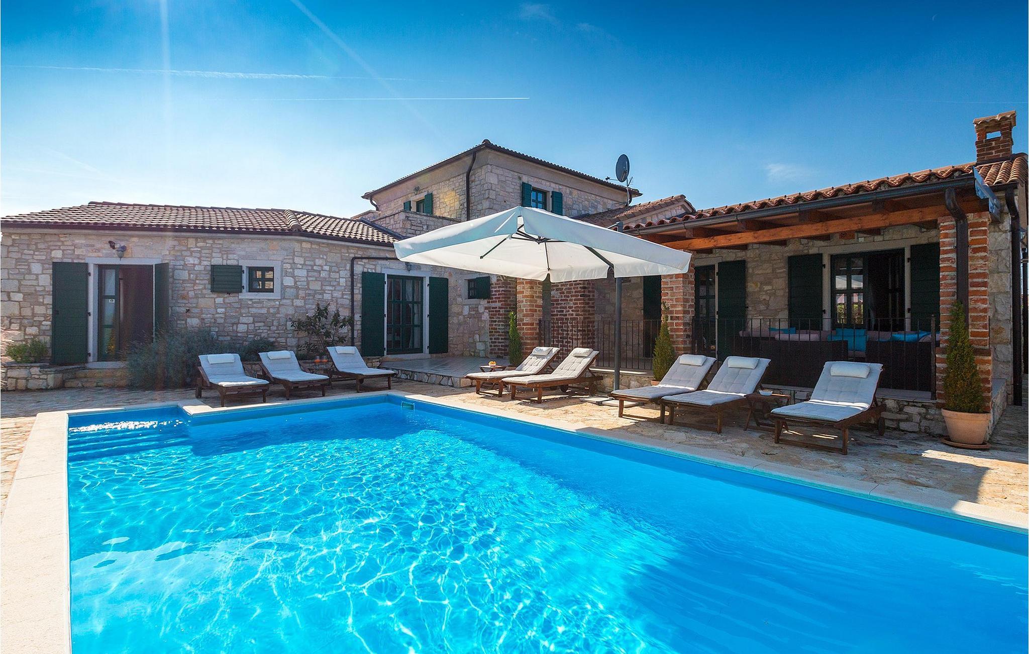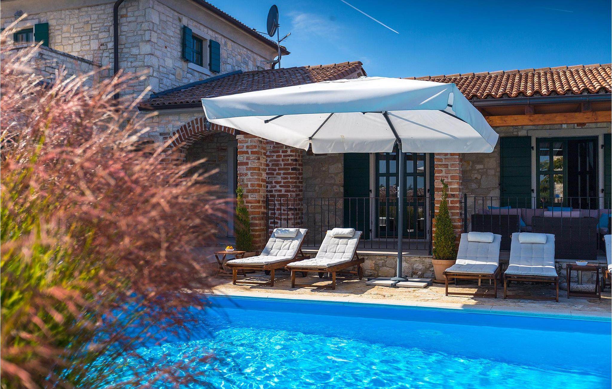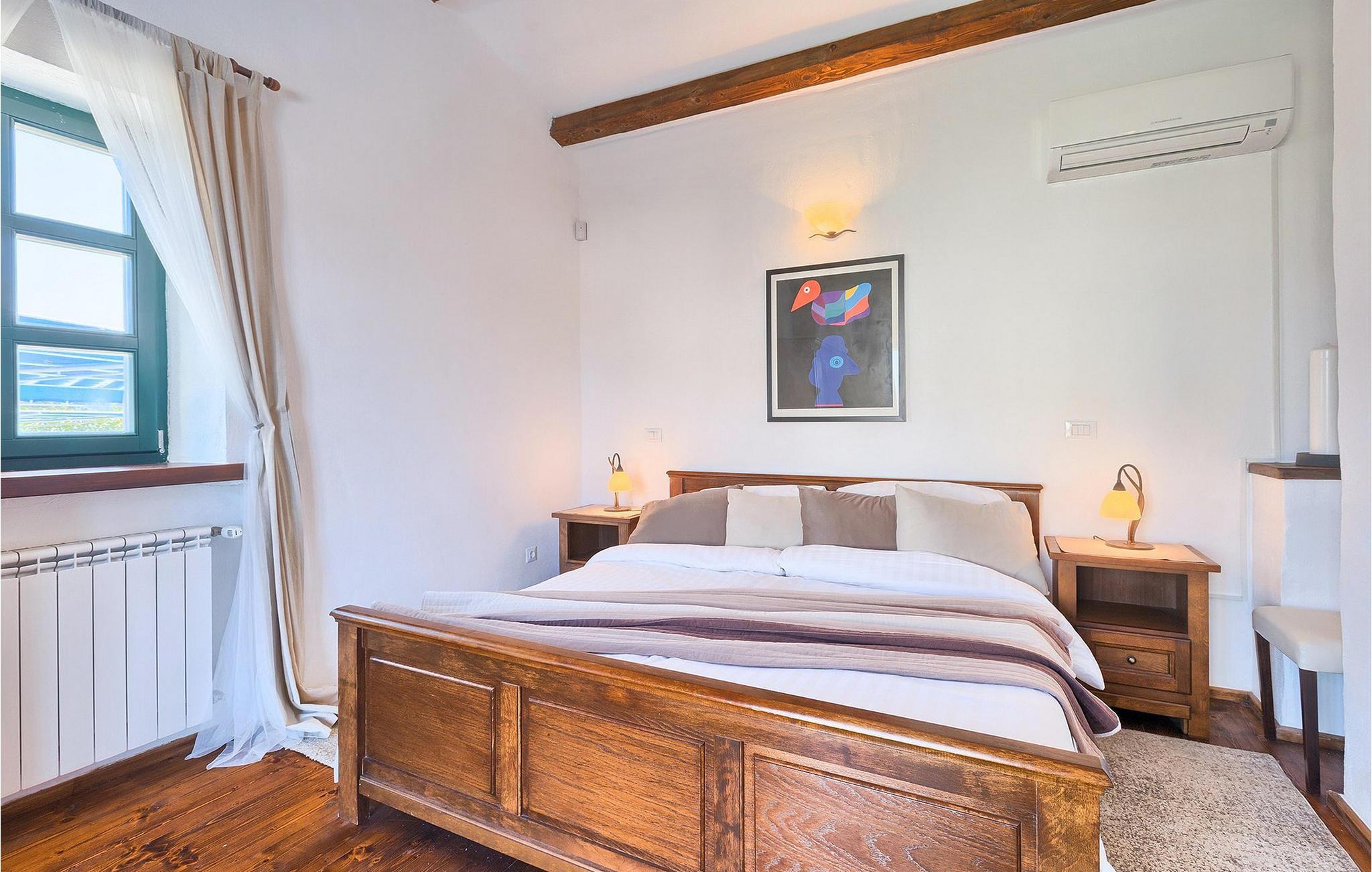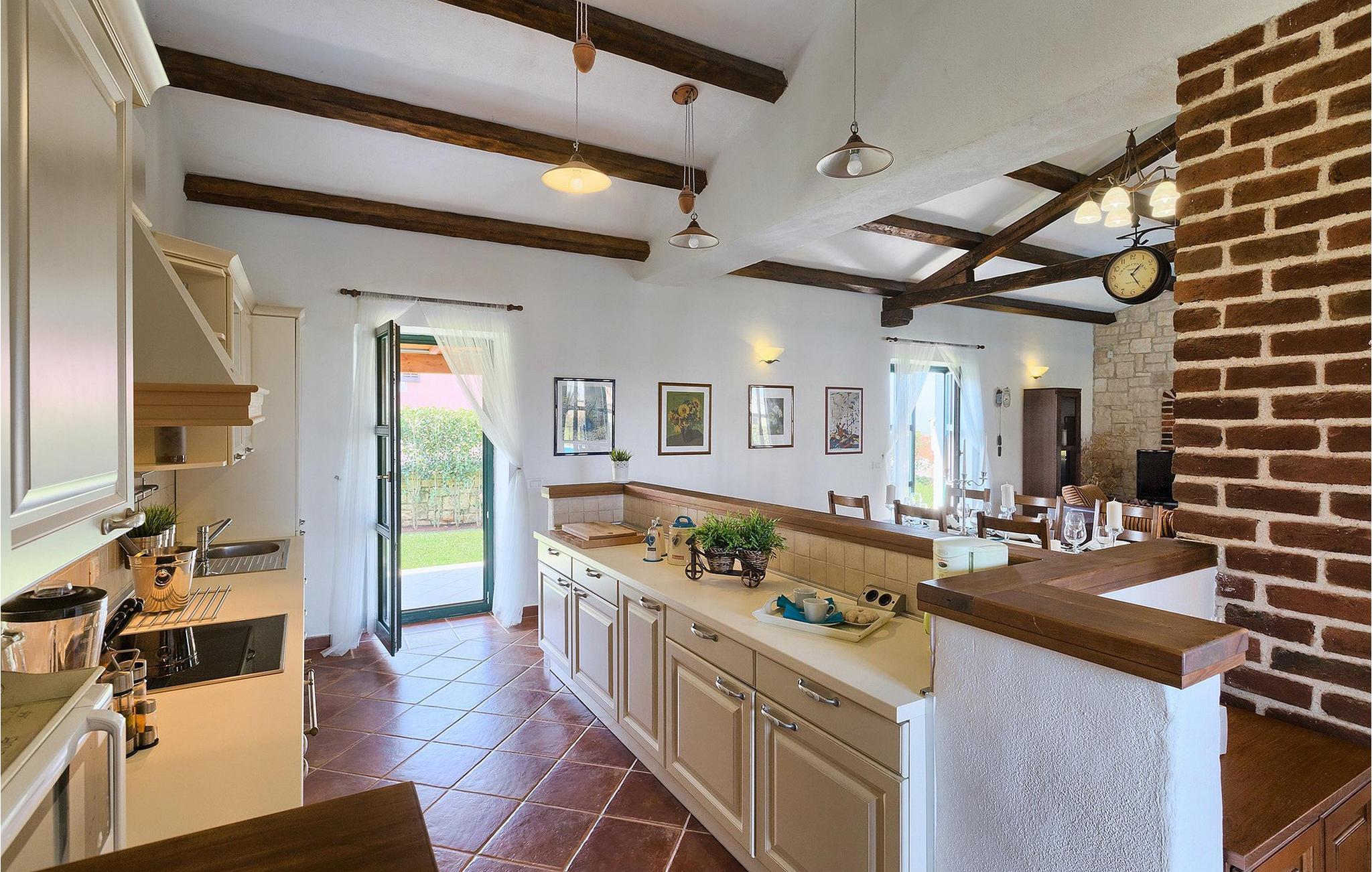 Villa Una er et vakkert, rustikt istrisk steinhus med privat basseng som ligger i vakre Istria sentrum. Huset har alle nødvendige fasiliteter for en hyggelig og avslappende ferie. Villa Una har plass til 4 koselige soverom. Tre av dem ligger i første etasje, hvorav ett har egen inngang, og ett soverom ligger i andre etasje med egen balkong. I første etasje finner du også et fullt utstyrt kjøkken og en stue med spiseplass. Utenfor kan du slappe av i den overbygde salongen med utsikt over bassenget, og i den ekstra spiseplassen med grill kan du nyte et velsmakende måltid sammen med familien. Hagen egner seg godt for barn, men innbyr også til ulike sportsaktiviteter som badminton. Enten du velger å tilbringe ferien med å bade og sole deg ved det innbydende bassenget eller samles rundt den koselige og sjarmerende peisen, vil Villa Una ikke skuffe deg. Baldasi er en liten landsby bare en kort kjøretur unna den idylliske middelalderlandsbyen Vizinada, som ligger tilbaketrukket, men likevel integrert i landsbyens liv og røre. Hvis du besøker Vizinada, kan du nyte den vakre utsikten fra høyden med utsikt over Mirna-dalen og Istrias blå og grønne farger. Bil anbefales. De vakre strendene i Porec-området ligger bare en kort kjøretur unna.