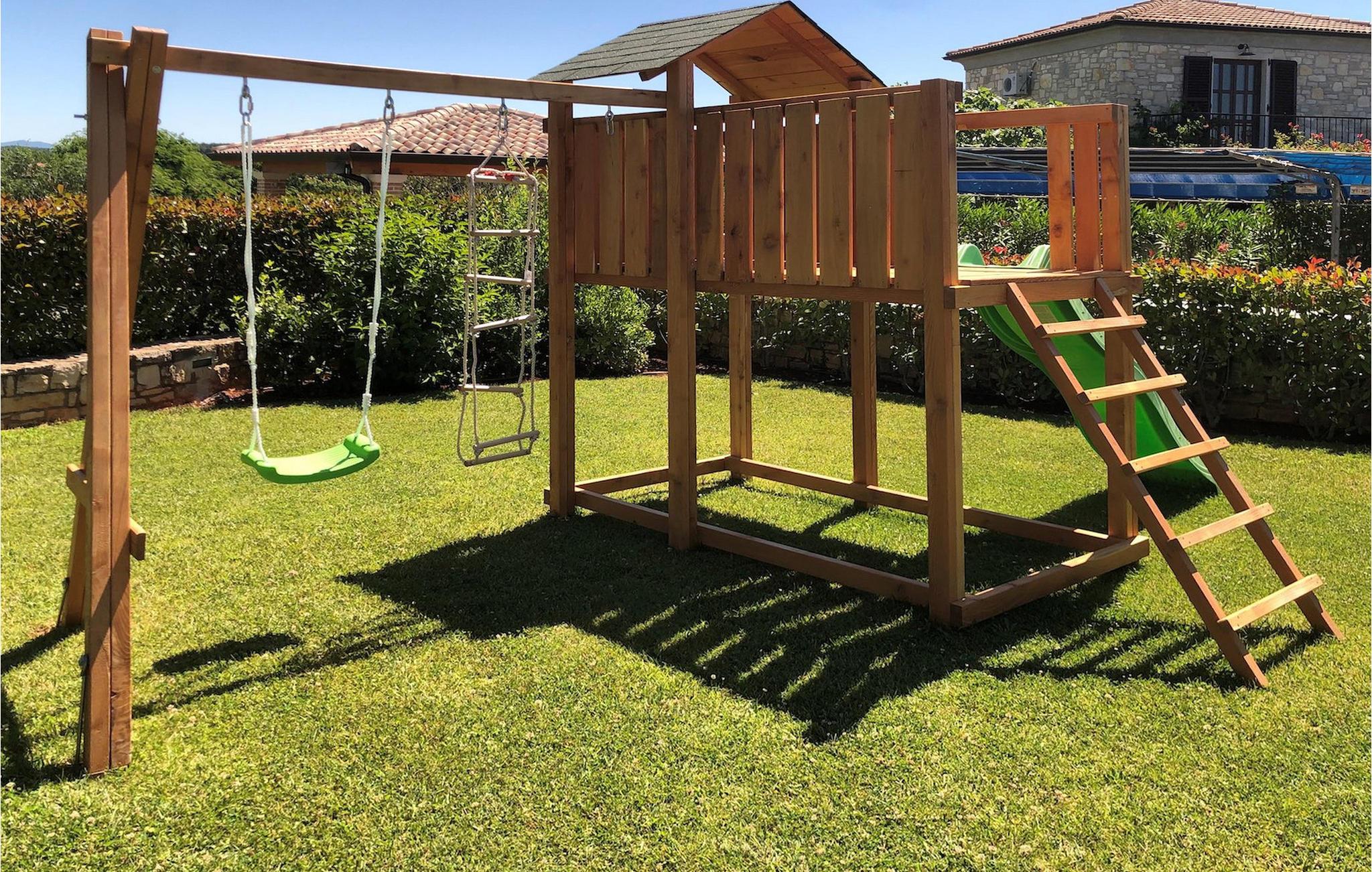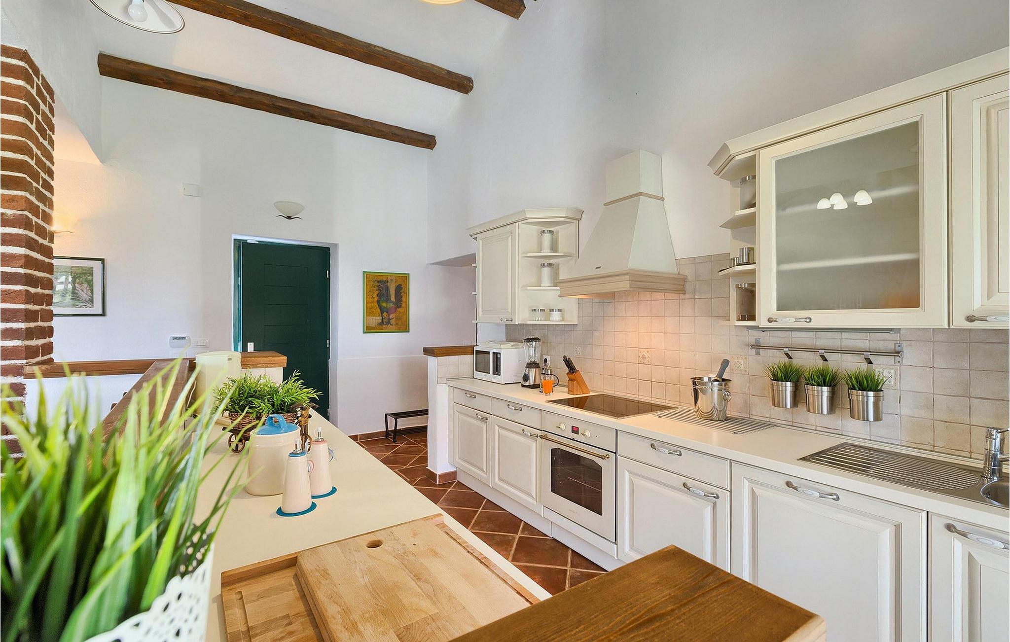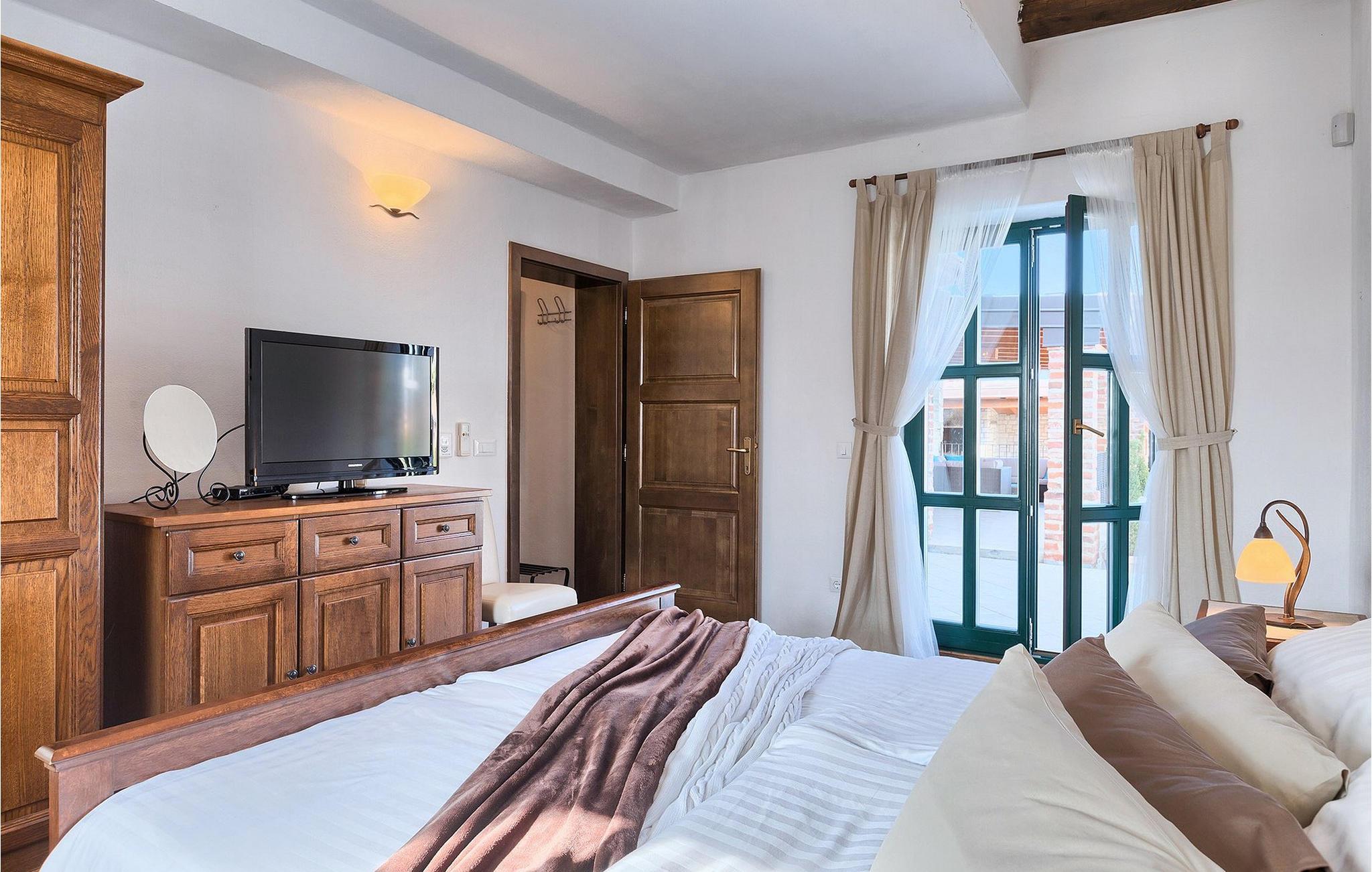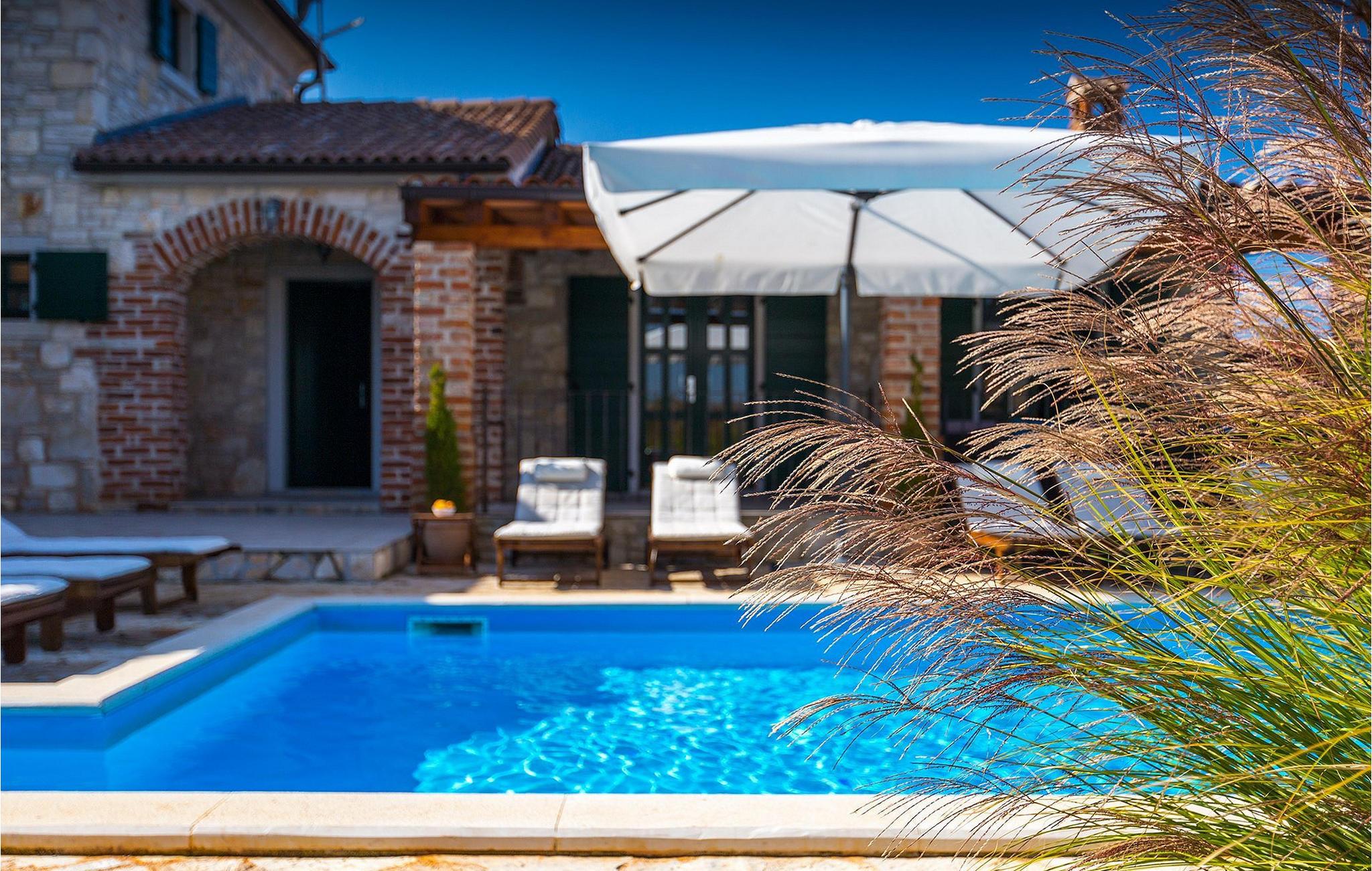Villa Una er et vakkert, rustikt istrisk steinhus med privat basseng som ligger i vakre Istria sentrum. Huset har alle nødvendige fasiliteter for en hyggelig og avslappende ferie. Villa Una har plass til 4 koselige soverom. Tre av dem ligger i første etasje, hvorav ett har egen inngang, og ett soverom ligger i andre etasje med egen balkong. I første etasje finner du også et fullt utstyrt kjøkken og en stue med spiseplass. Utenfor kan du slappe av i den overbygde salongen med utsikt over bassenget, og i den ekstra spiseplassen med grill kan du nyte et velsmakende måltid sammen med familien. Hagen egner seg godt for barn, men innbyr også til ulike sportsaktiviteter som badminton. Enten du velger å tilbringe ferien med å bade og sole deg ved det innbydende bassenget eller samles rundt den koselige og sjarmerende peisen, vil Villa Una ikke skuffe deg. Baldasi er en liten landsby bare en kort kjøretur unna den idylliske middelalderlandsbyen Vizinada, som ligger tilbaketrukket, men likevel integrert i landsbyens liv og røre. Hvis du besøker Vizinada, kan du nyte den vakre utsikten fra høyden med utsikt over Mirna-dalen og Istrias blå og grønne farger. Bil anbefales. De vakre strendene i Porec-området ligger bare en kort kjøretur unna.