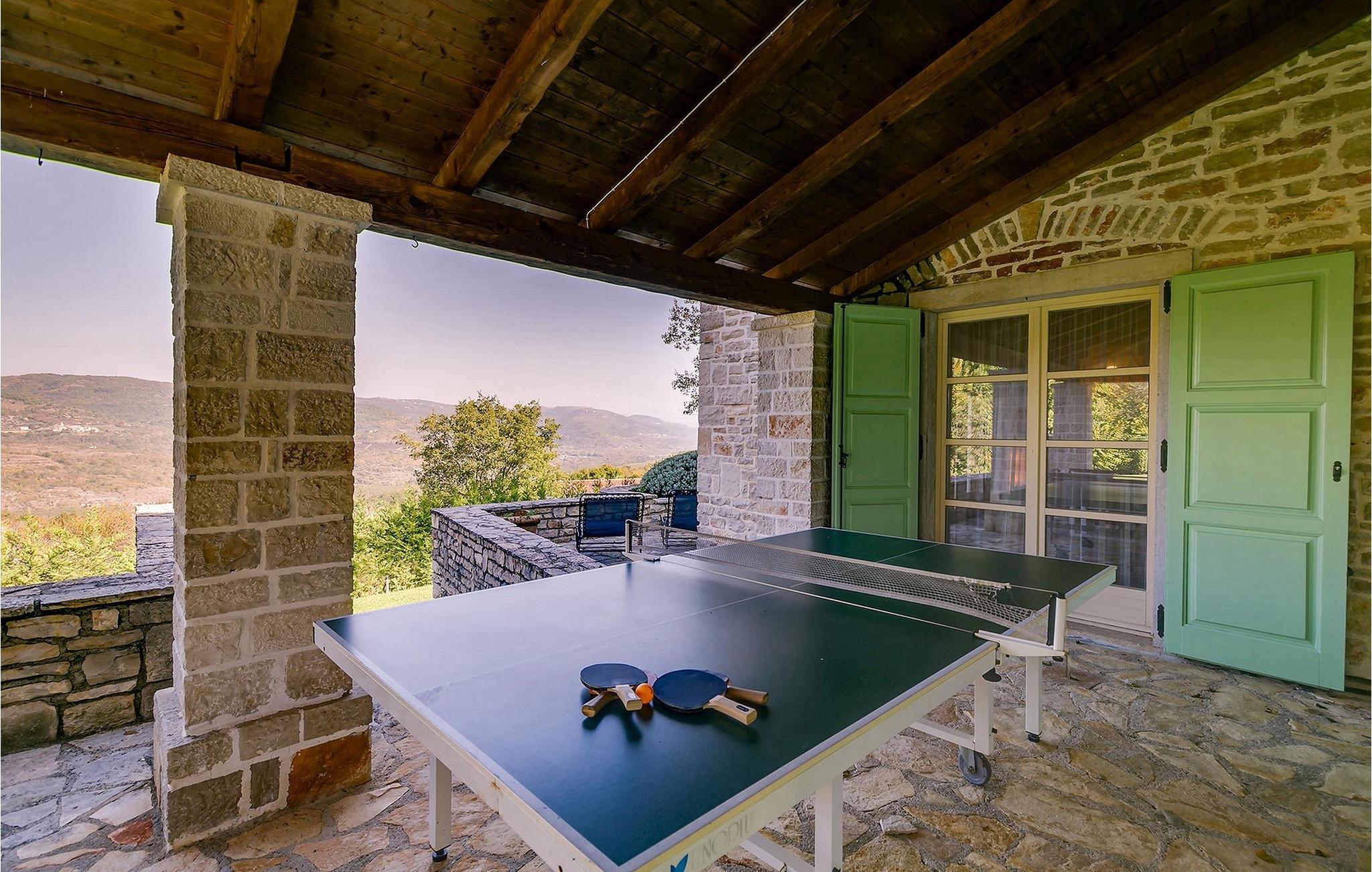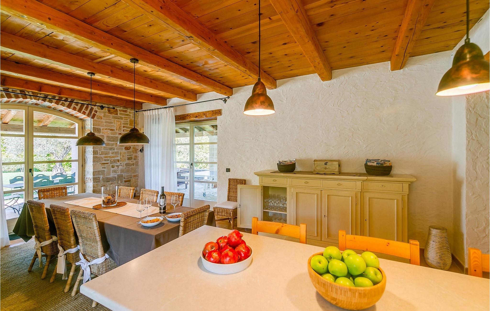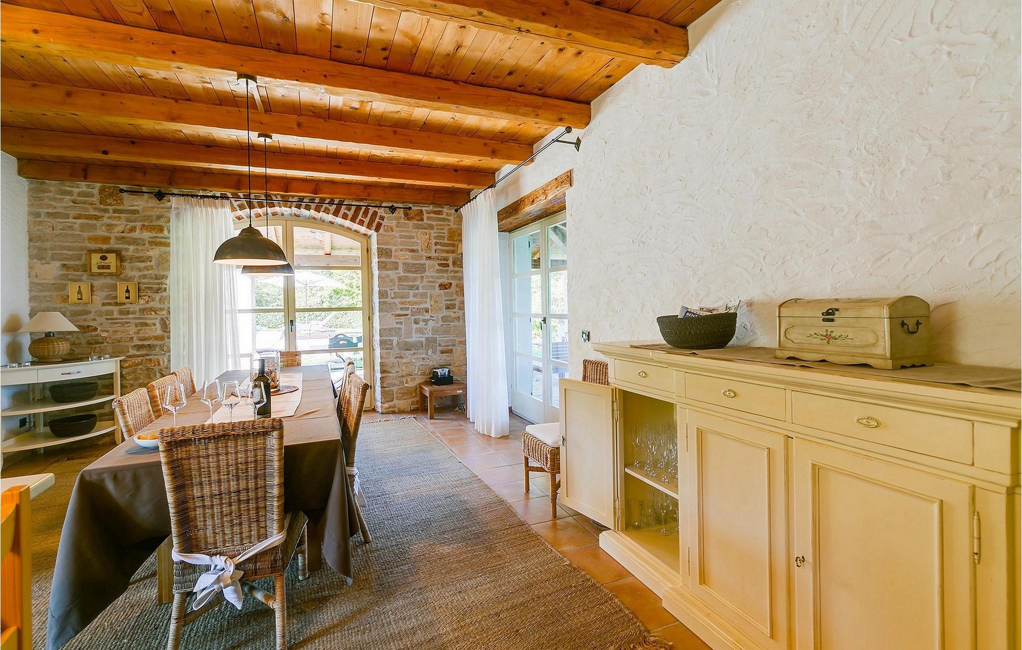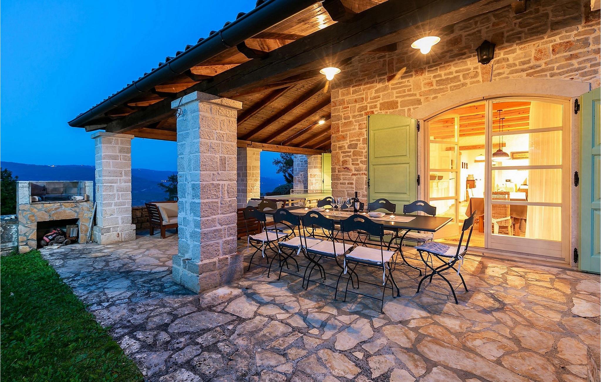 Den vakre steinvillaen Casa Bella ligger i en liten landsby i Istria, omgitt av uberørt natur i et fortryllende landskap. Foran villaen ligger et romslig basseng omgitt av en flott hage og en vakker, overbygd terrasse med spisebord og grill, der du kan tilbringe hyggelige stunder med familie og venner på varme sommerkvelder.