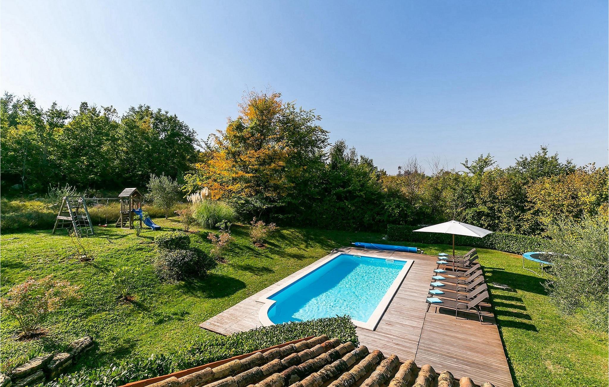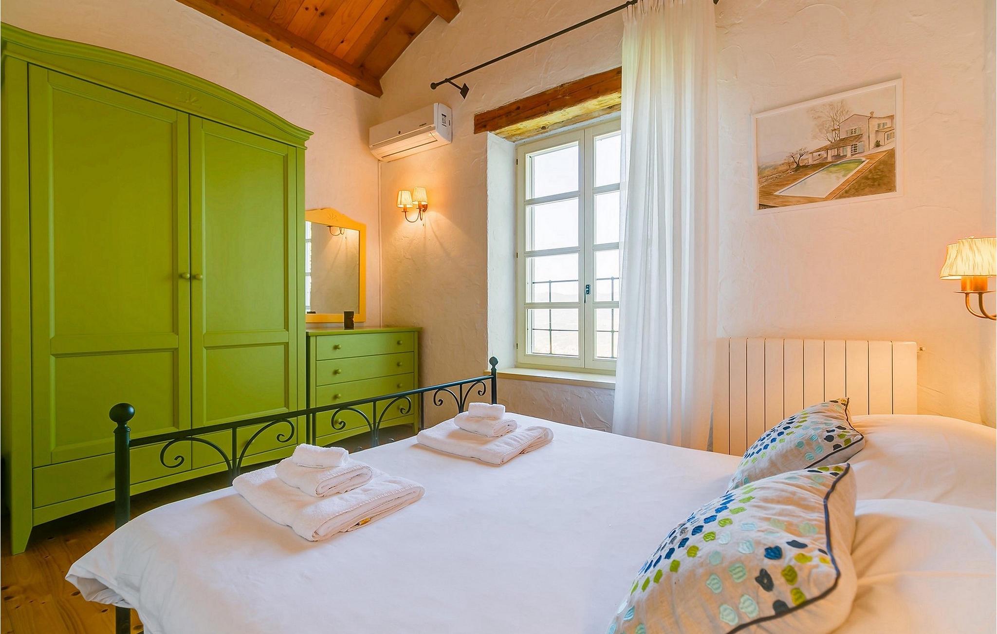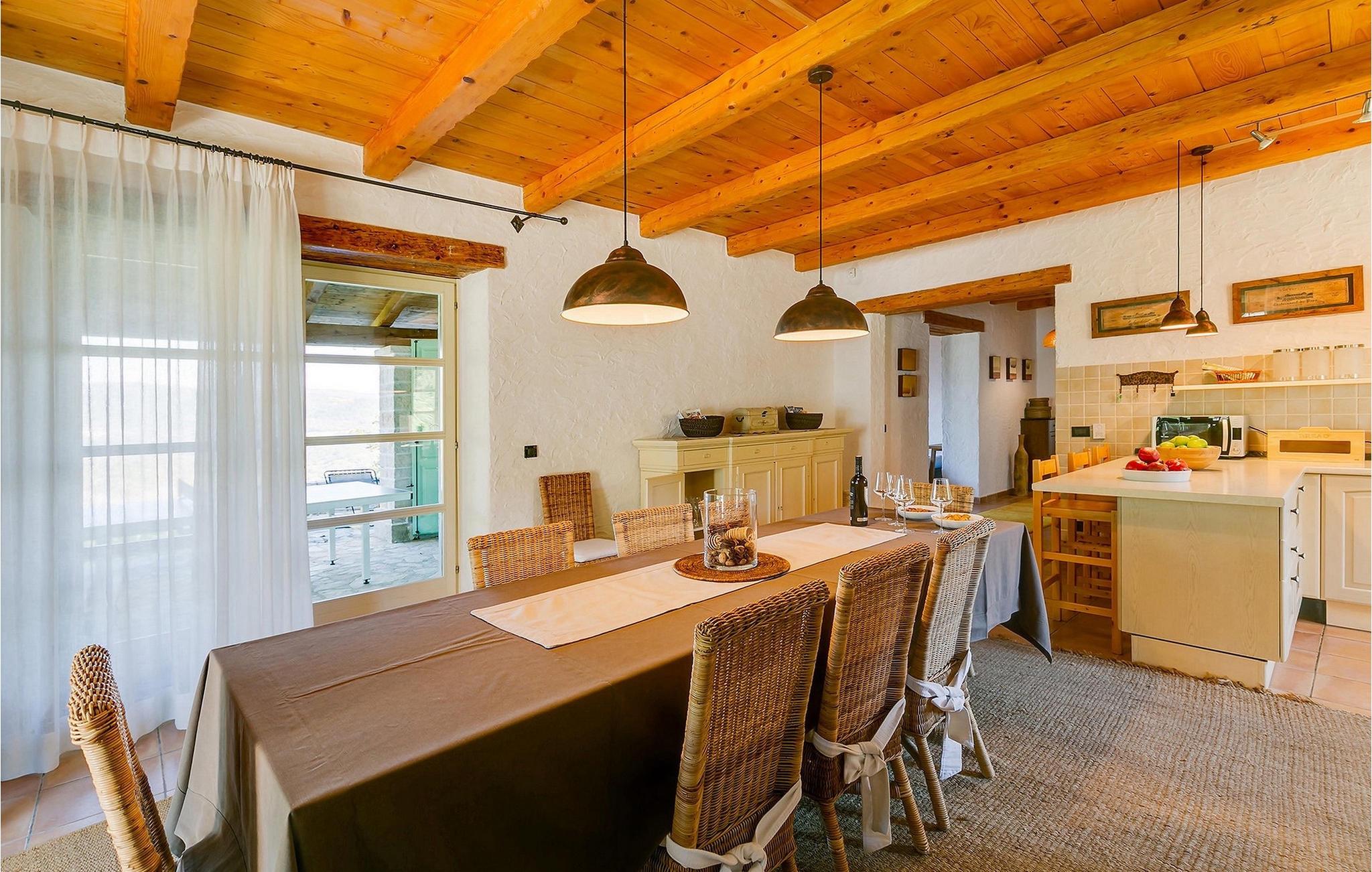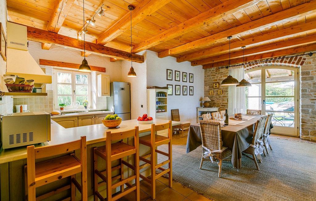 Den vakre steinvillaen Casa Bella ligger i en liten landsby i Istria, omgitt av uberørt natur i et fortryllende landskap. Foran villaen ligger et romslig basseng omgitt av en flott hage og en vakker, overbygd terrasse med spisebord og grill, der du kan tilbringe hyggelige stunder med familie og venner på varme sommerkvelder.