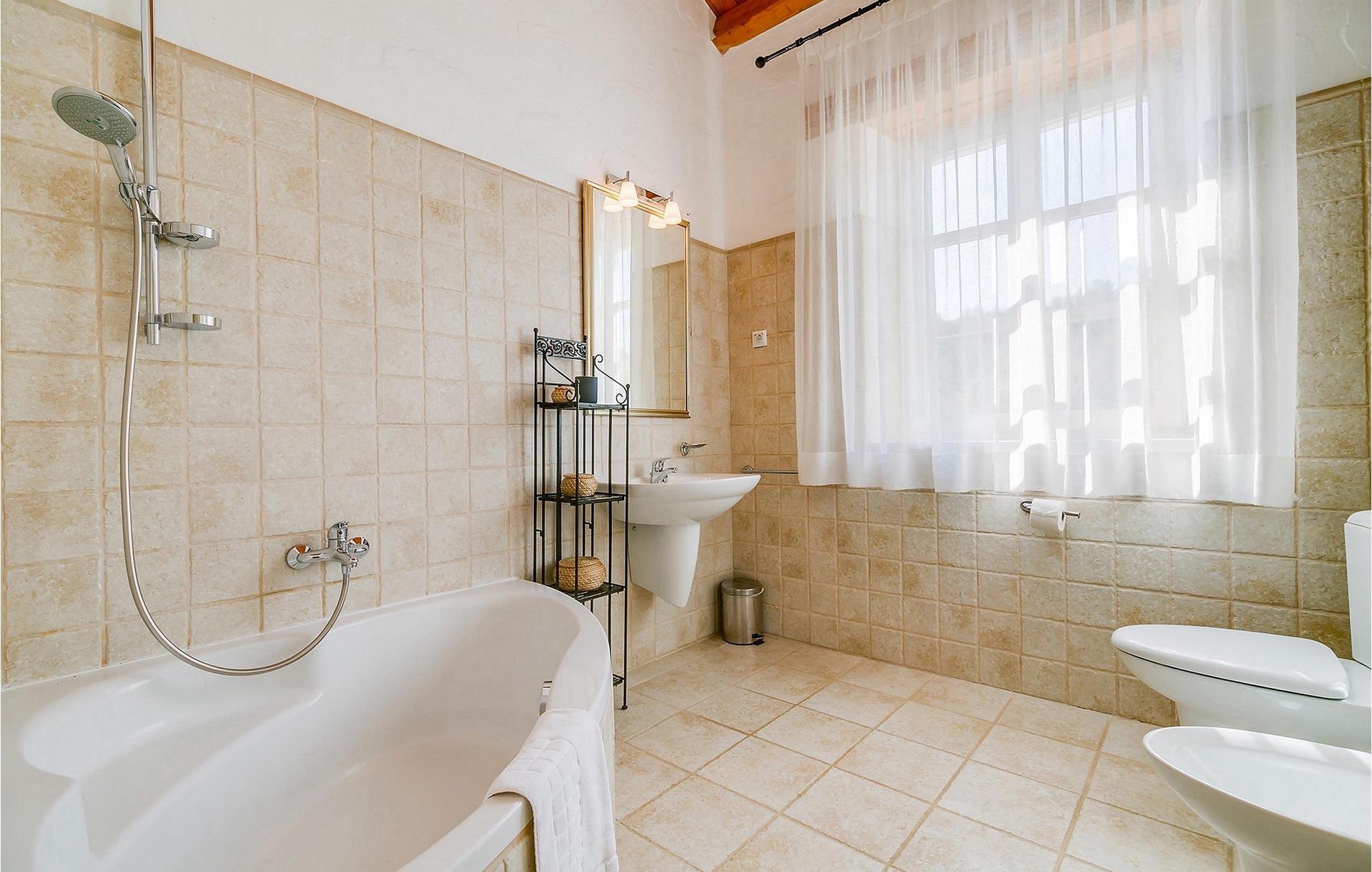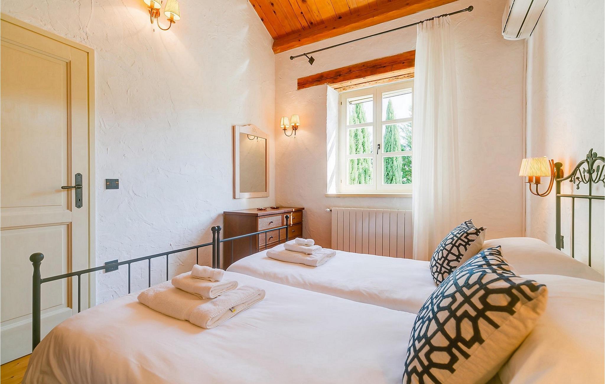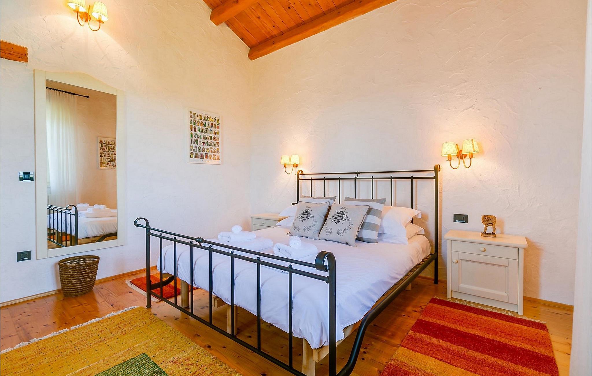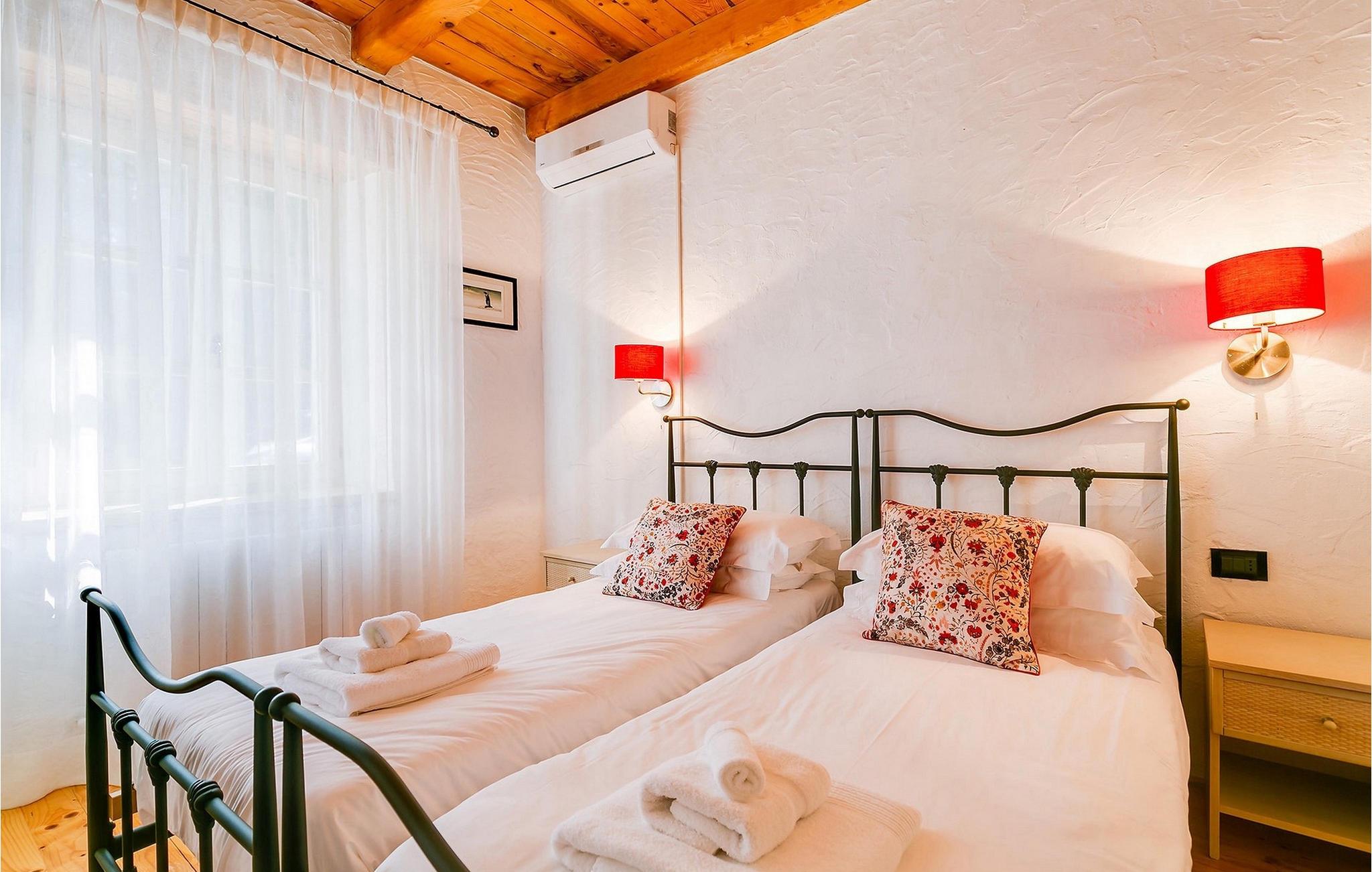 Interiøret i villaen utstråler en hyggelig atmosfære og istrisk sjarm. Villaen er fordelt på to etasjer. Første etasje har en stue med peis og et sjarmerende kjøkken med spiseplass. I samme etasje er det to vakkert innredede soverom, et bad og et separat toalett. Fra stuen og kjøkkenet har du utgang til en vakker terrasse hvor du kan nyte morgenkaffen med utsikt over de eventyrlige omgivelsene og den uberørte naturen. I øverste etasje er det ytterligere 2 soverom med bad og et soverom med eget bad. I samme etasje finner du en romslig terrasse med fantastisk utsikt over omgivelsene. For familiens yngste er det lekeplass og bordtennisbord.