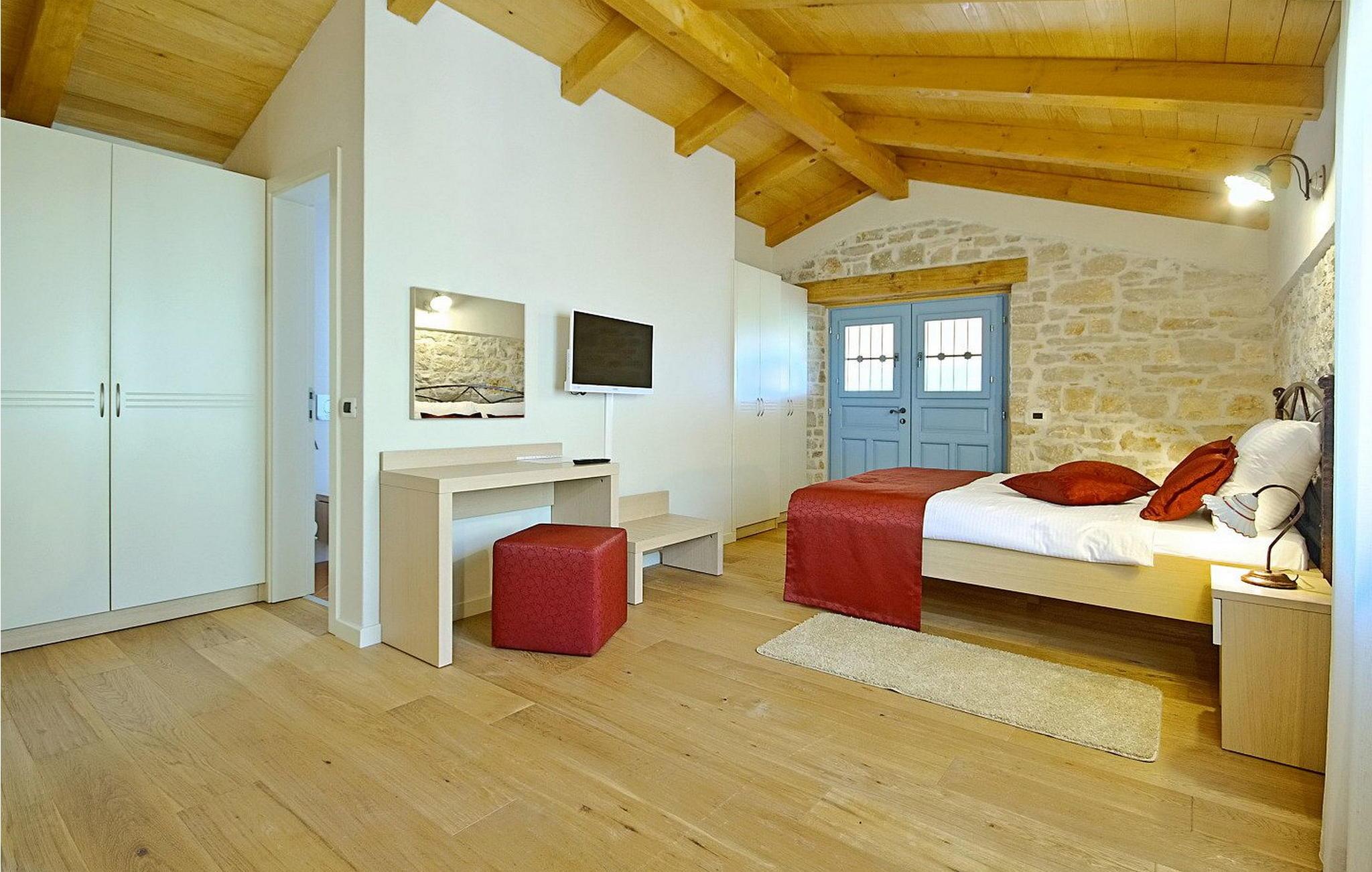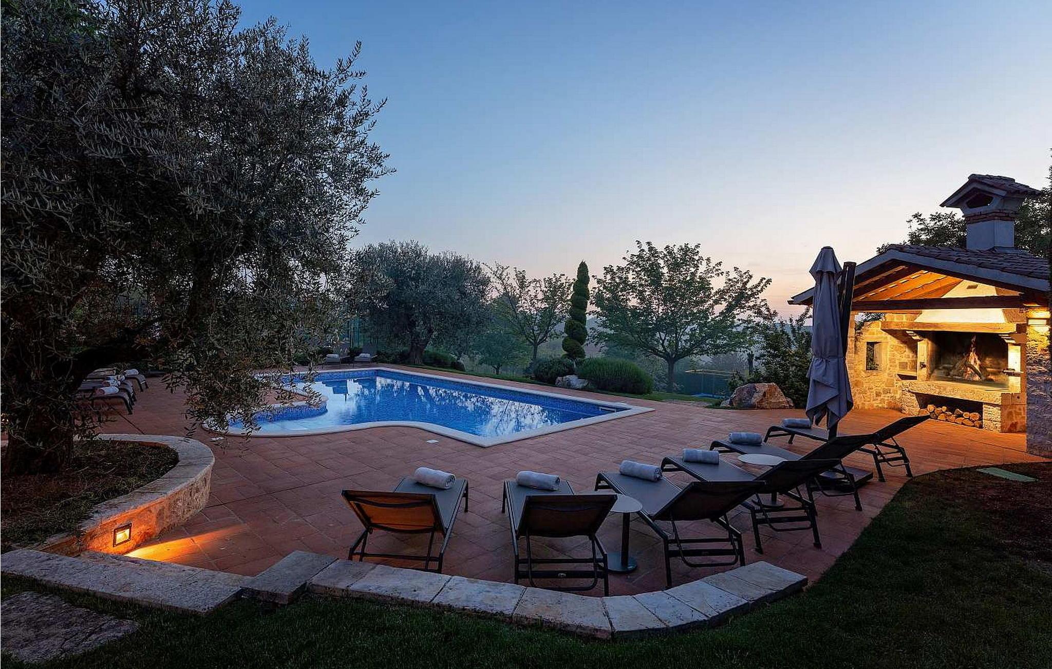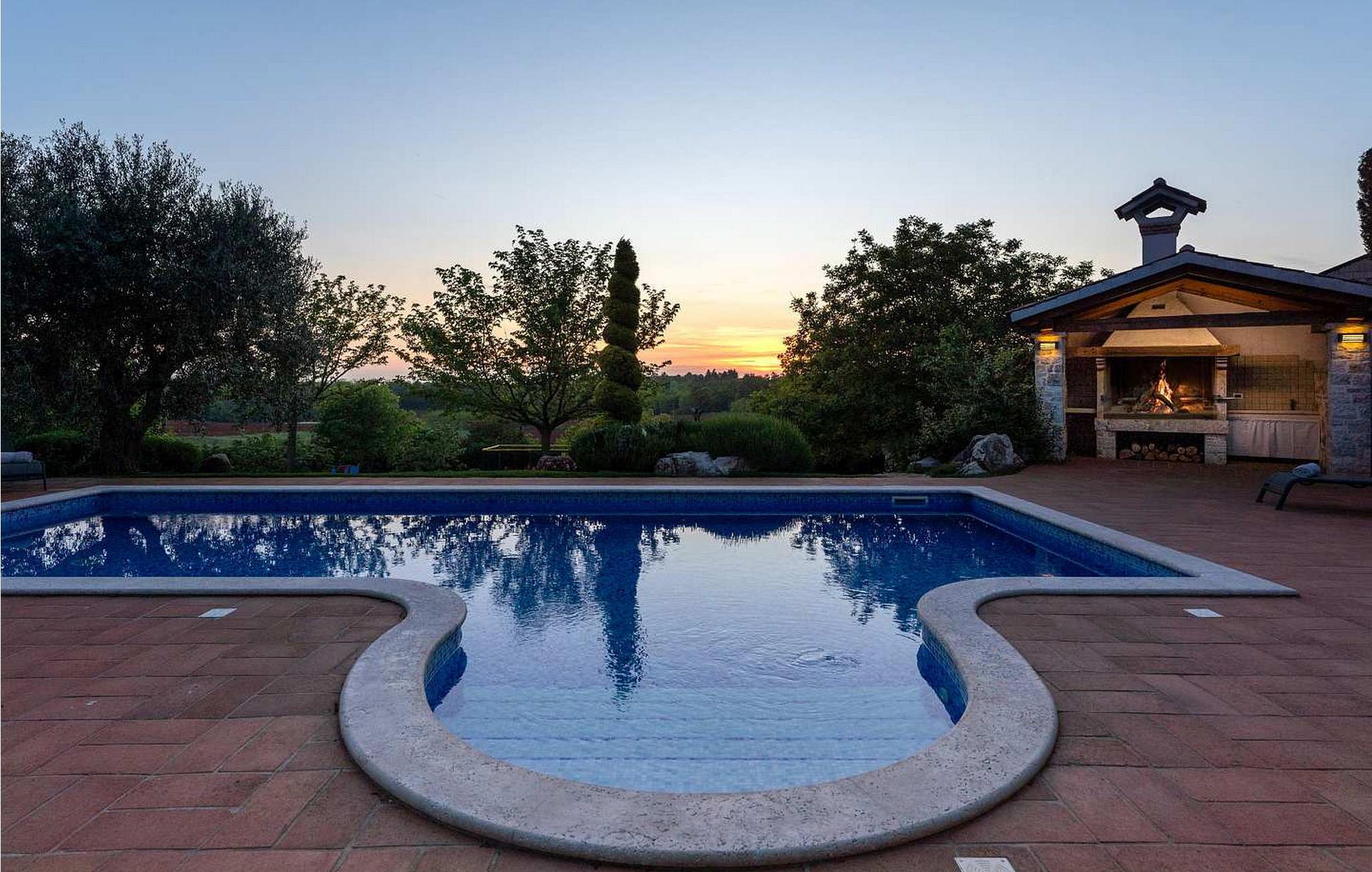 Denne elegante og komfortable eiendommen i Vizinada-området tilbyr et luksuriøst tilfluktssted. Eiendommen ligger på en inngjerdet tomt og eies av en kjent vinprodusentfamilie som er kjent for å produsere noen av de beste vinene i Kroatia. Eiendommen består av to vakkert renoverte steinhus, et svømmebasseng med boblebad, en multifunksjonell idrettsplass og rikelig med parkeringsplasser.