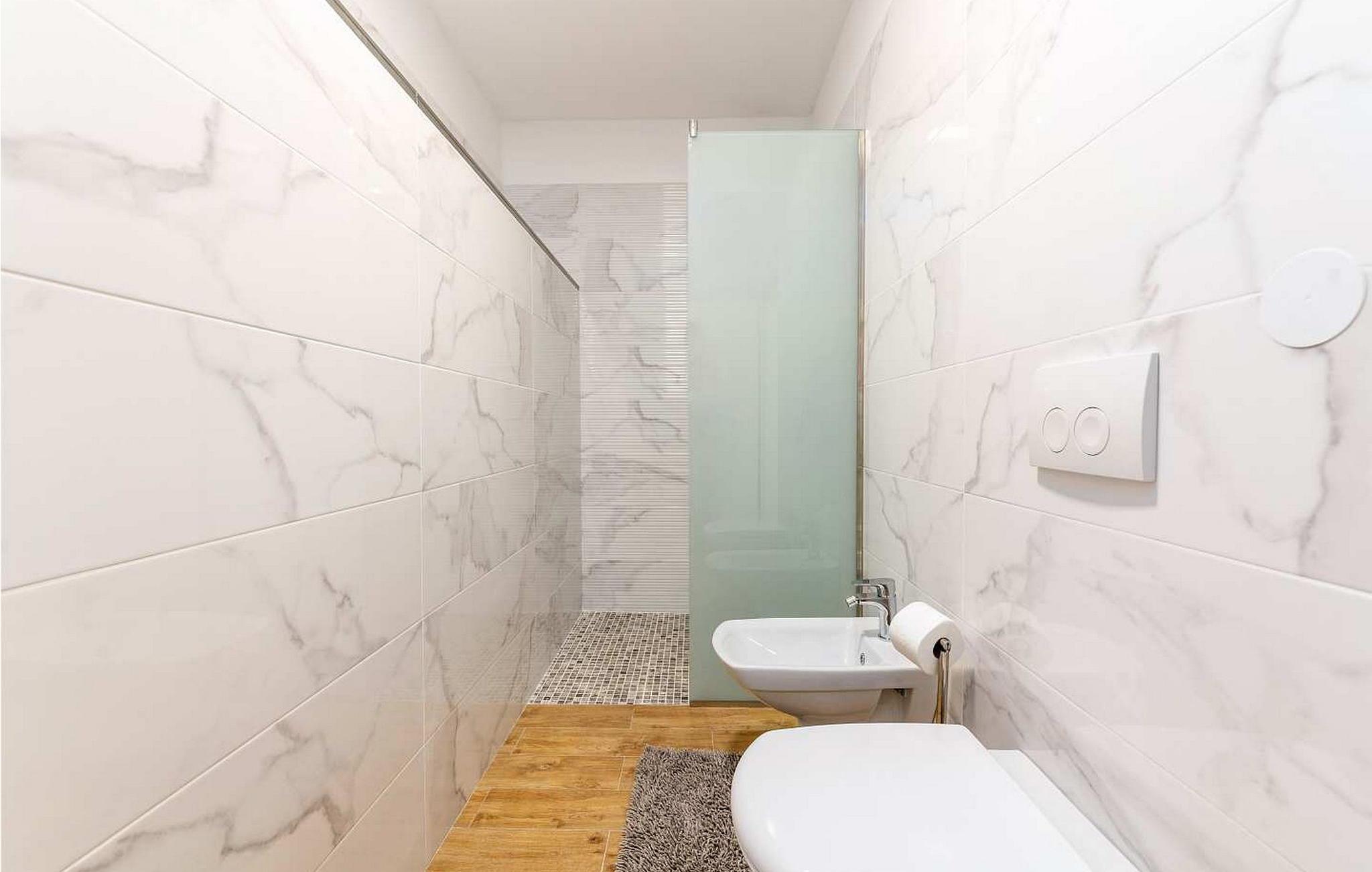 Baderom (nr. 1) - WC: Varmt og kaldt vann. Dusj