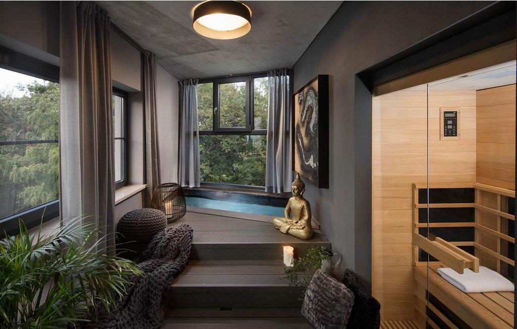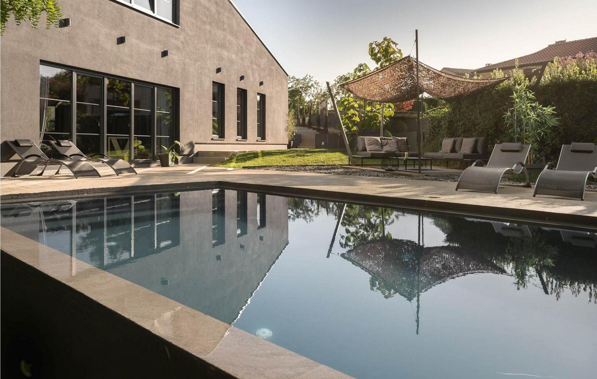 Med sin spesielle design, det mørkegrønne evighetsbassenget, den rolige beliggenheten i utkanten av landsbyen og badstuen og boblebadet med utsikt over bassenget, skiller den seg ut blant de andre feriehusene i området.